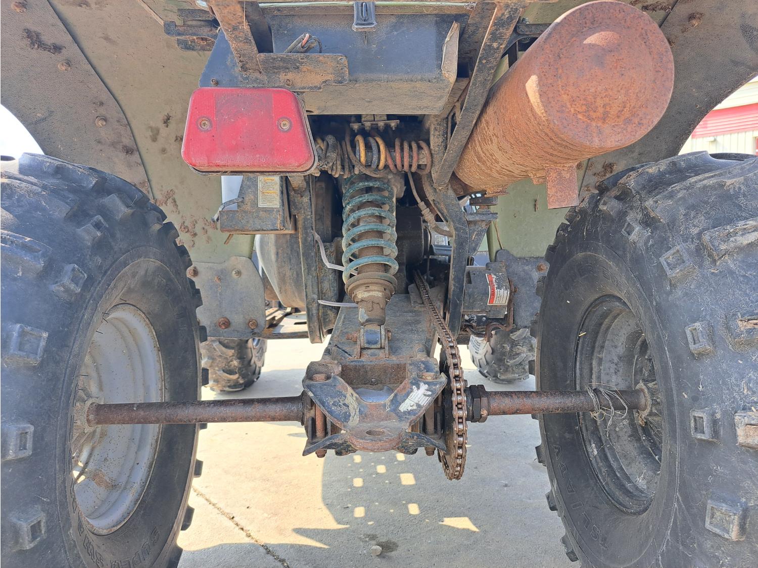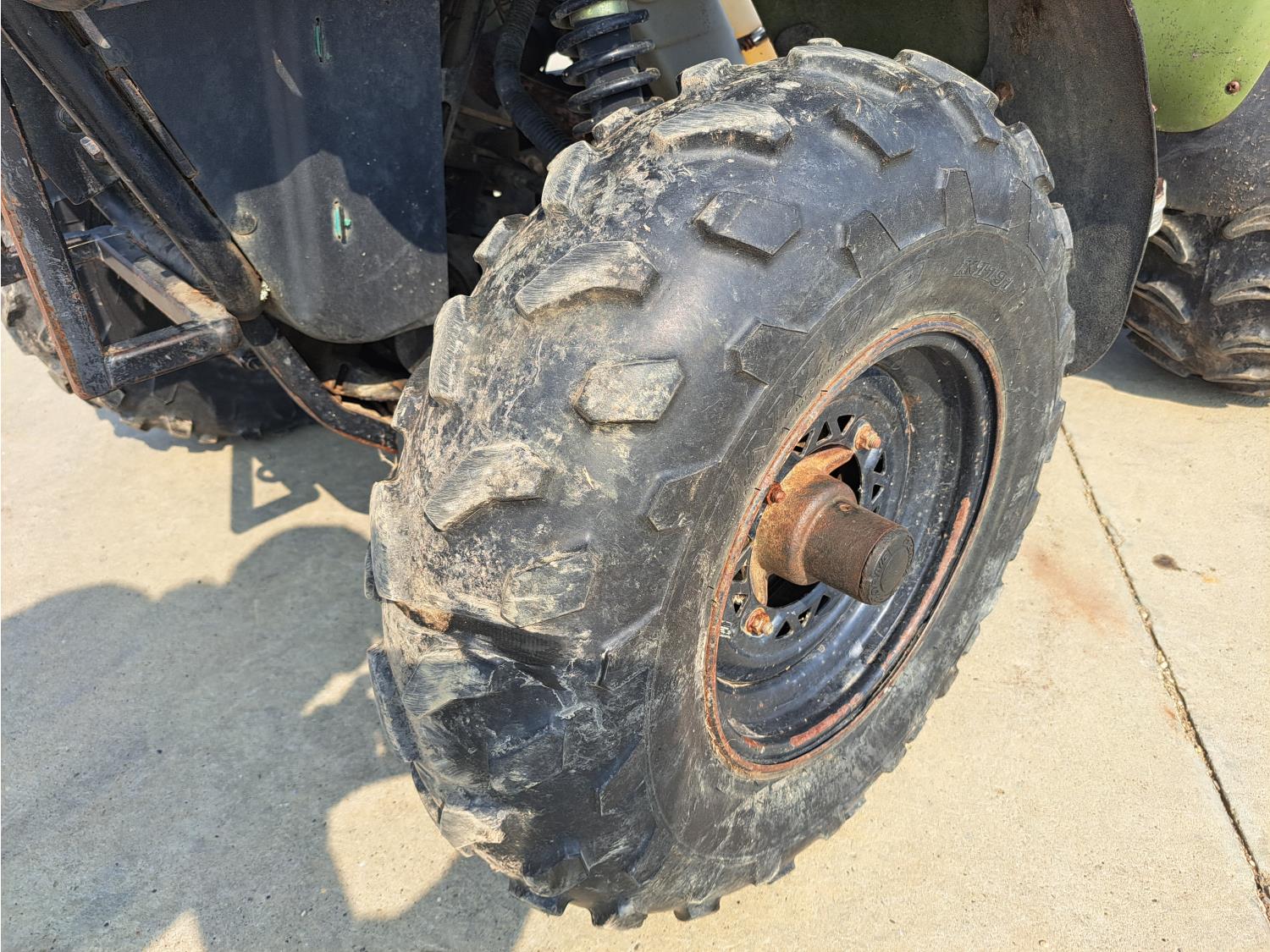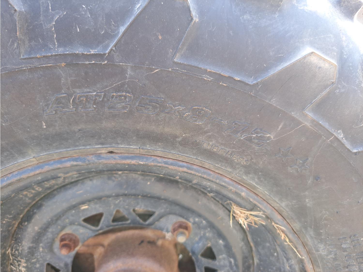 378 cc engine, automatic transmission, Hi/Lo range, reverse, hitch, front and rear racks, front winch, 25X8-12 front tires, 25X13.50-10 rear tires
