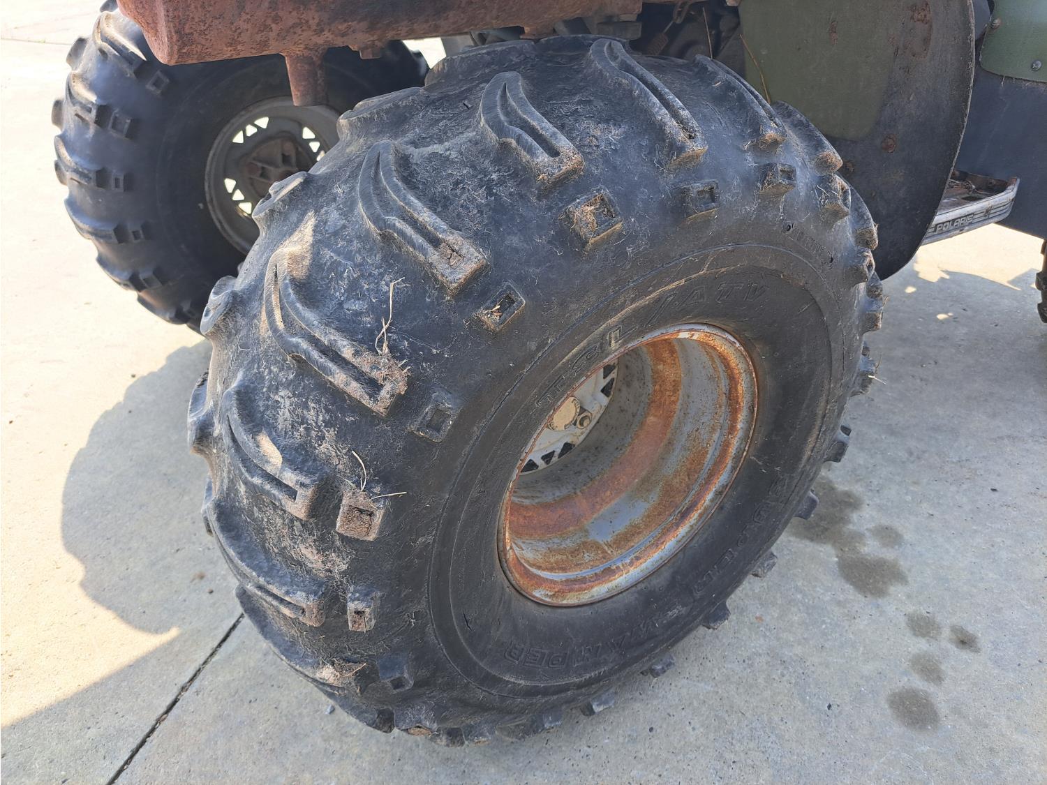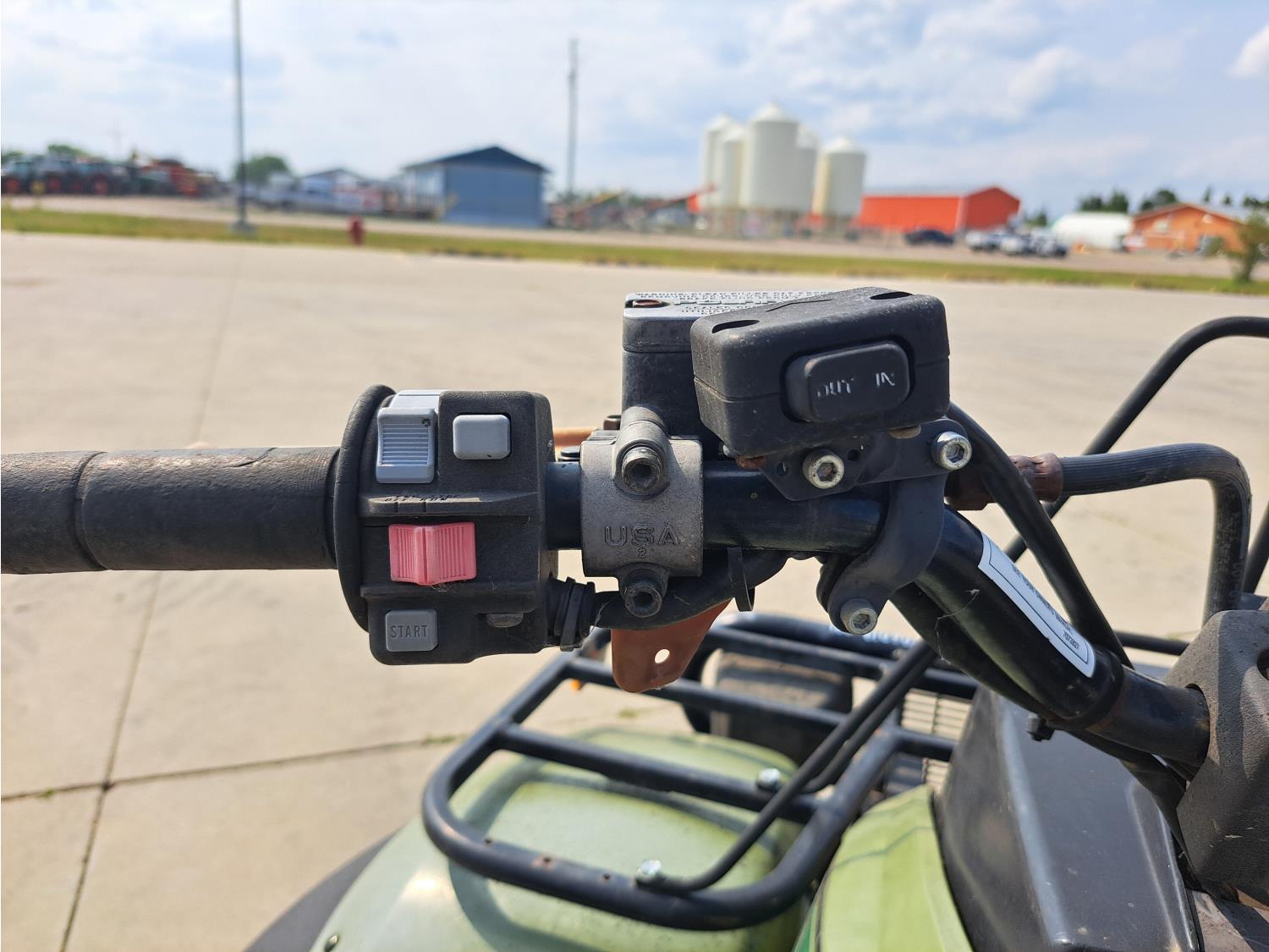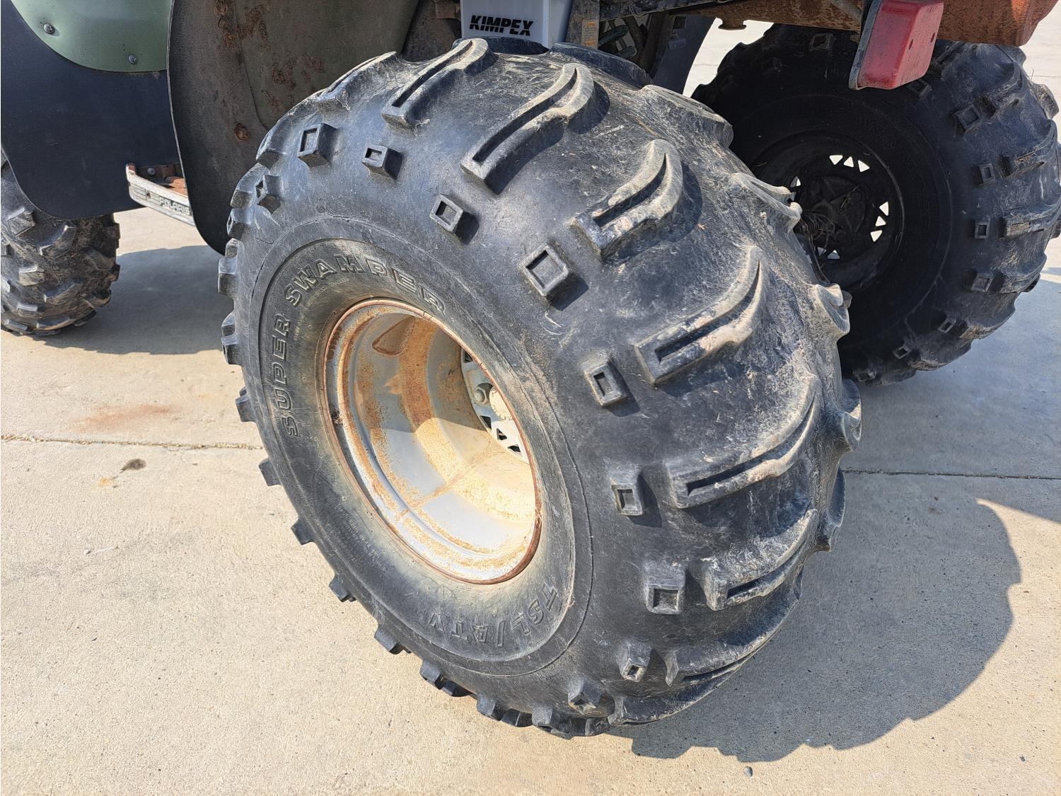 378 cc engine, automatic transmission, Hi/Lo range, reverse, hitch, front and rear racks, front winch, 25X8-12 front tires, 25X13.50-10 rear tires