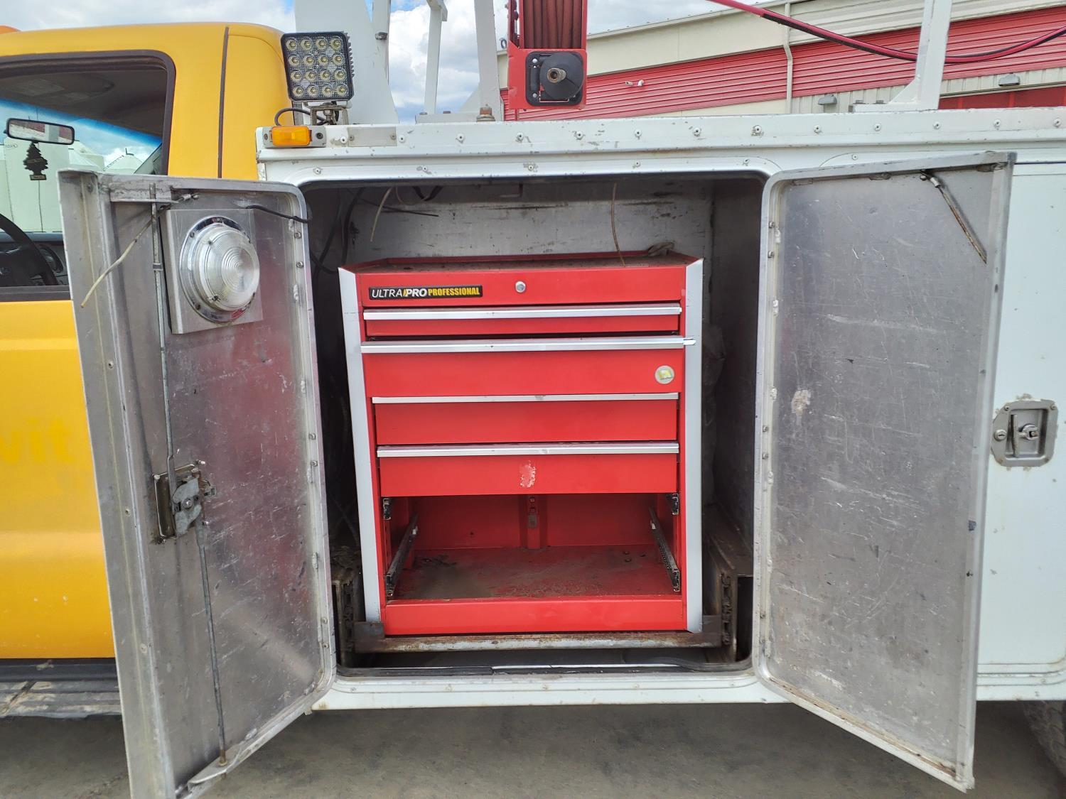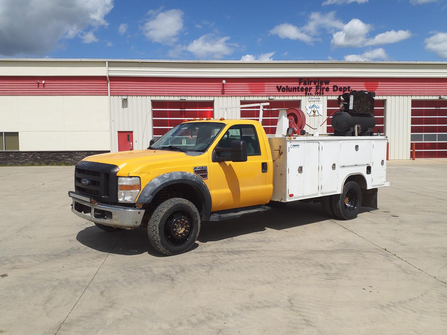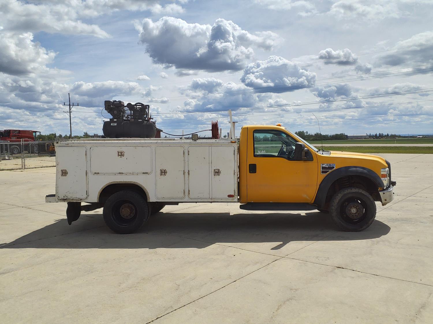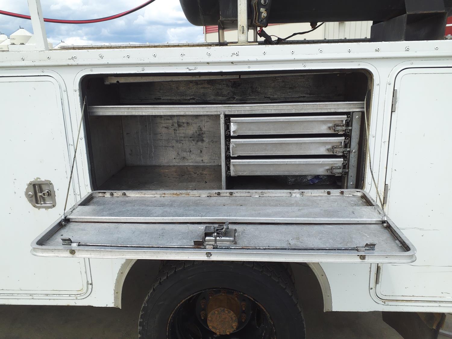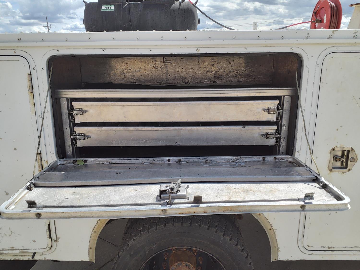 6.4 L, V8, diesel, automatic transmission, A/C, 11 ft service body, gas air compressor, 225/70R19.5 tires