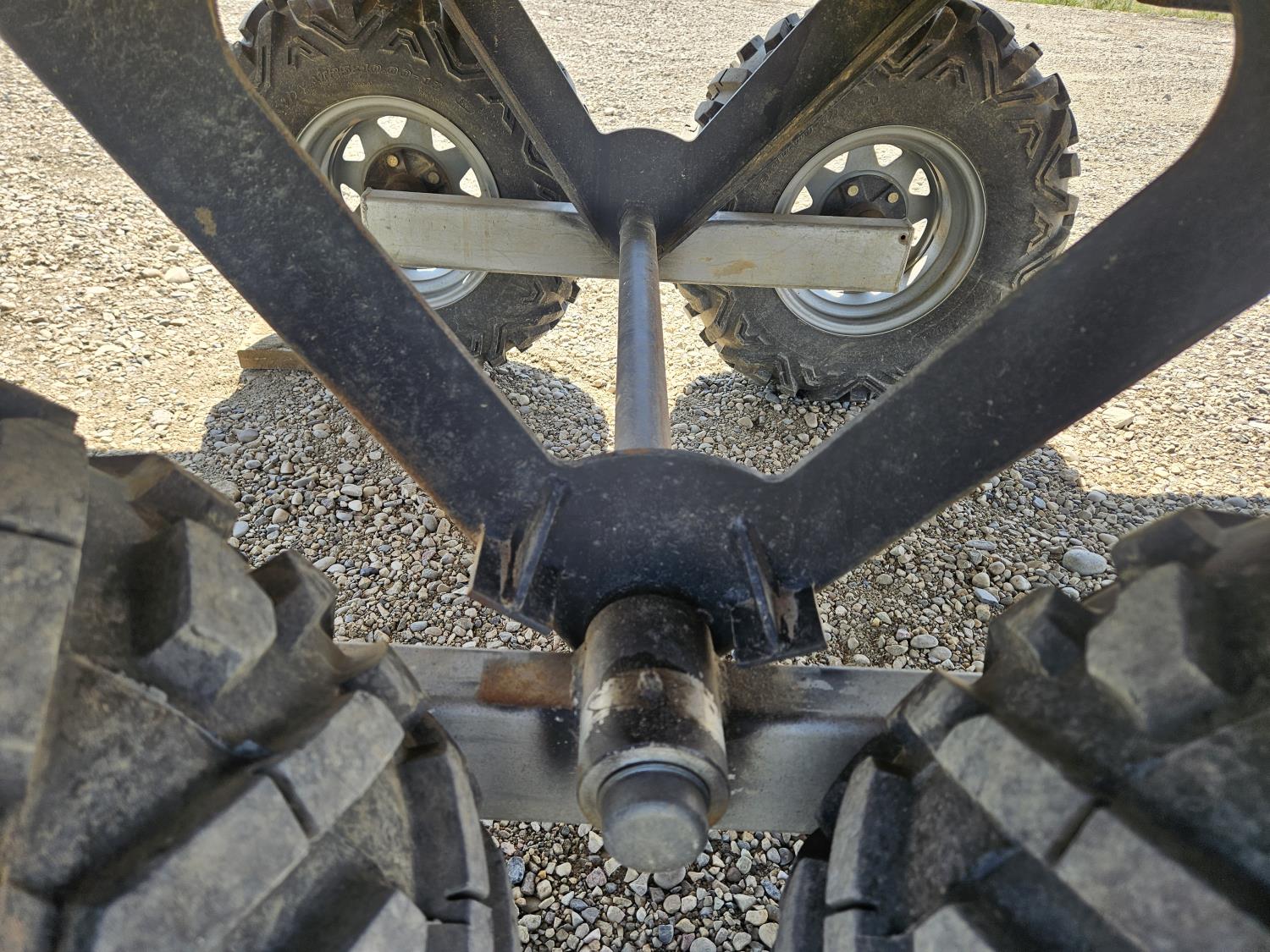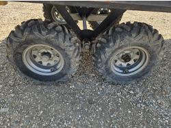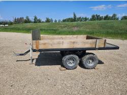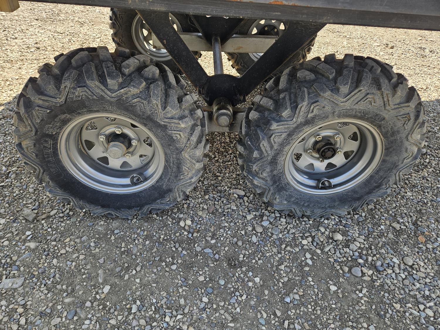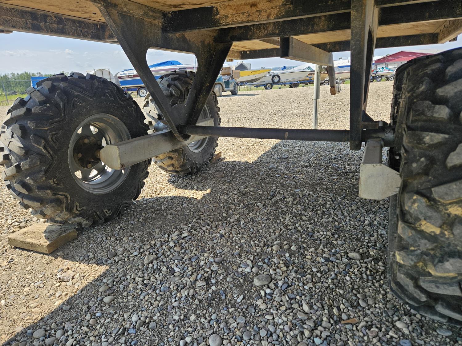 70 inch wide deck, wood deck, walking axles suspension, ball hitch, rub rails, stake pockets, 25X10.00-12 tires