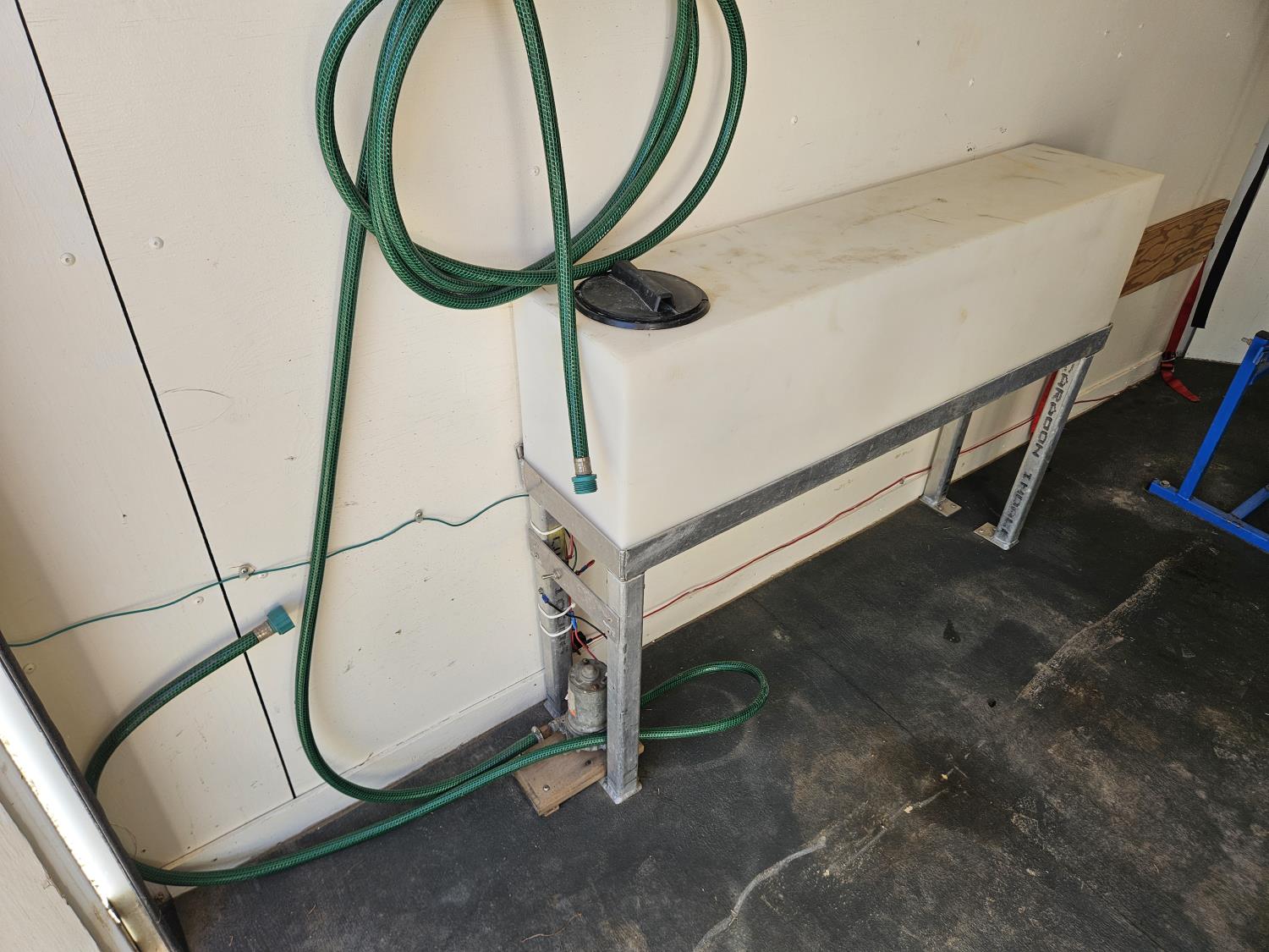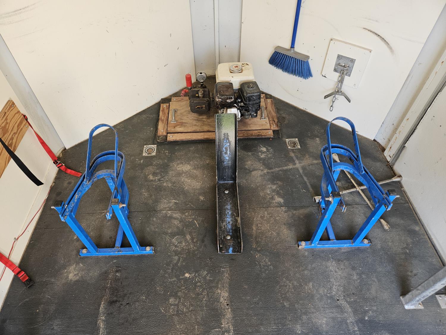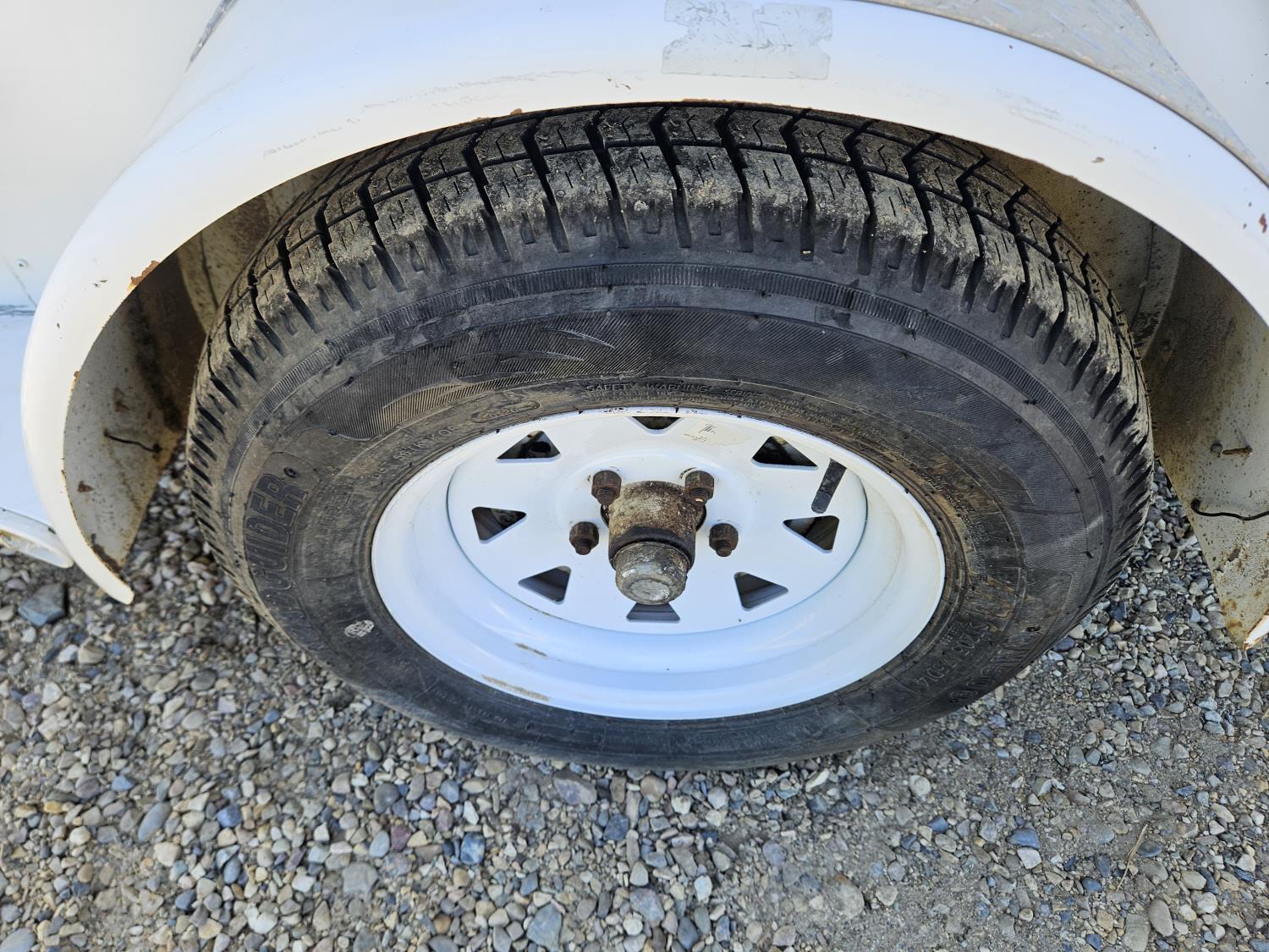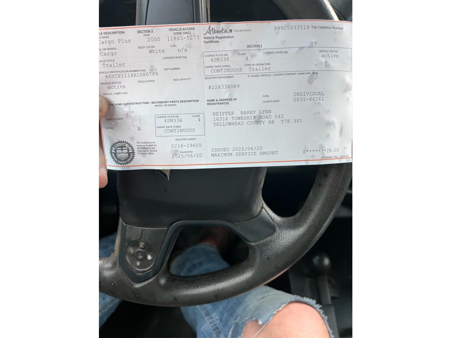 74 inch interior width, 75 inch interior height, ball hitch, side door, barn doors, spring suspension, set up for hauling motorbikes, shelving, pressure washer, tanks, wheel chocks, new tires and rims, 205/75R14 tires