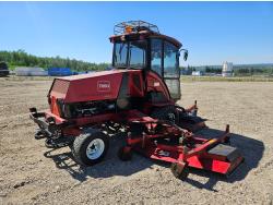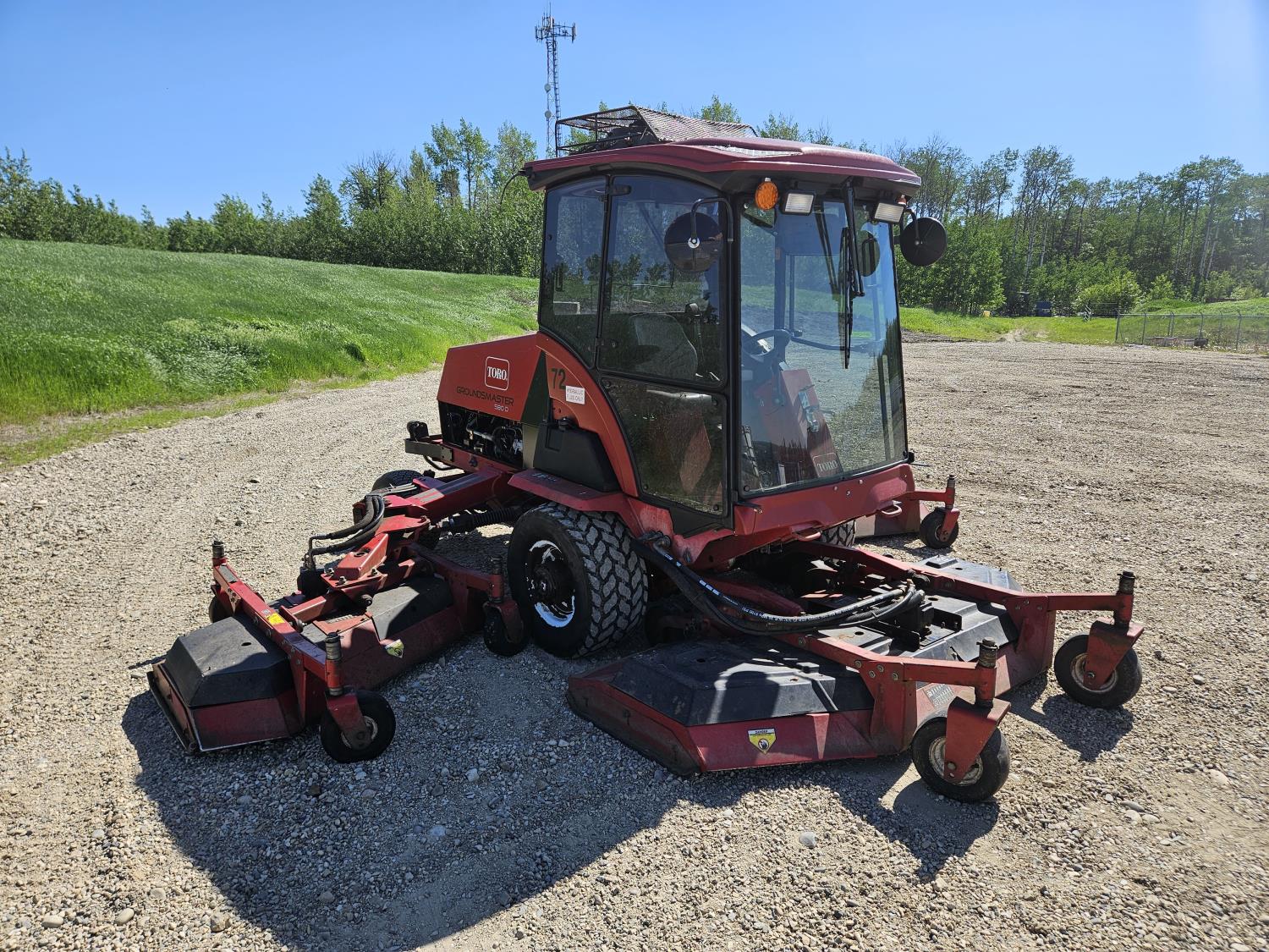 Mitsubishi 4 cylinder diesel engine, hydrostatic transmission, enclosed cab, heat, A/C, radio, double wing, lights, 4WD, 23x10.5-12 rear tires, 31x13.5-15 front tires