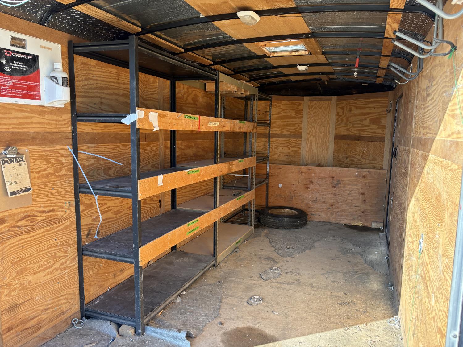 80 inch interior width, 72 inch interior height, ball hitch, side door, fold down door, electric brakes, spring suspension, 3500 lb axles, 205/75R15 tires