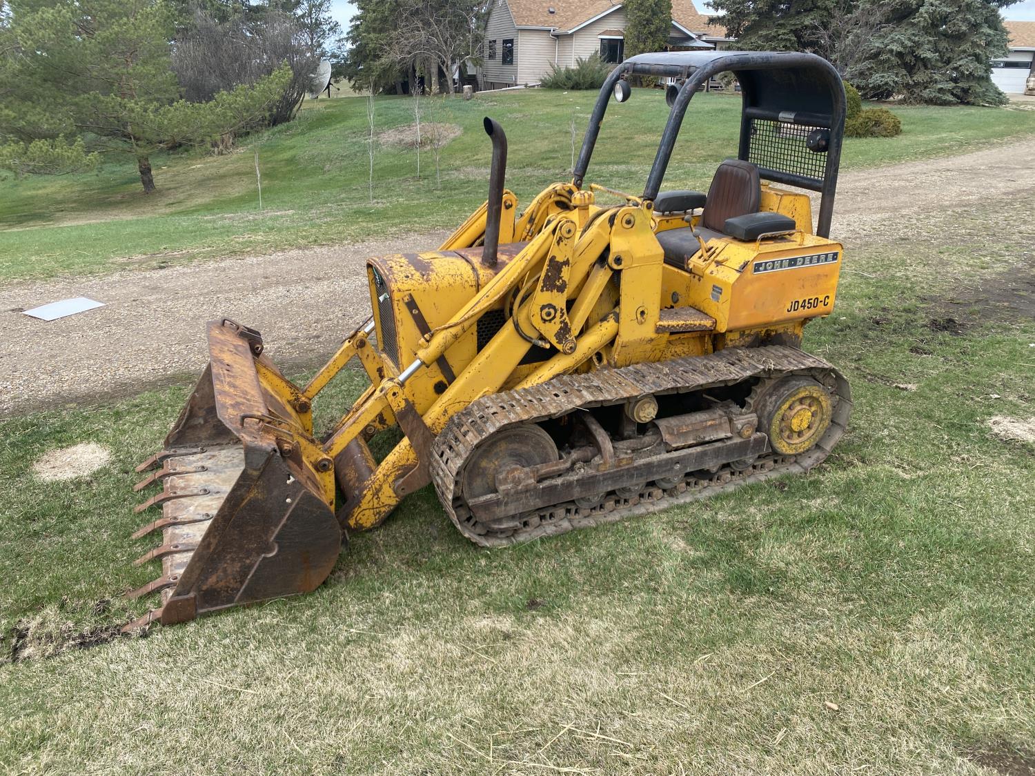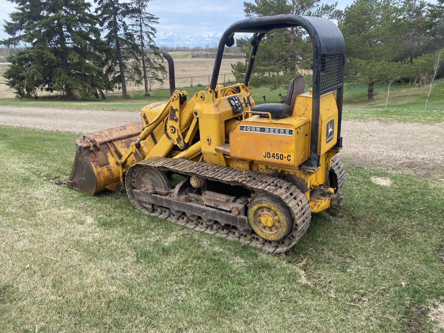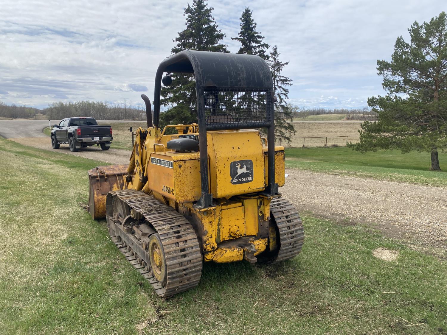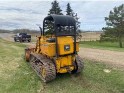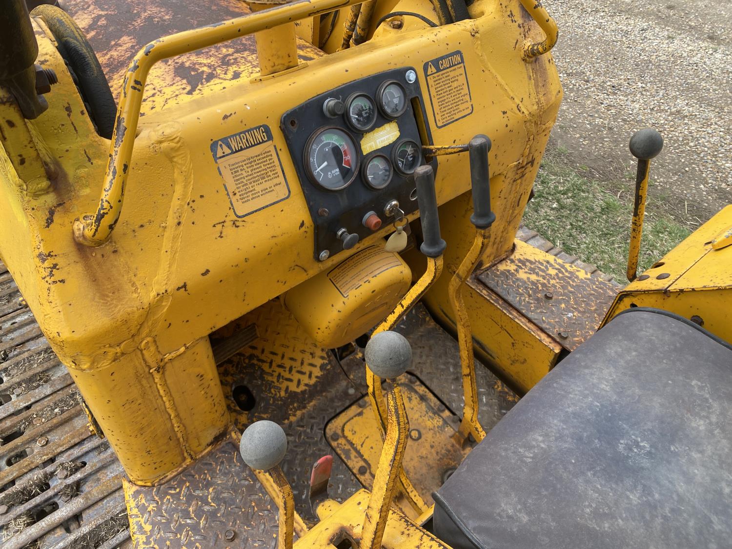 Open station with canopy, diesel engine, electric circulating block heater, 72" bucket, drawbar, 14 inch track pads
