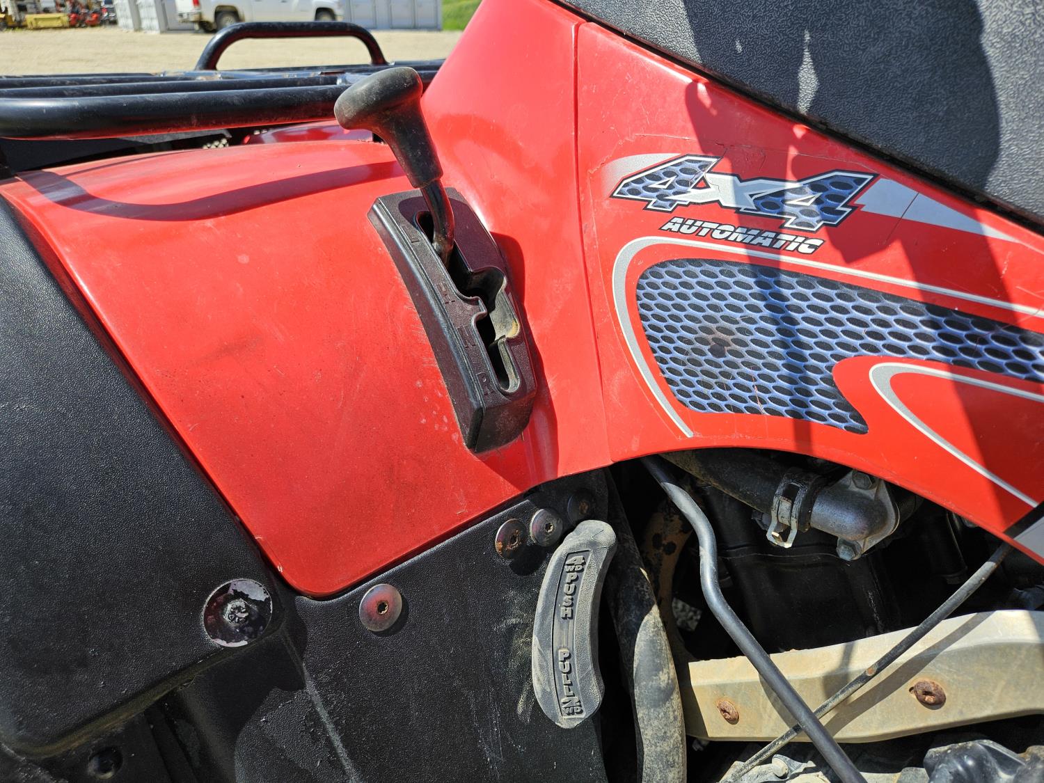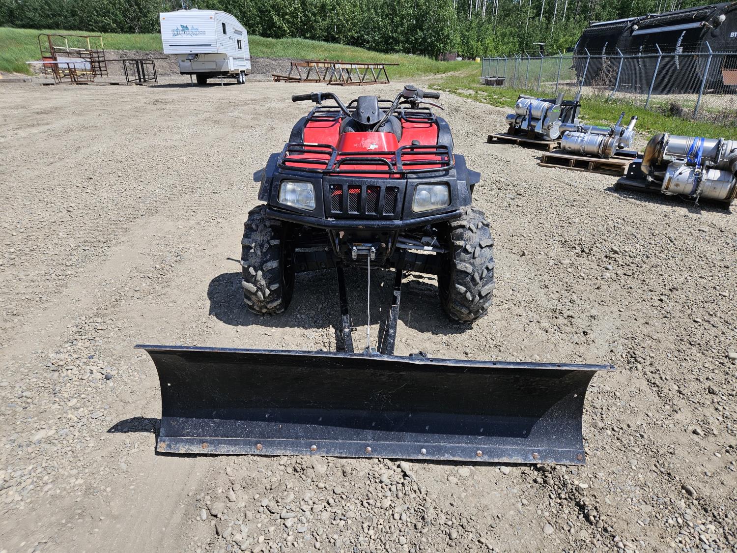 499 cc engine, automatic transmission, Hi/Lo range, reverse, 48 inch front blade, front and rear racks, front winch