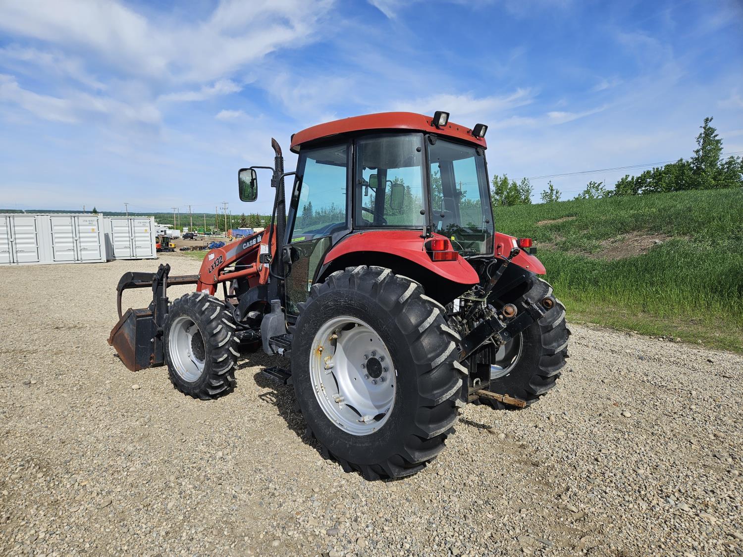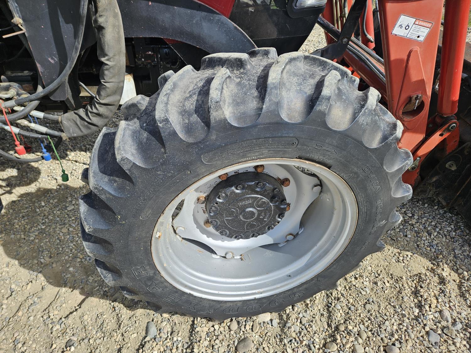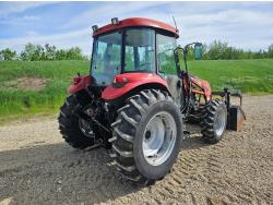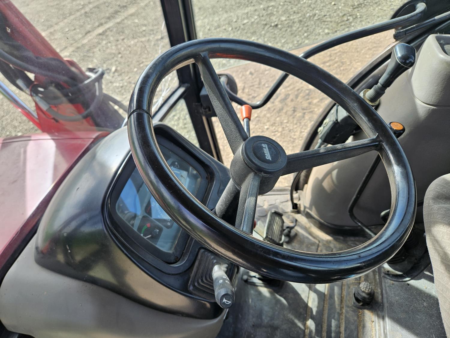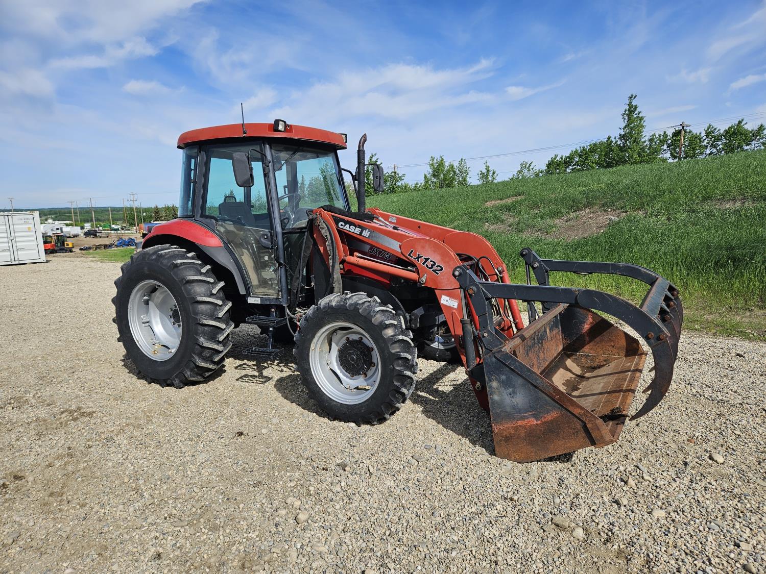 Case LX132 loader, 84 inch bucket, grapple, Iveco 3.3 L 4 cylinder 75 HP, diesel engine, 12 speed manual transmission, cab, shuttle shift, joystick, A/C, radio, 540 PTO, 3 point hitch, 3 rear hydraulic outlets, 11.8-24 front tires, 16.9-30 rear tires