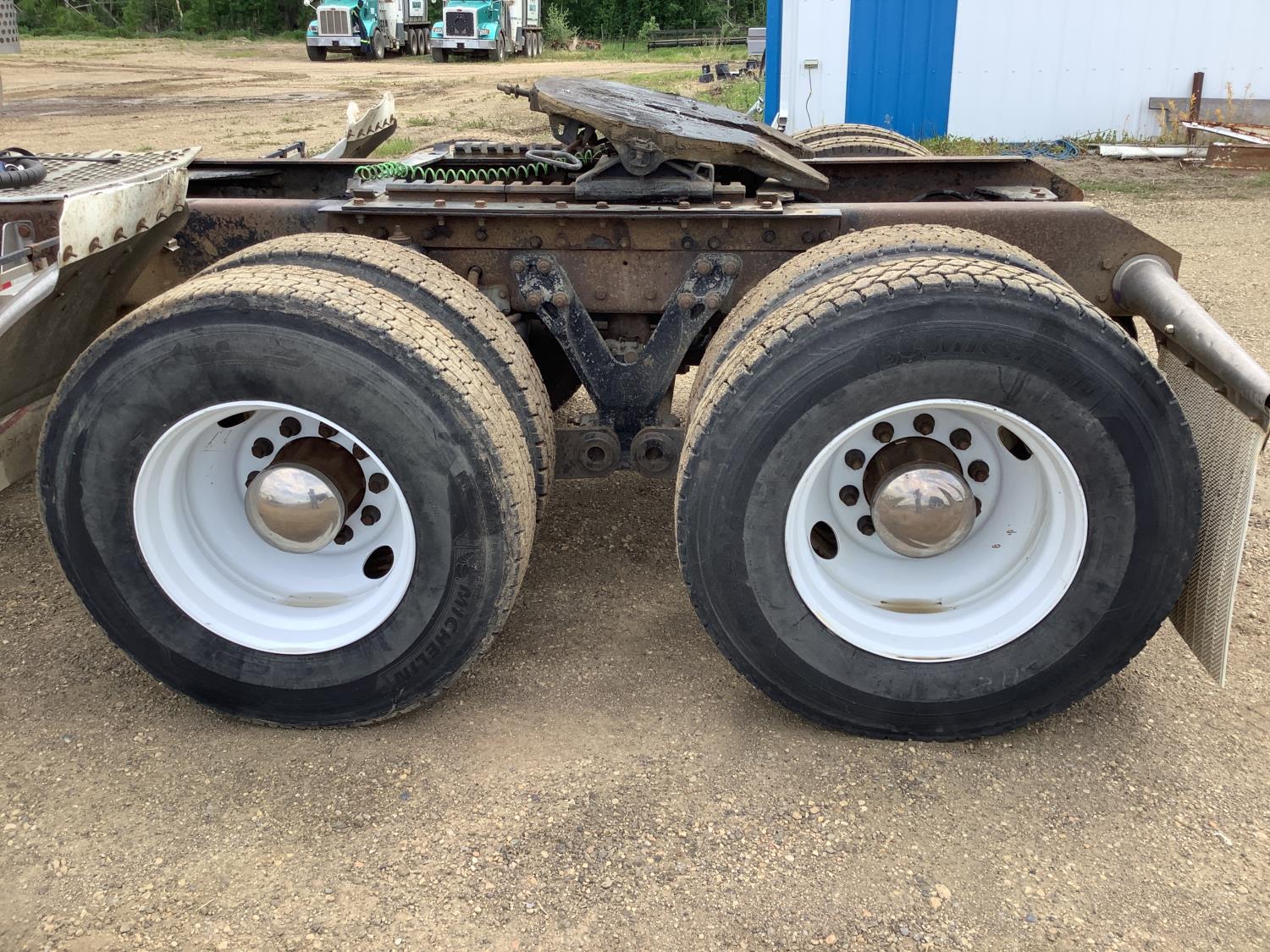 Cummins ISX500 engine, engine brake, 13 speed manual transmission, air ride suspension, 12,000 lb front axle, 40,000 lb rear axles, 3 way diff locks, aluminum front wheels, 11R22.5 tires