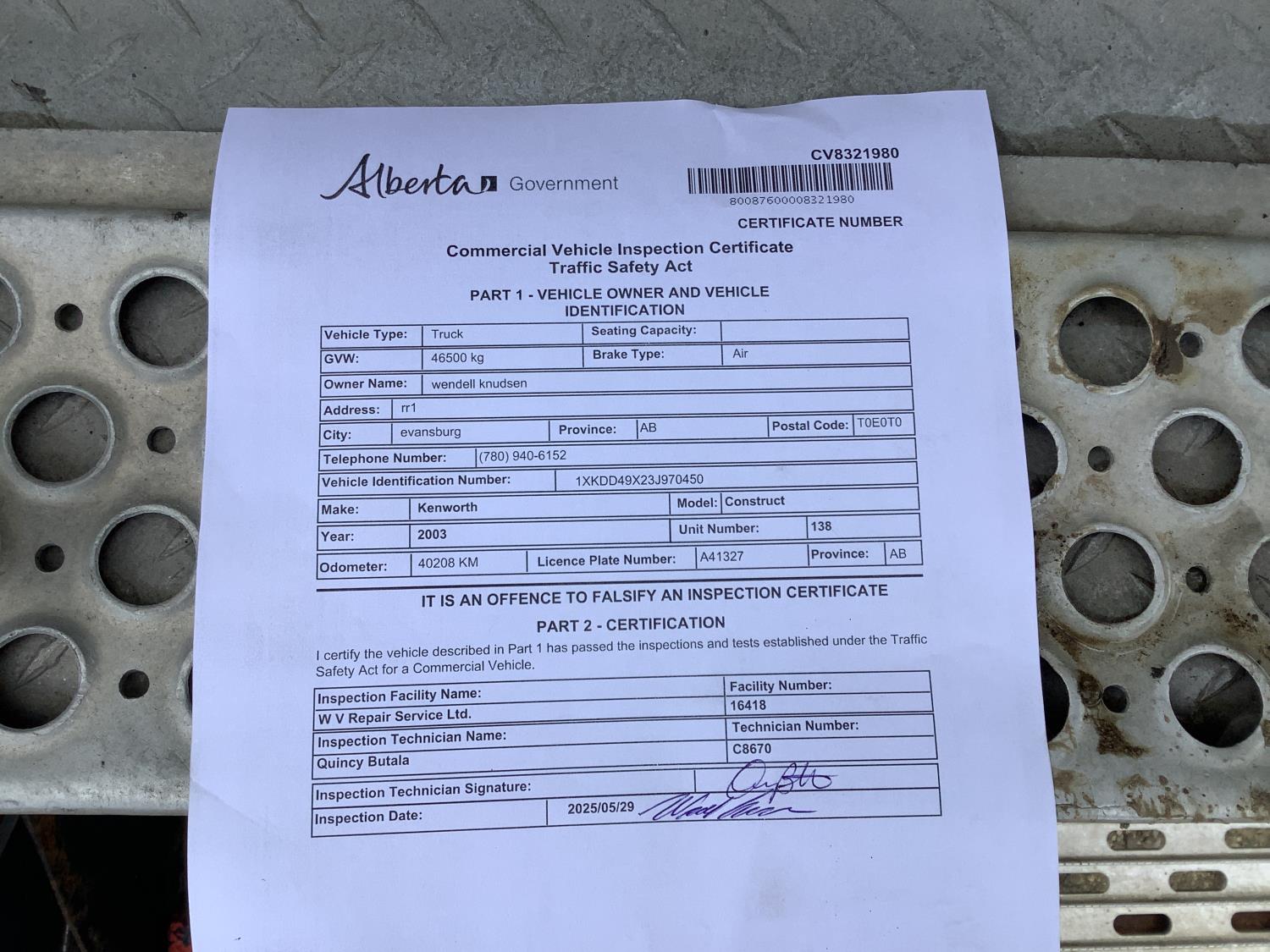 This Truck as seen on the engine sr# tag had a Cummins Recon engine installed in 2007. In 2023 had a new fan clutch, AC rebuilt, air compressor, hood rebuilt, new radiator, air to air, front engine gear housing, plus more total bill was $44,330.00. We have copy on hand at office.
