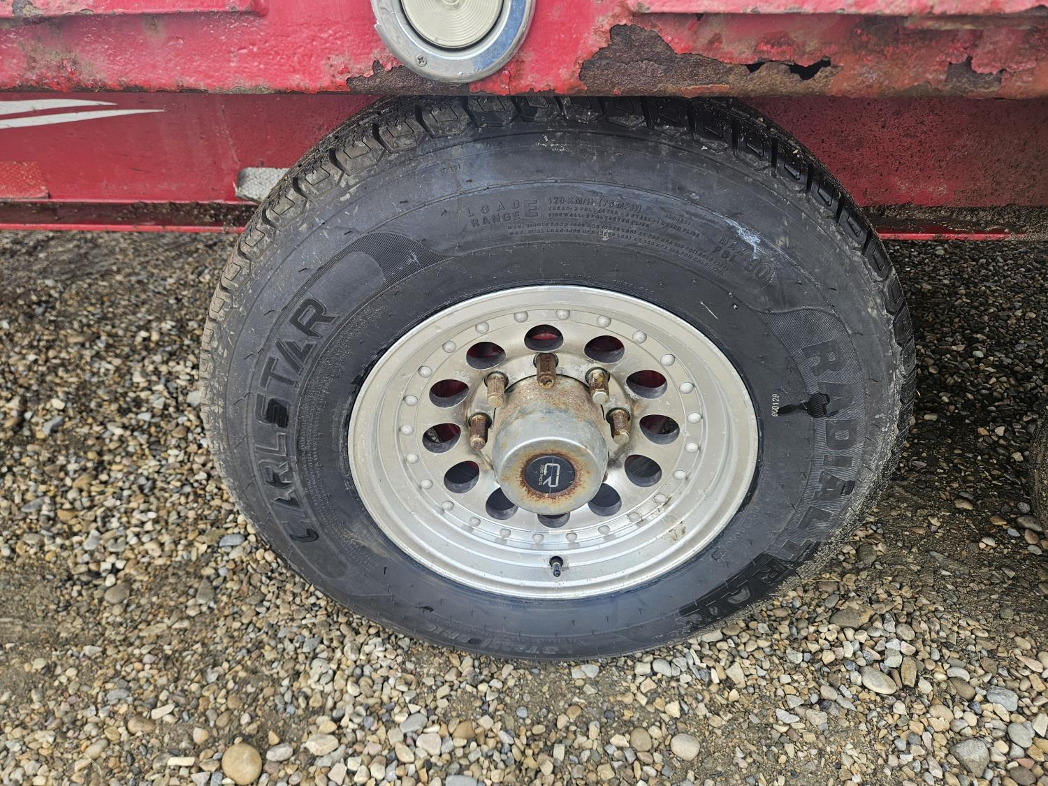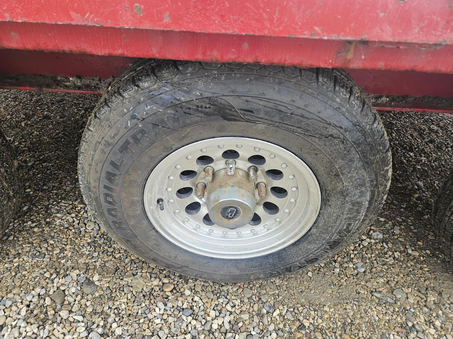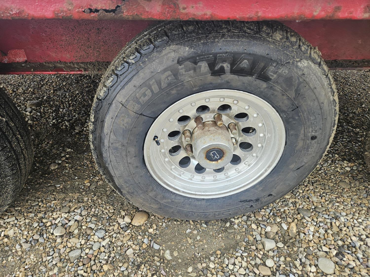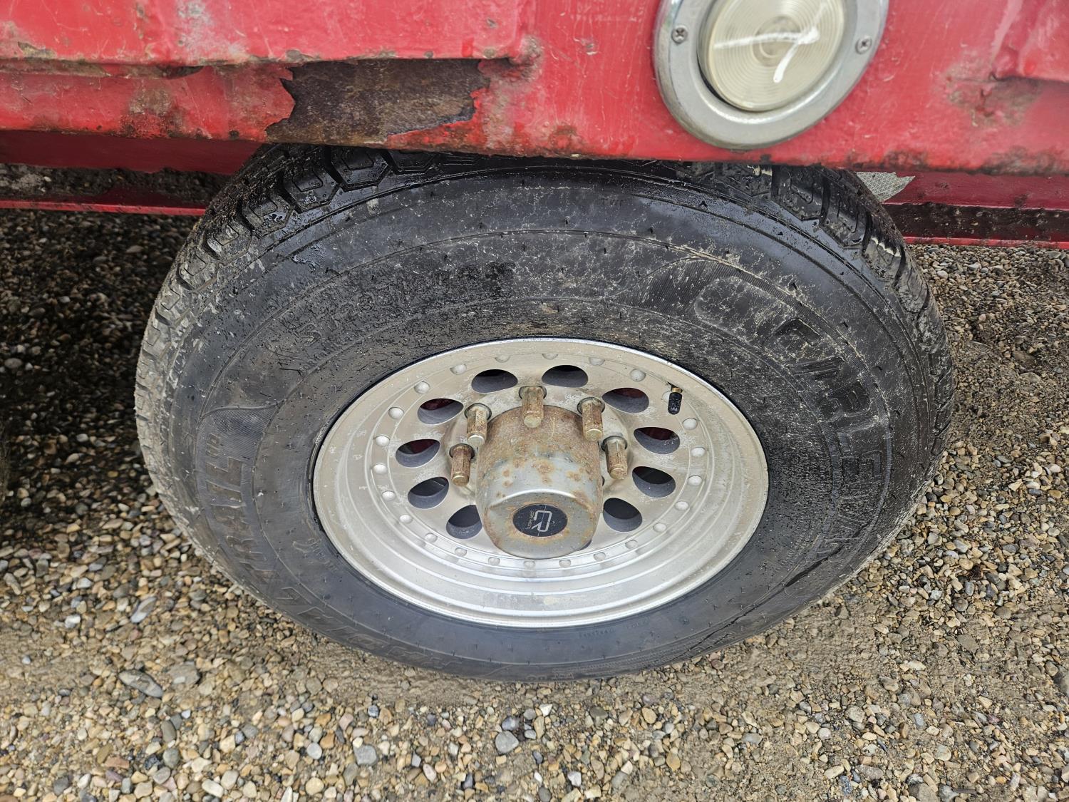 101 inch wide deck, wood deck, slide in ramps, electric brakes, torsion suspension, tool / storage box, rub rails, stake pockets, aluminum wheels, 7000 lb axles, 235/85R16 tires