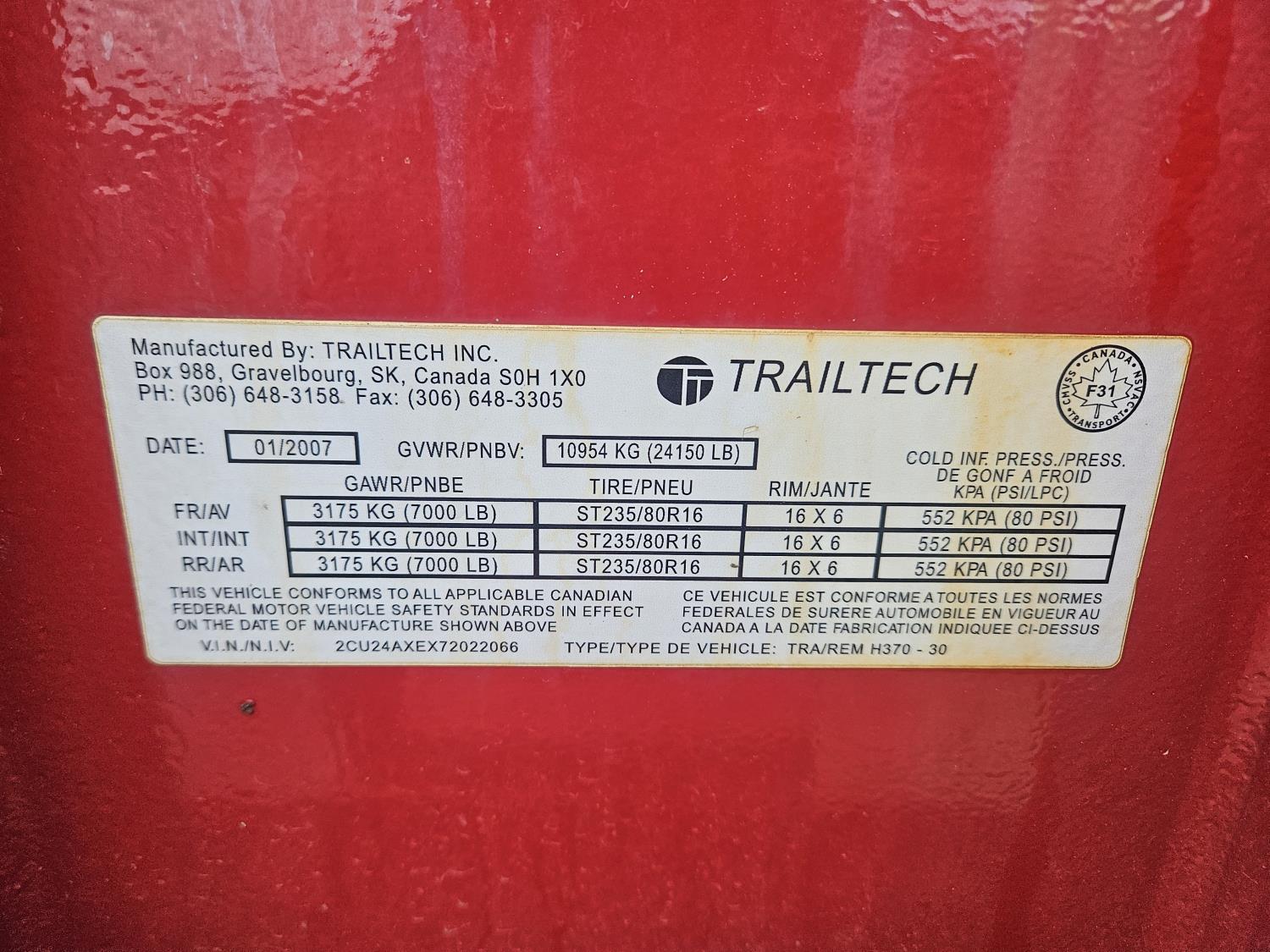 294 2007 Trailtech 30 Ft TRI/A G/N Flat Deck Trailer