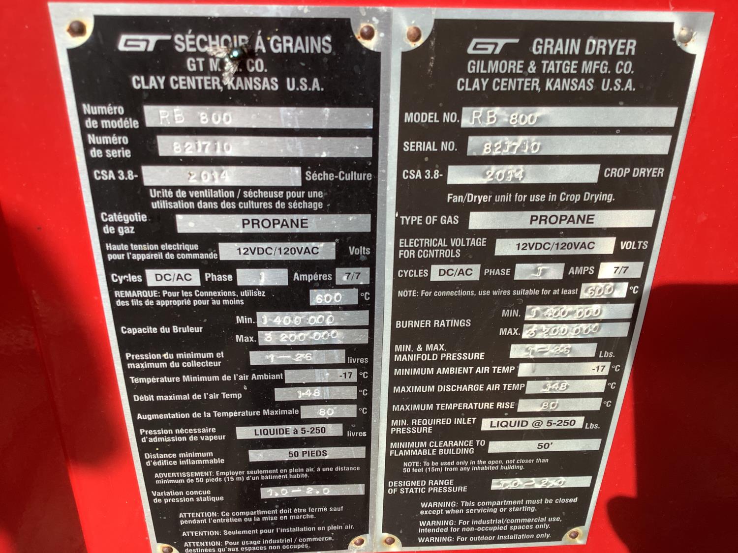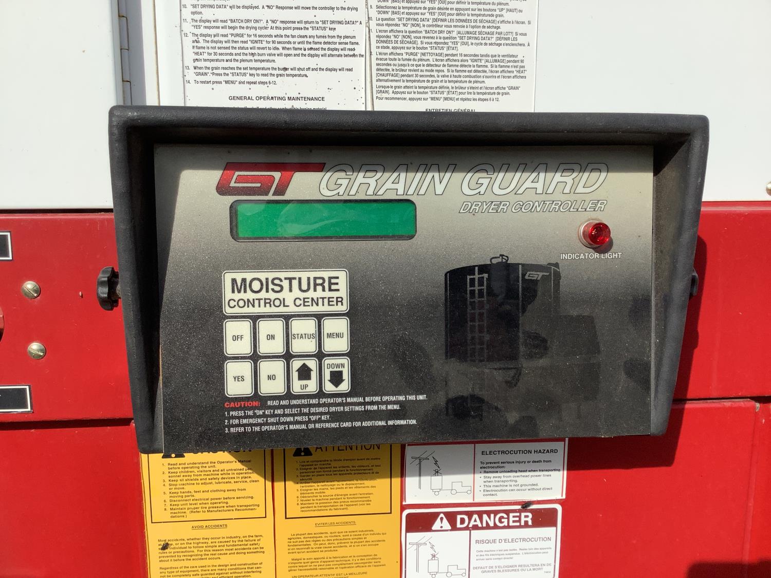 540 PTO, propane, moisture control center monitor, top 1/3 of the dryer folds down for transport, tandem dual wheels, single phase 120 volt power, (2) rig mats