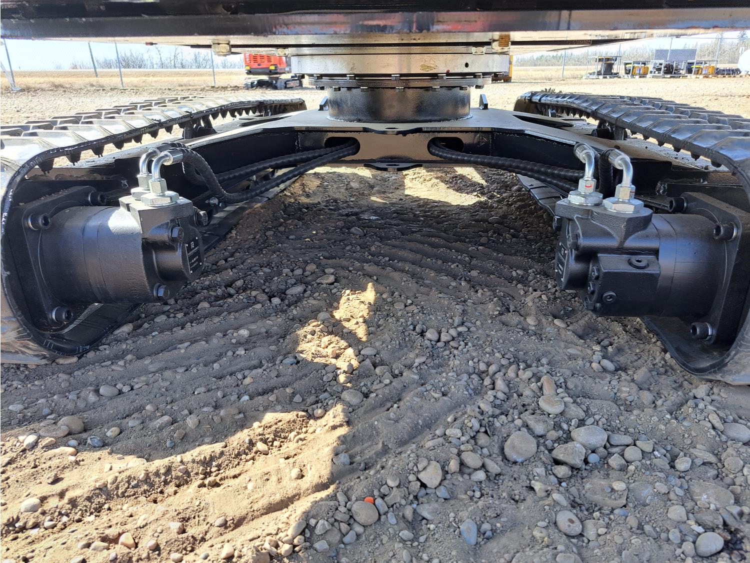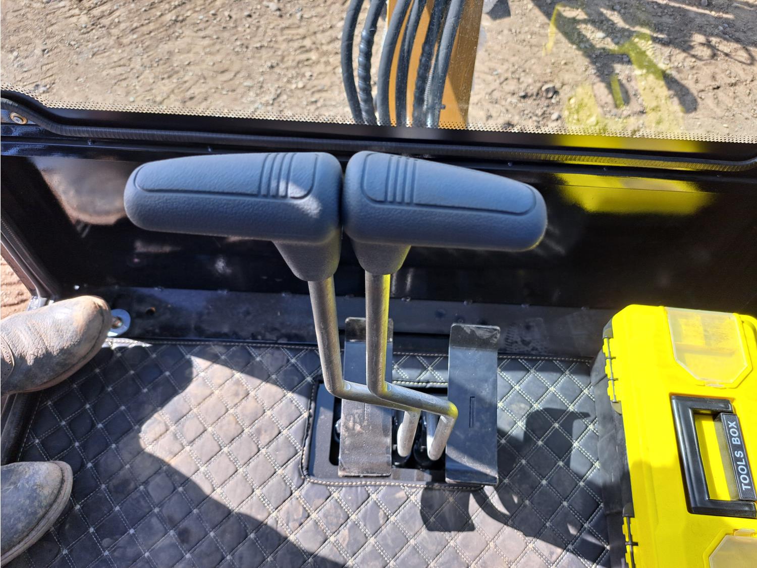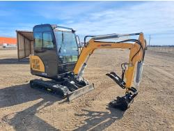 Enclosed cab, pilot controls, 25HP Kubota Diesel, 16 inch dig bucket, hydraulic thumb, 1 auxiliary hydraulics, 45 inch stick, swing boom, backfill blade, 9 inch rubber tracks