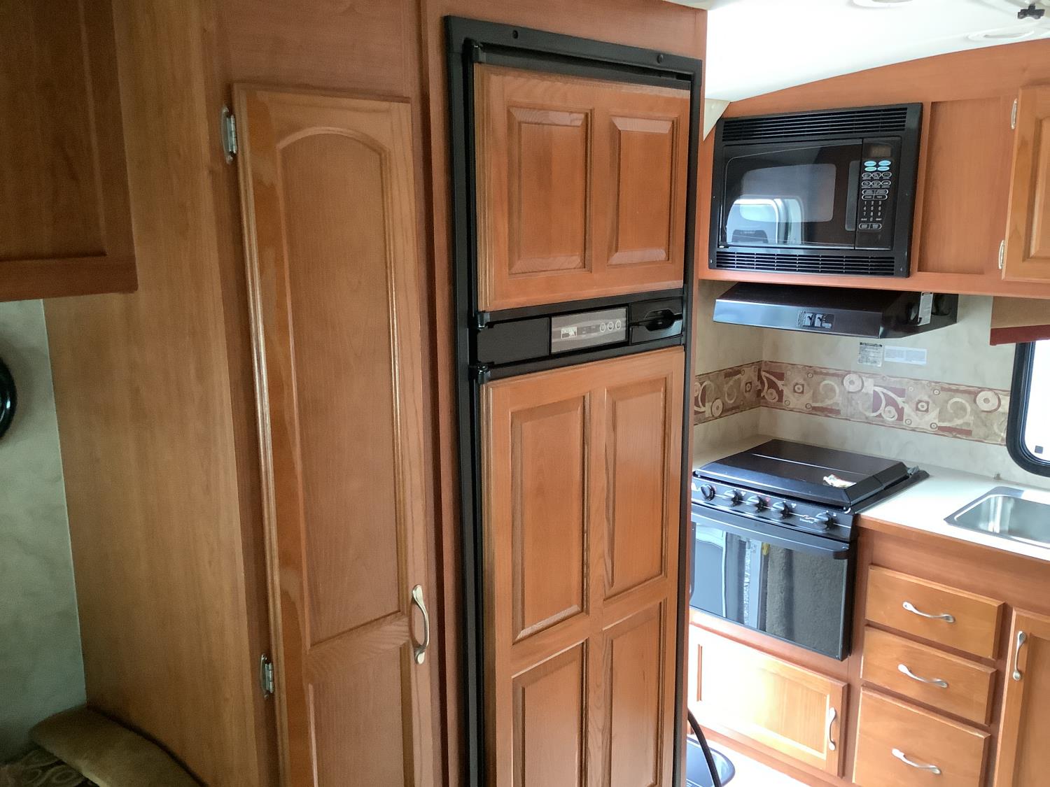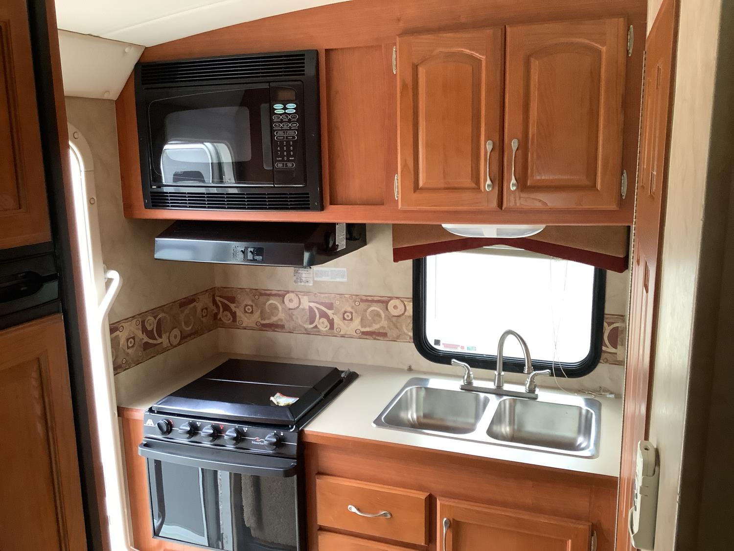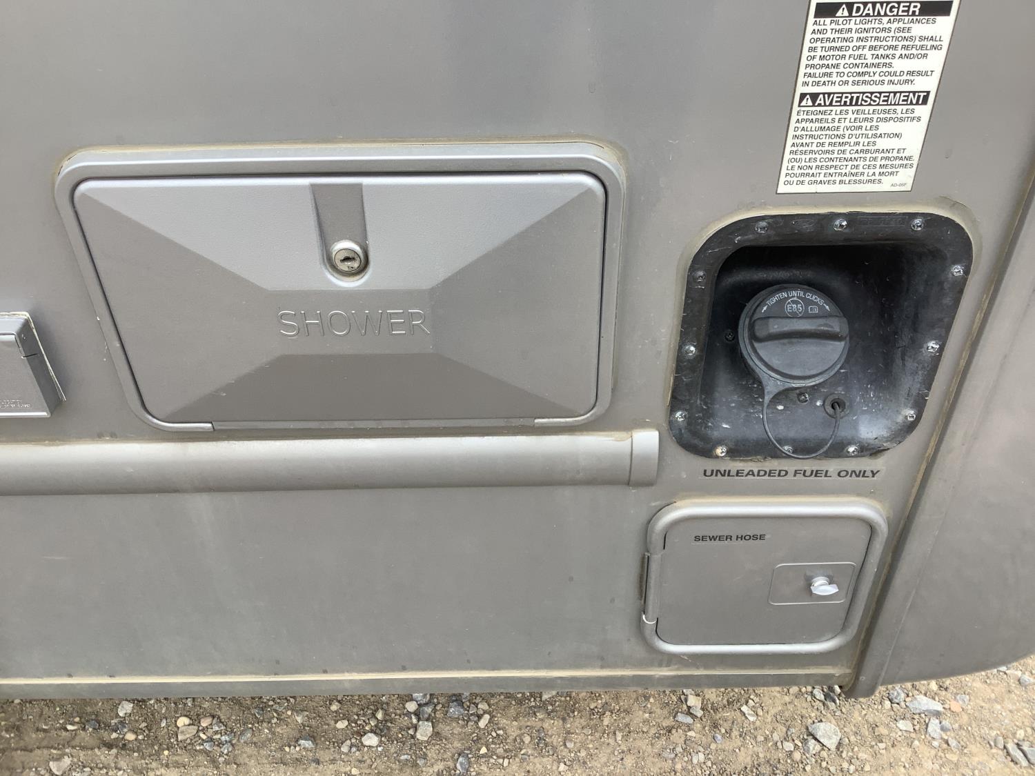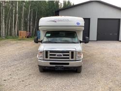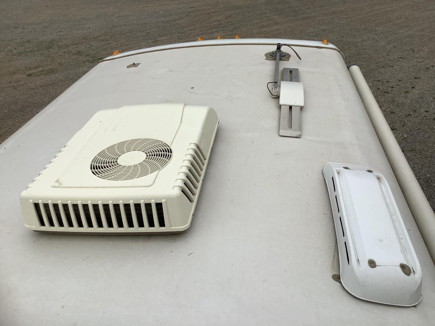 Ford F350 chassis, 6.8L V8 gas engine, automatic transmission, P/W, P/L, heated mirrors, radio, Onan generator, roof mount AC unit, full bathroom, 1 slide, fridge, freezer, oven, microwave, outdoor shower, propane or electric hot water, awning, owners manuals, rear duals, 225/75R16 tires