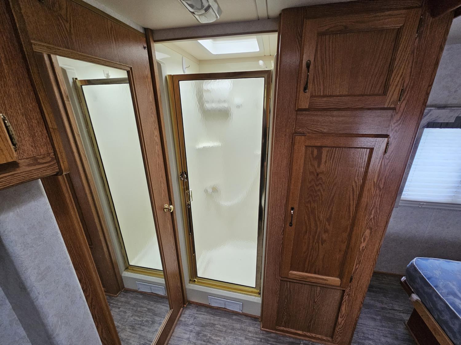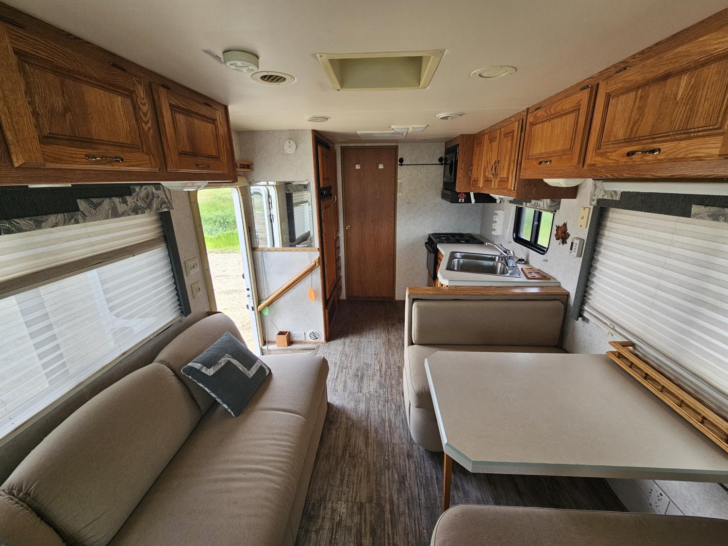 6.8L V10 Triton gas engine, automatic transmission, Onan Micro Lite 4000 gas powered generator, fridge, stove, microwave, master bedroom, full bathroom, sofa, dinette, A/C, radio, heated mirrors, awning, 215/70R19.5 tires