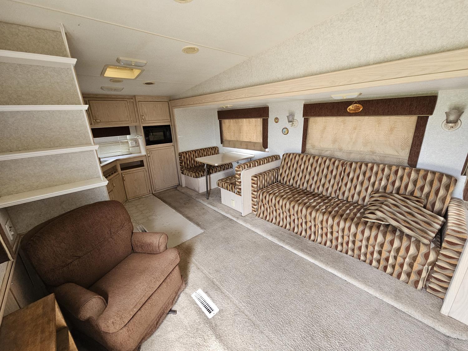 Sleeps 6, stove, fridge, microwave, full bath, A/C, 1 slide, manual awning, spring suspension, electric brakes, (3) solar panels, 225/75R15 tires