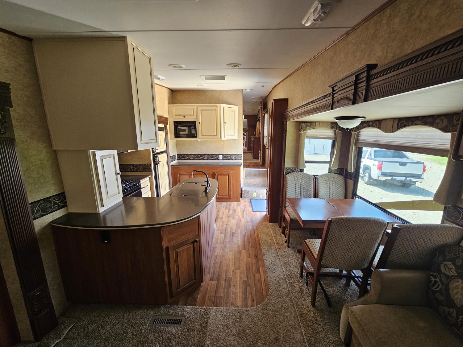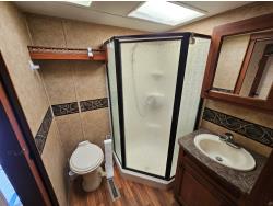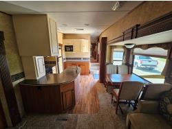stove, fridge, microwave, full bath, master bedroom, A/C, 4 slides, power awning, power levelling jacks, spring suspension, electric brakes, 2023 certified 30 lb propane tanks, 12v batteries replaced 2 years ago, upgraded stereo in 2021, central vac w/accessories, smoke and pet free, dual paned windows, 235/85R16 tires