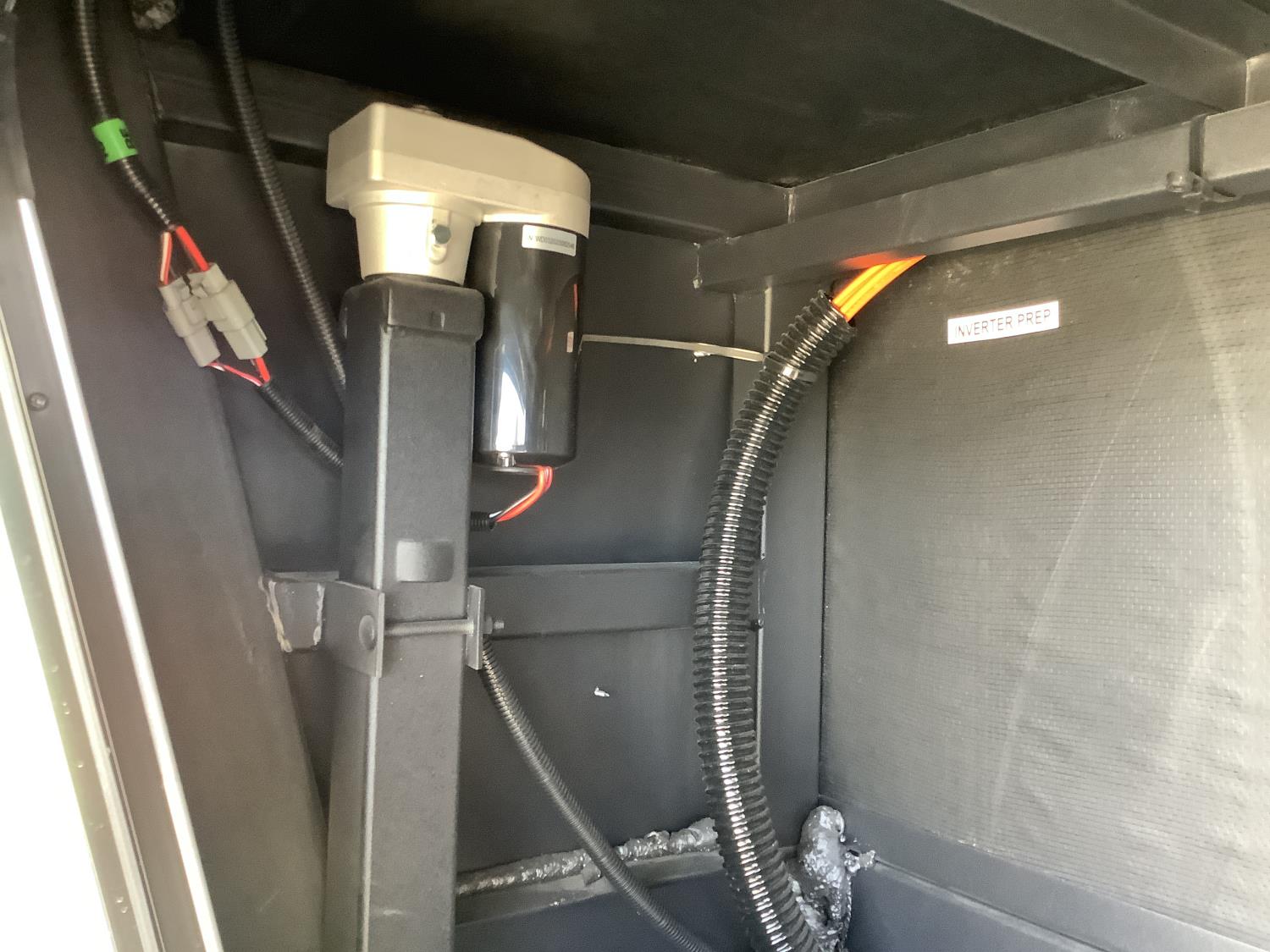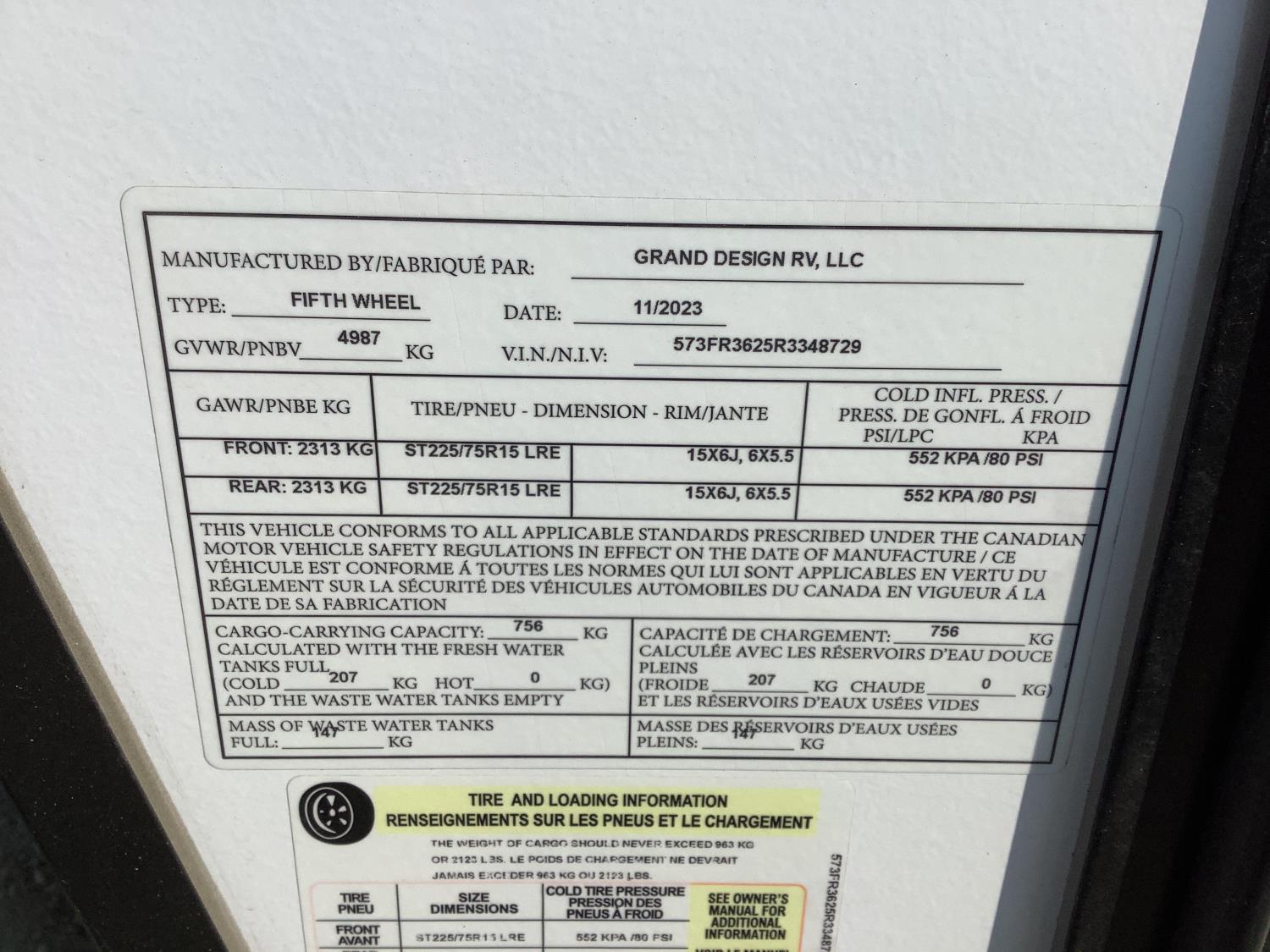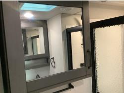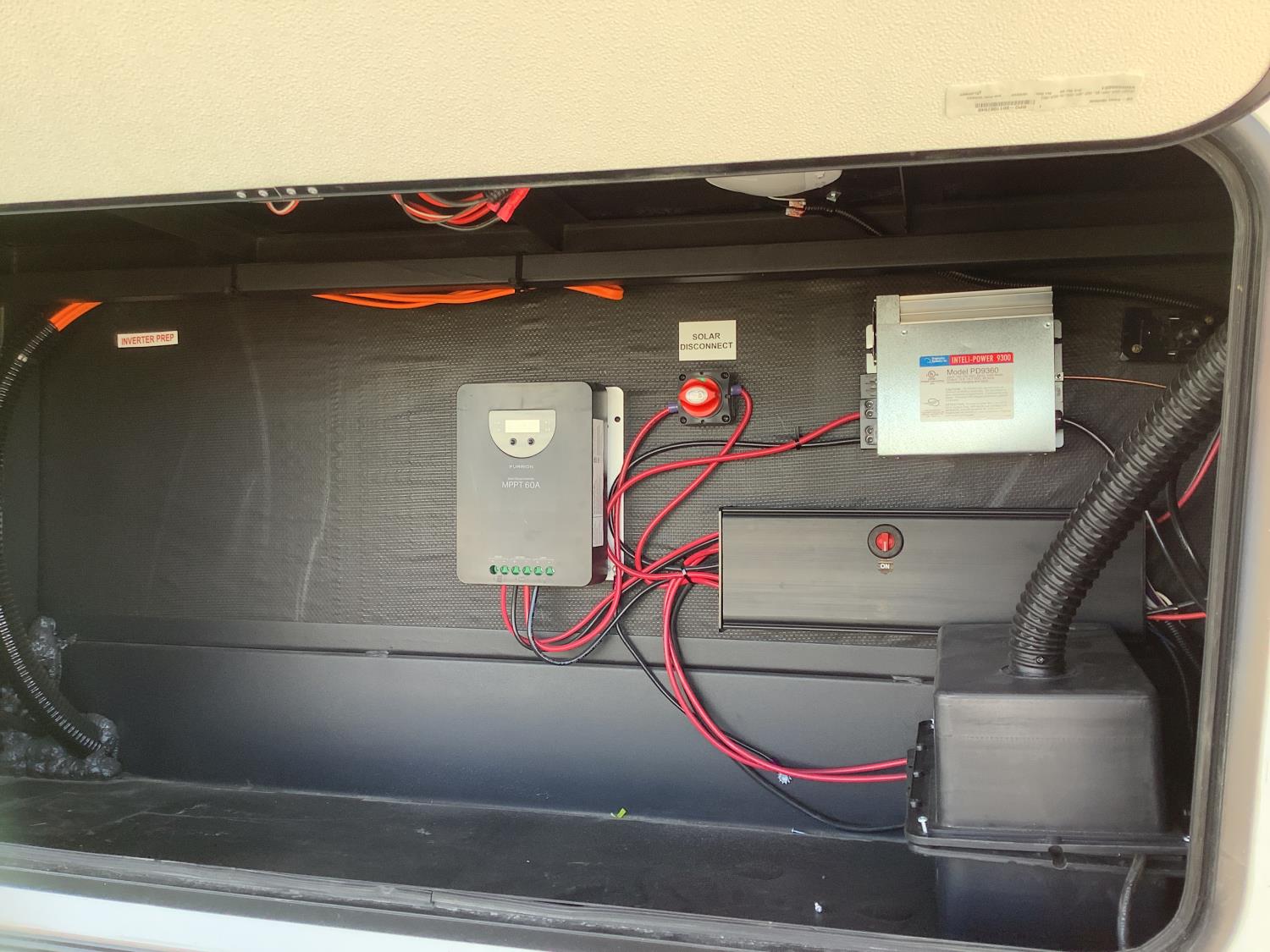A/C, outdoor kitchen, power awning, Full size fridge with freezer, one TV, furnace, full size bathroom, one slide, (2) rear bunks, fresh water system station, electronic control for leveling jacks, rear tow hitch, tire line control, roof mount solar charging system, (2) propane tanks, 225/75R15 tires