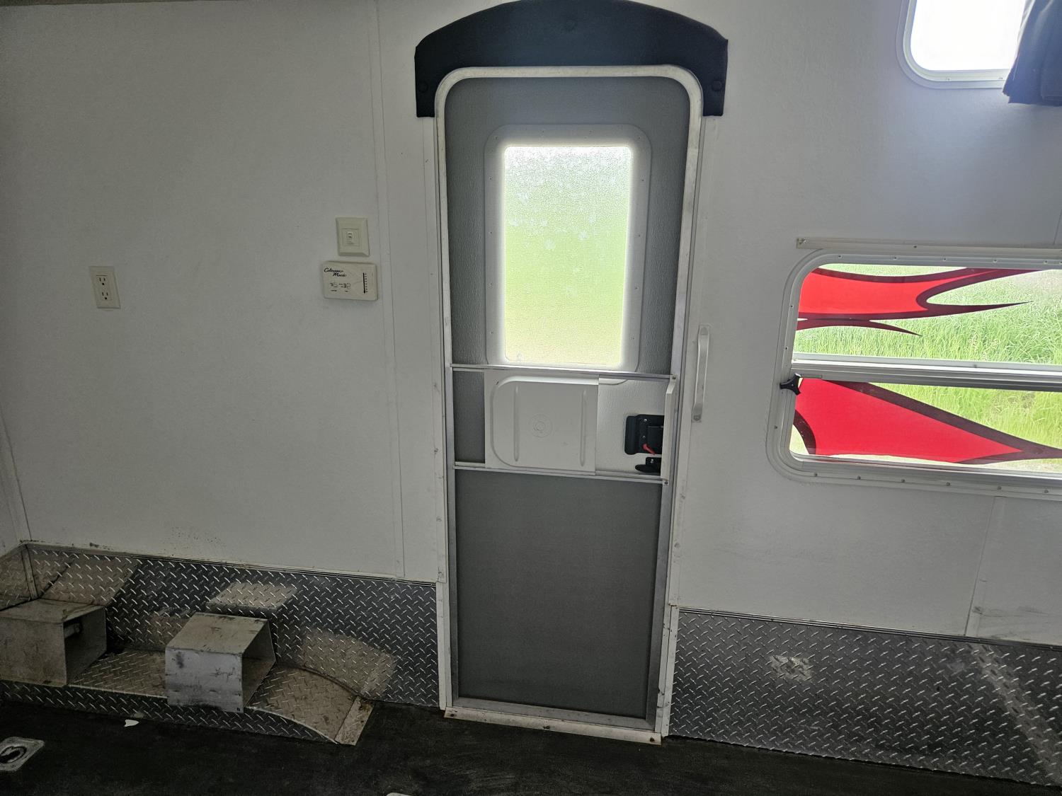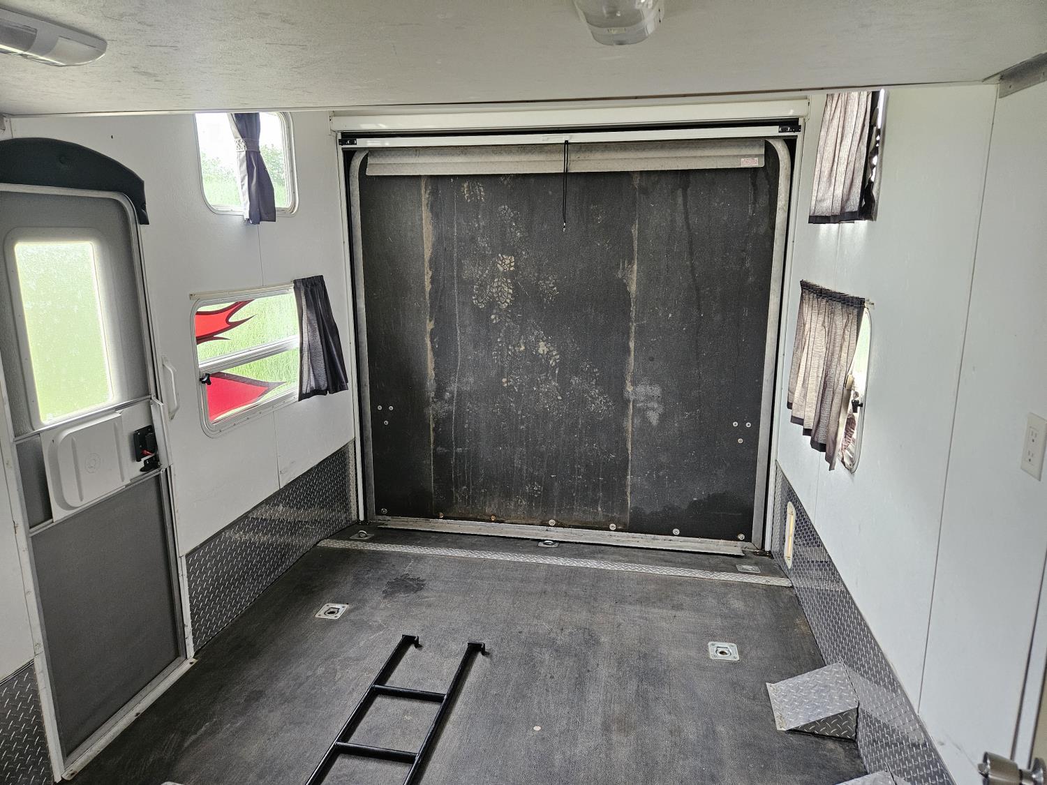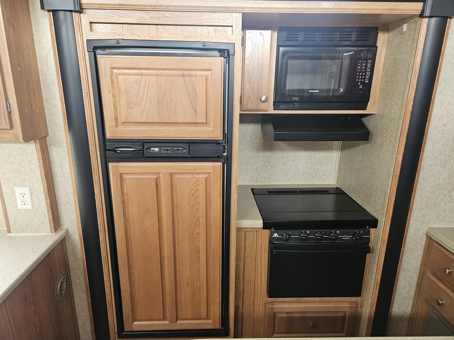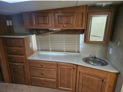 Sleeps 8, stove, fridge, microwave, full bath, master bedroom, A/C, outdoor shower, 3 slides, manual awning, Onan QG 5500 generator, spring suspension, electric brakes, u shaped dinette, hide abed sofa, (2) furnaces, (2) AC units, 12 ft garage, tv, DVD player, indoor outdoor stereo, (2) 30 lb propane tanks, fueling station, 235/85R16 tires