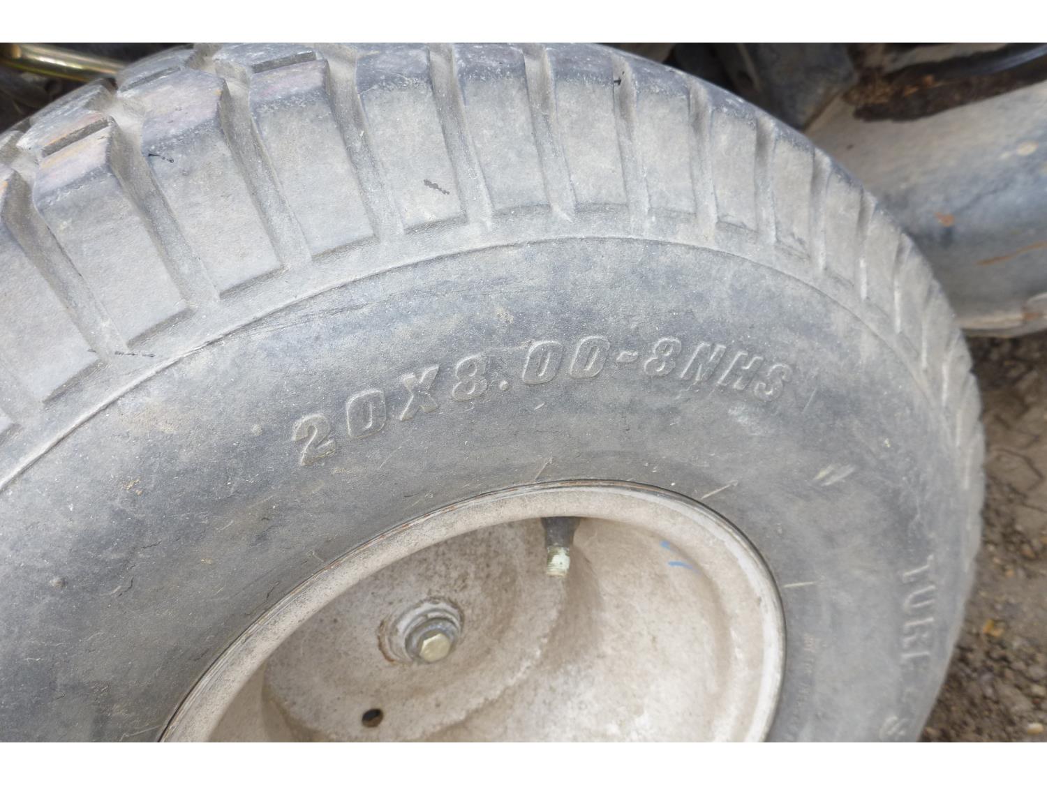 13.5 HP Briggs & Stratton, 15x6.00-6NHS front tires, 20x8.00-8NHS rear tires