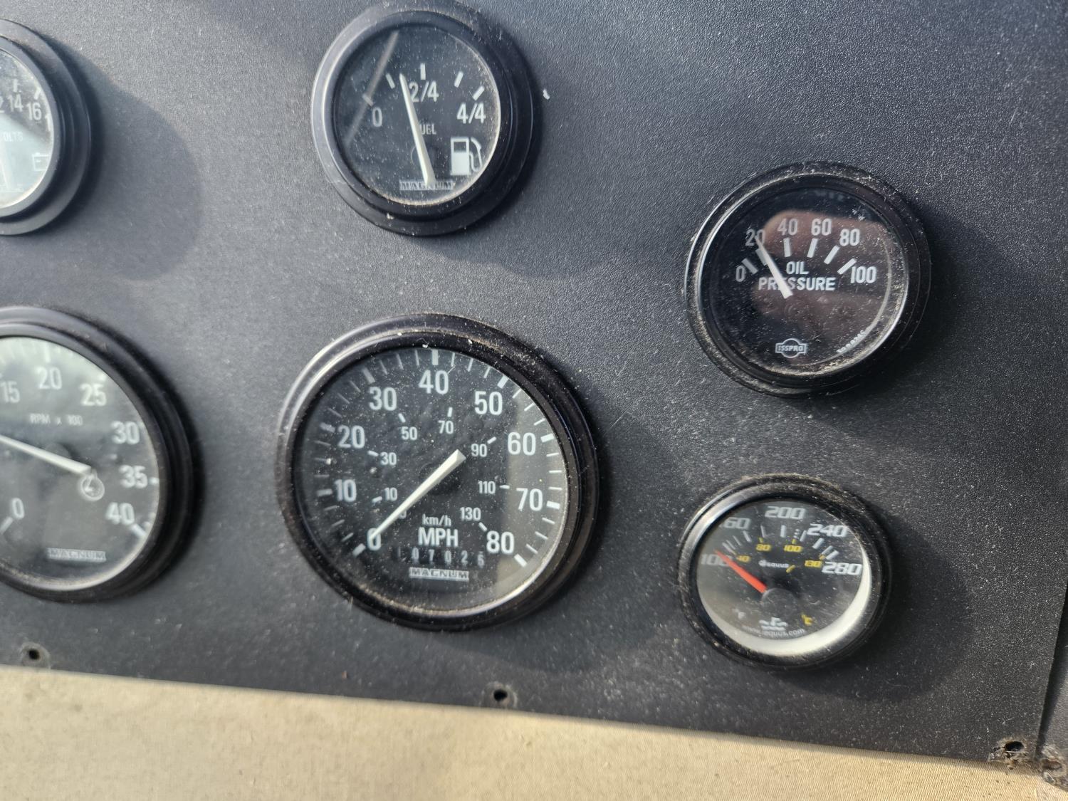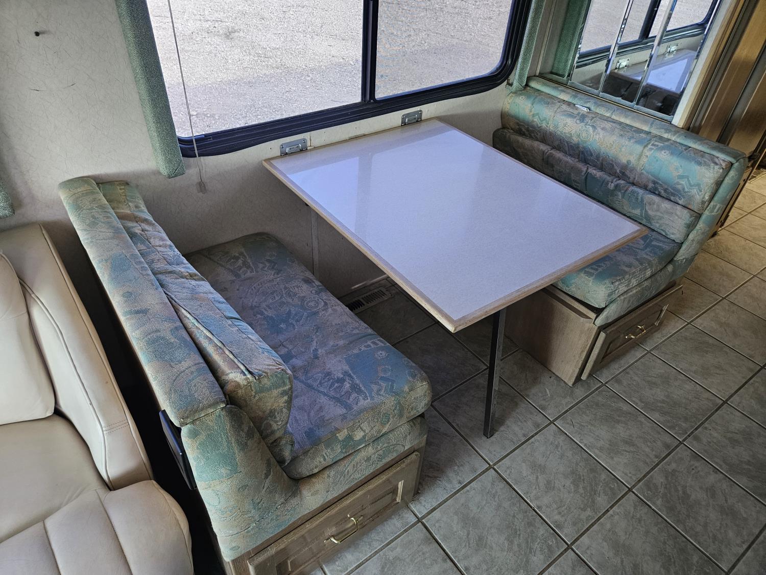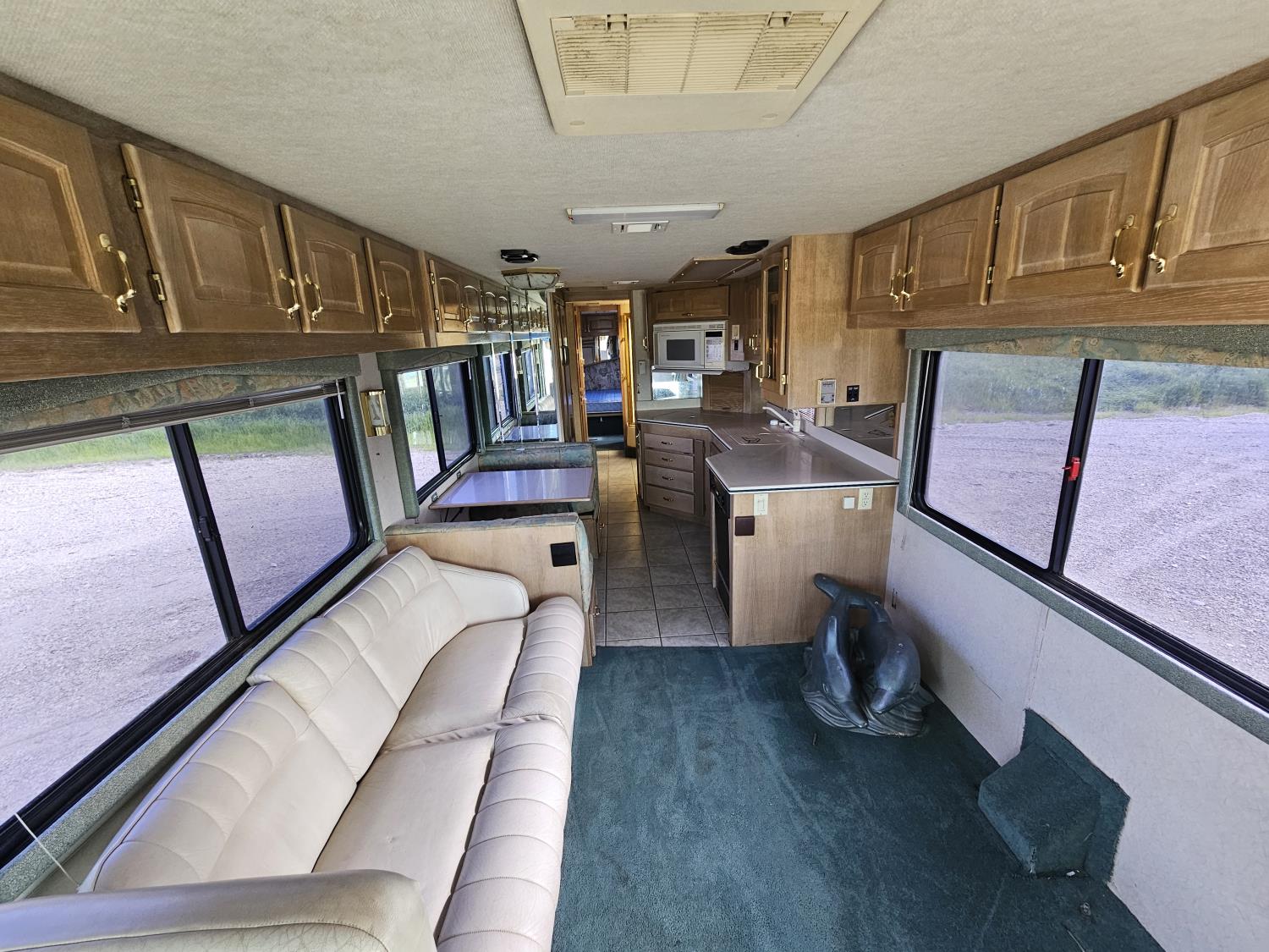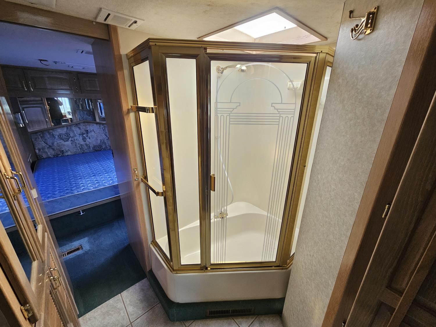 Cat 3126 6 cylinder diesel engine, automatic transmission, air brakes, Onan Marquis 6500 LP generator, rear bedroom, full master bathroom, dinette, sofa, chair, fridge, stove, dishwasher, A/C, power levelling jacks, TV, electric step, under belly storage, new batteries, new tires, new window awnings, aluminum wheels, 255/70R22.5 tires