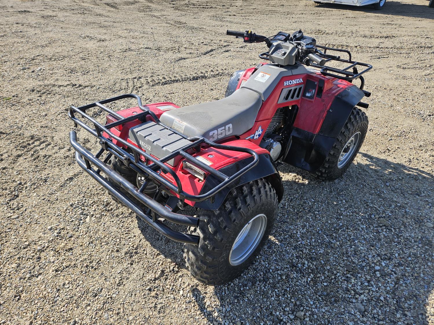 350 cc engine, manual transmission, reverse, hitch, front and rear racks, front winch, new battery and carb, 24X9-11 front tires, 24X9-11 rear tires
