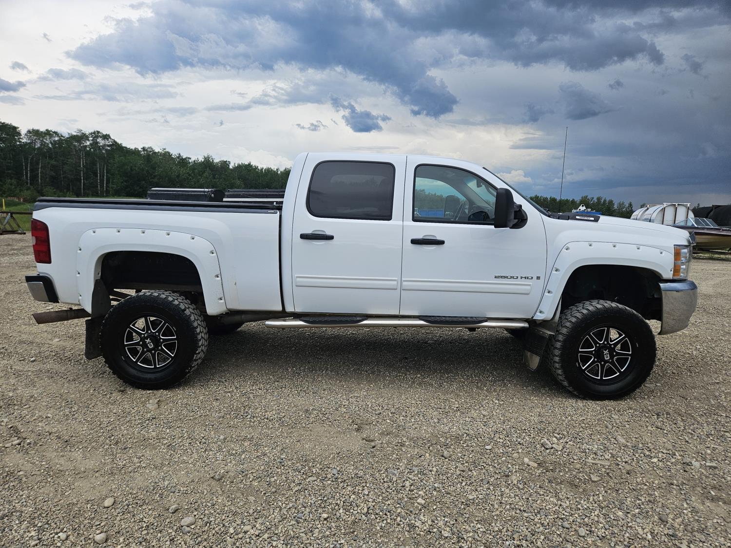 6.0 L, V8, gas, automatic transmission, P/W, P/L, A/C, running boards, 6 ft box, soft folding tonneau cover, 7" BDS lift, air bags, built in air compressor, 35X12.50R20 tires