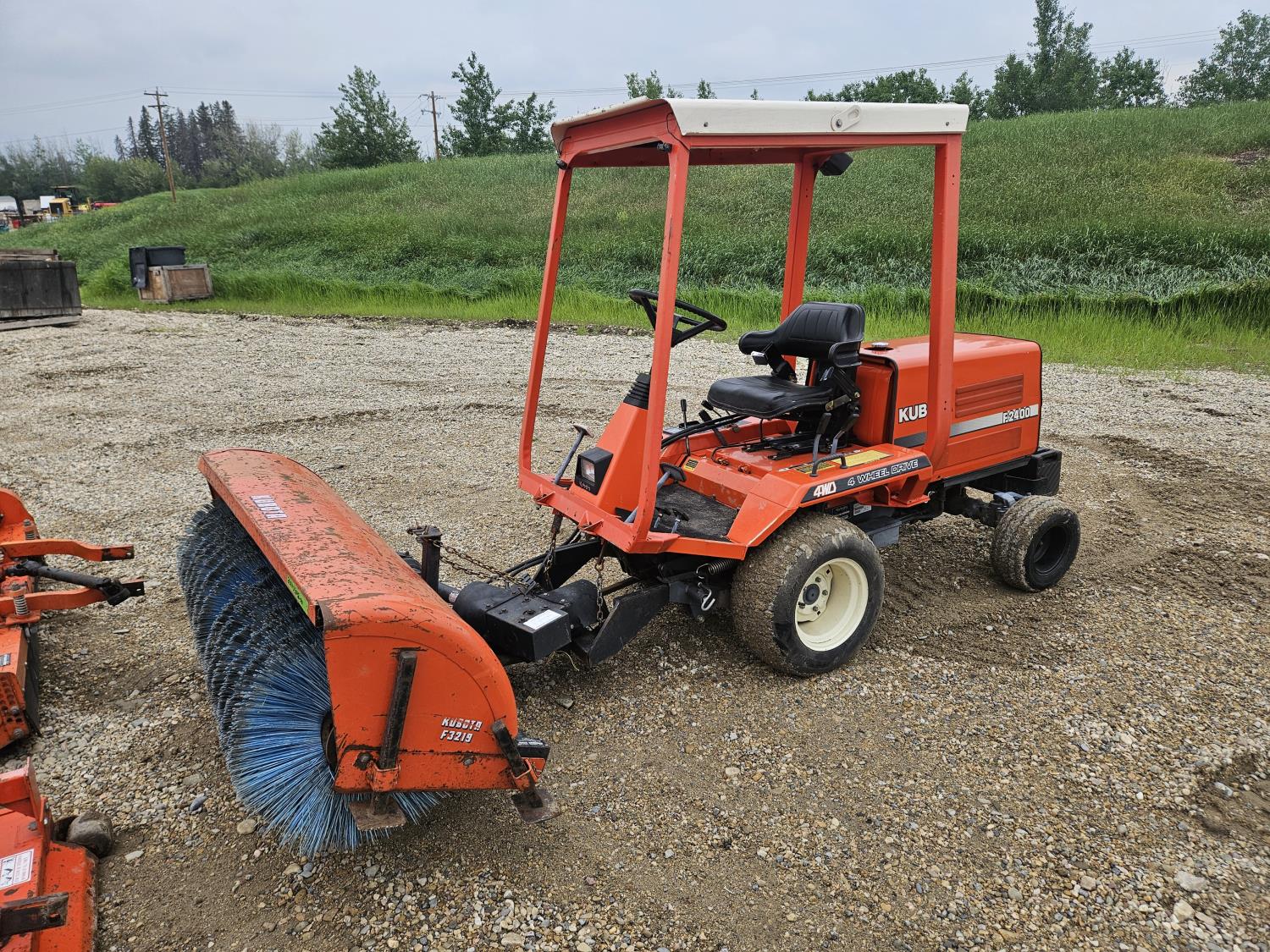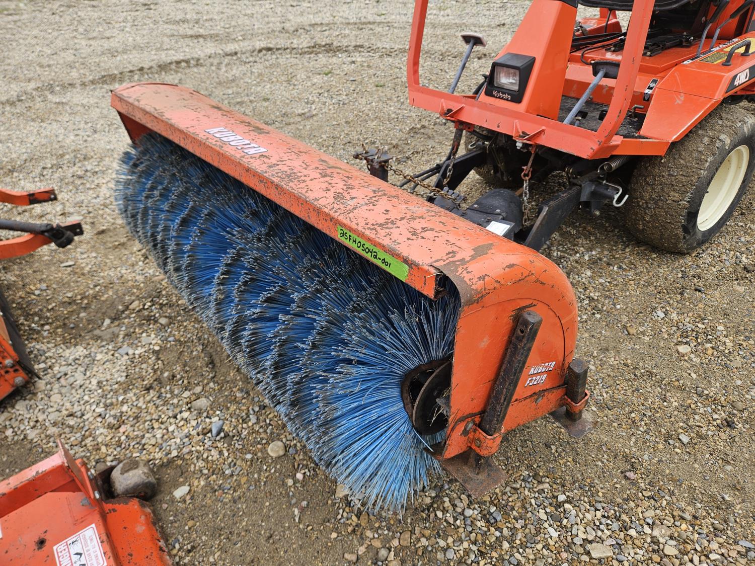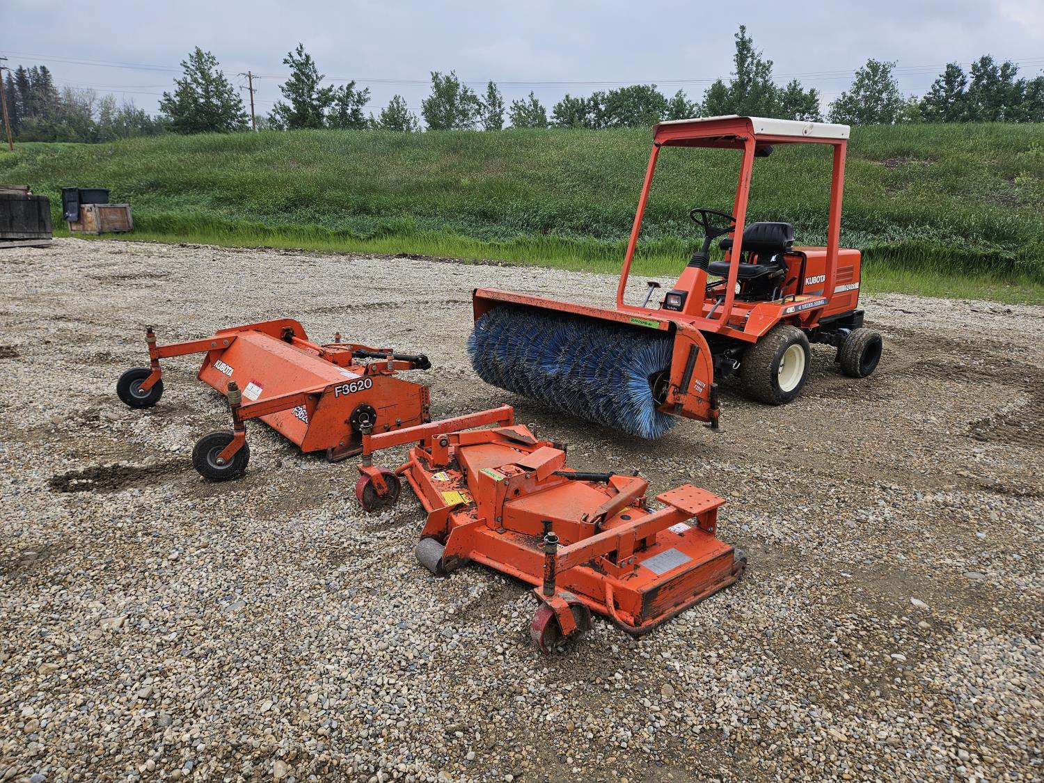 24 HP 3 cylinder Kubota diesel engine, hydrostatic transmission, front mount PTO, 23x10.00-12 front tires, 16x6.50-8 rear tires, Kubota F3219 60 inch power brush, Kubota RG-60 60 inch finishing mower, Kubota F3620 66 inch flail mower