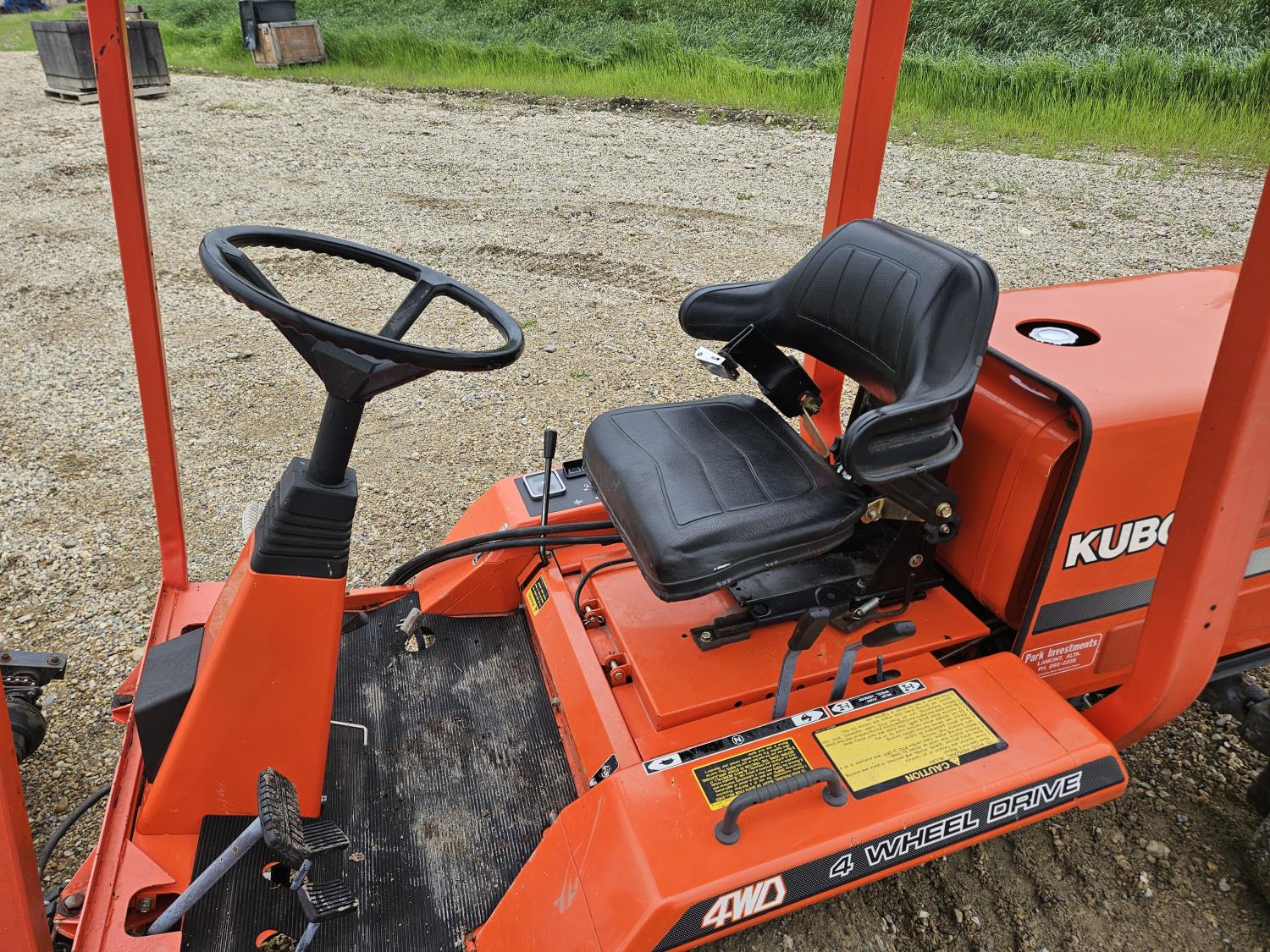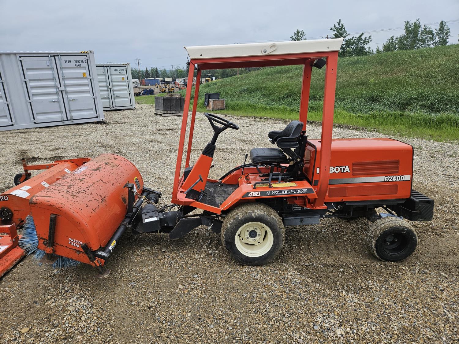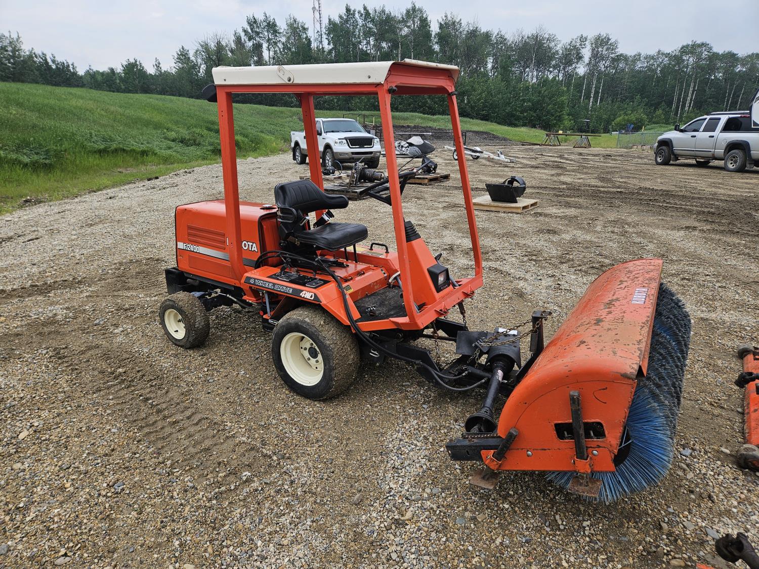 24 HP 3 cylinder Kubota diesel engine, hydrostatic transmission, front mount PTO, 23x10.00-12 front tires, 16x6.50-8 rear tires, Kubota F3219 60 inch power brush, Kubota RG-60 60 inch finishing mower, Kubota F3620 66 inch flail mower