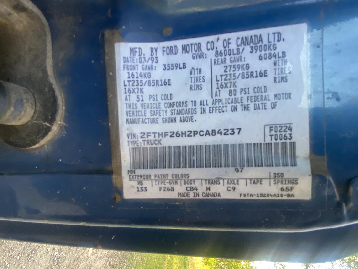 - Ser #: 2FTHF26H2PCA84237