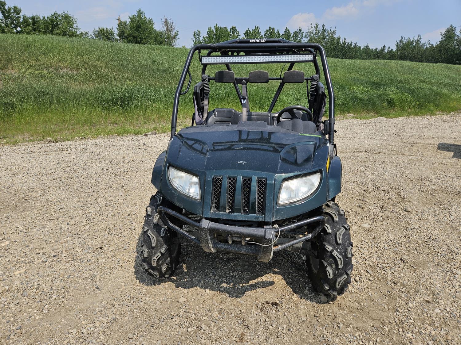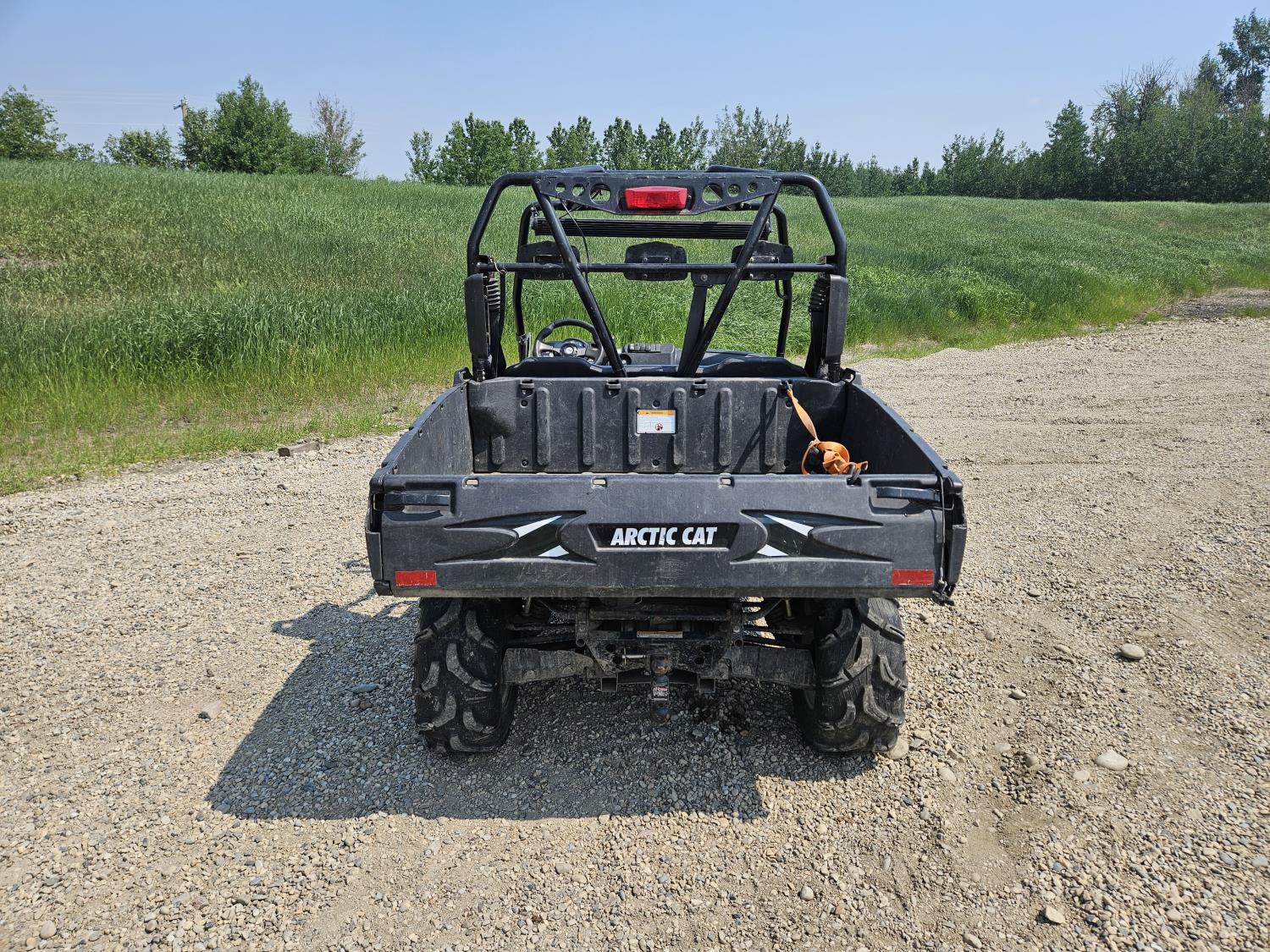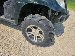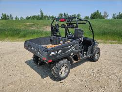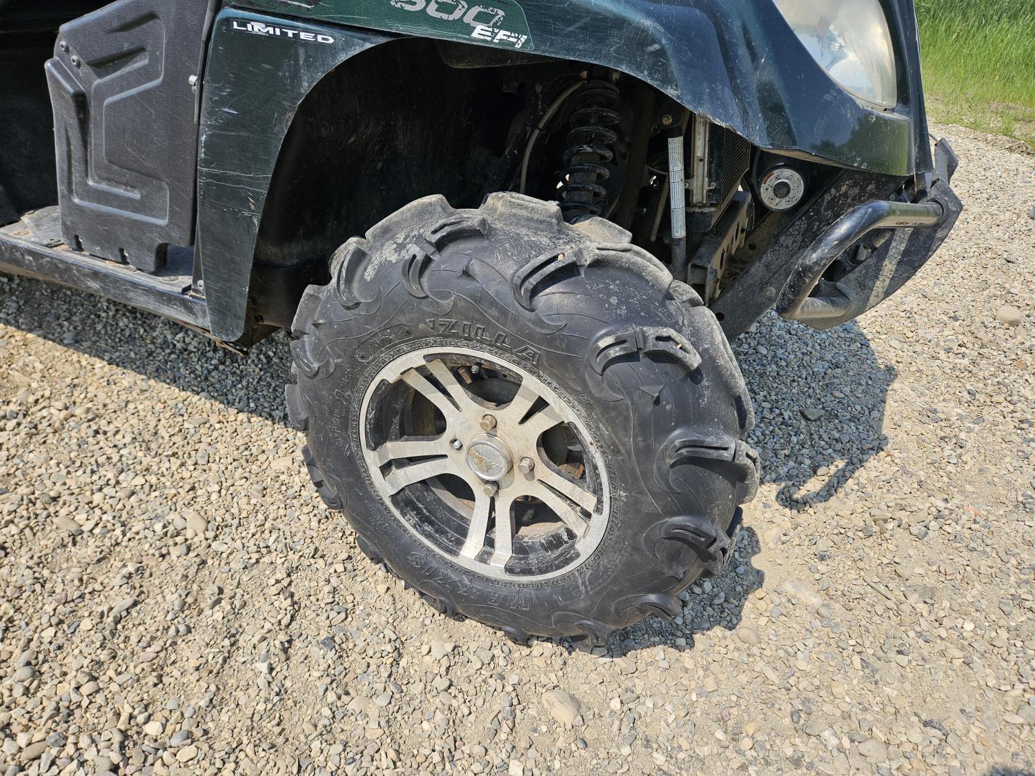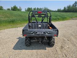 443 cc fuel injected engine, CVT transmission, Hi/Lo range, reverse, open canopy, 3 passengers, front winch, front brush guard, manual dump box, hitch, light bar, aluminum wheels, 28X9.00R14 front tires, 28X11.00R14 rear tires