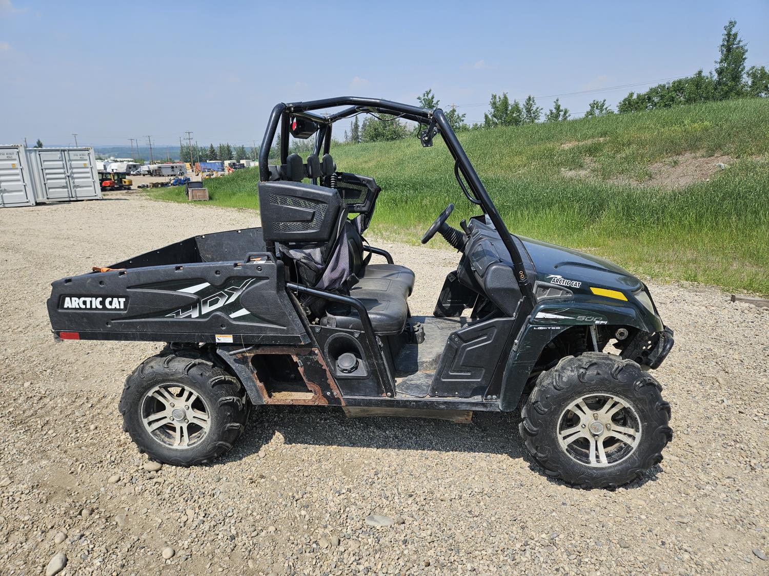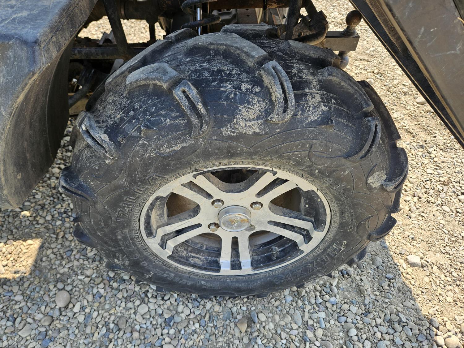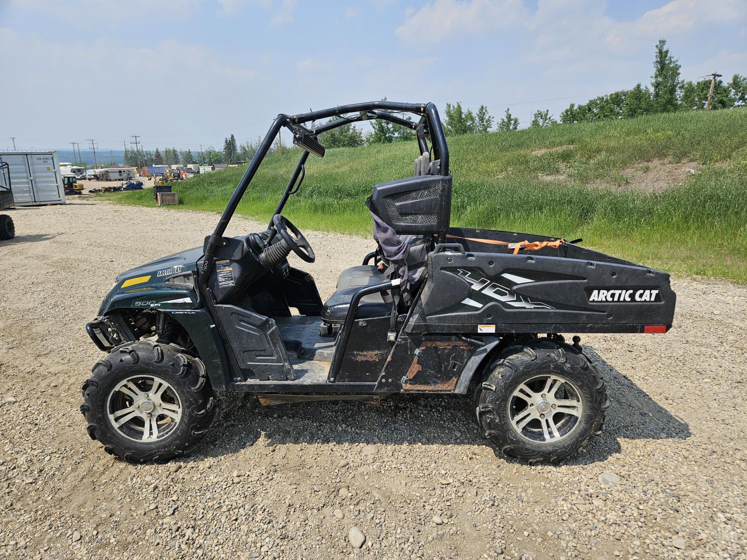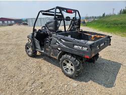443 cc fuel injected engine, CVT transmission, Hi/Lo range, reverse, open canopy, 3 passengers, front winch, front brush guard, manual dump box, hitch, light bar, aluminum wheels, 28X9.00R14 front tires, 28X11.00R14 rear tires