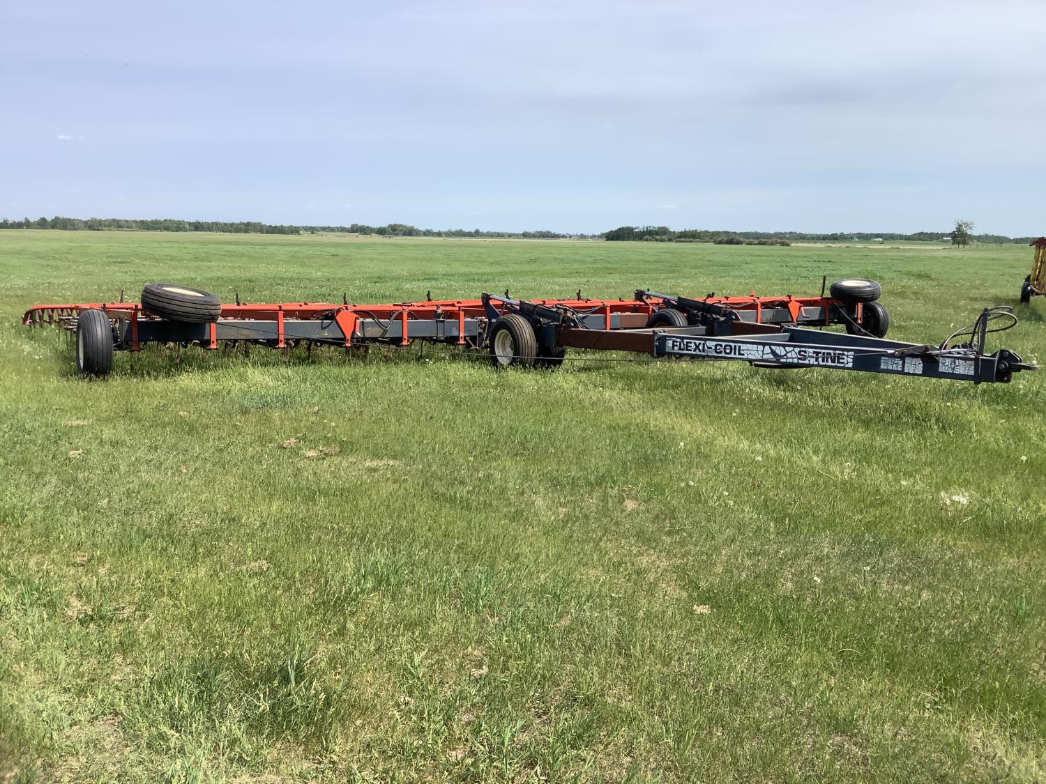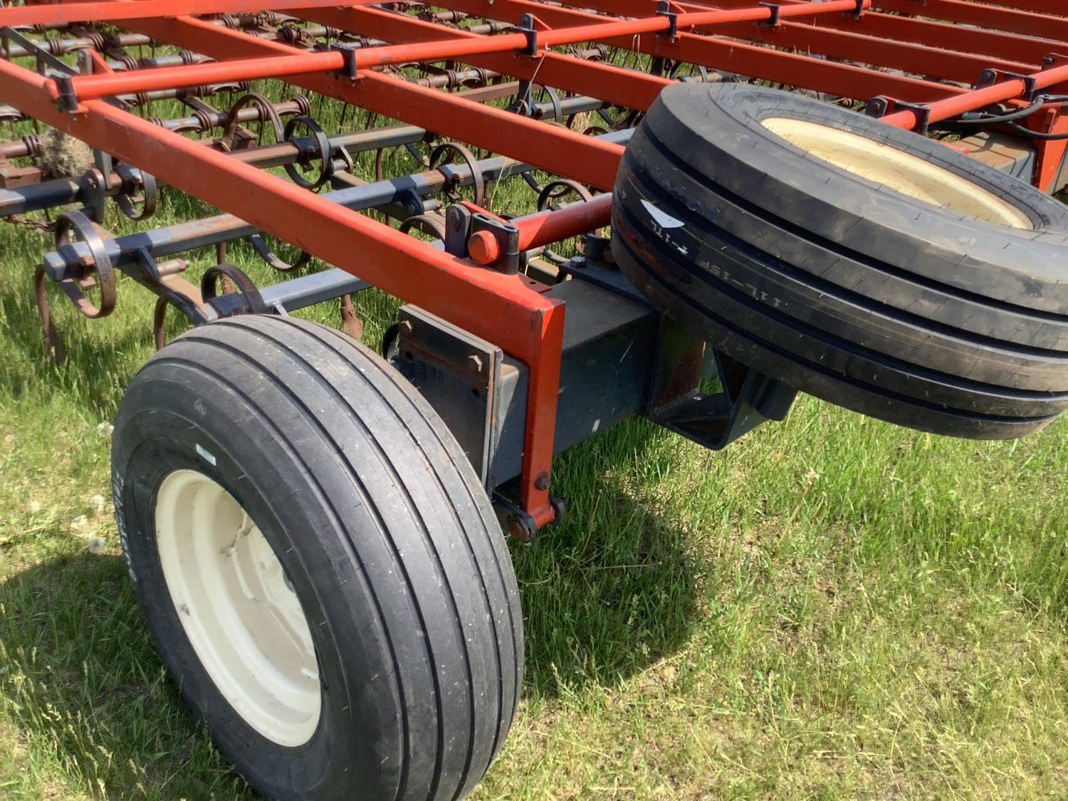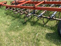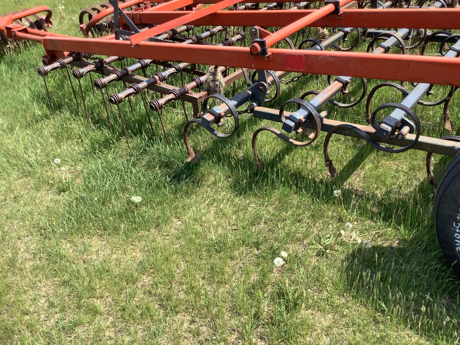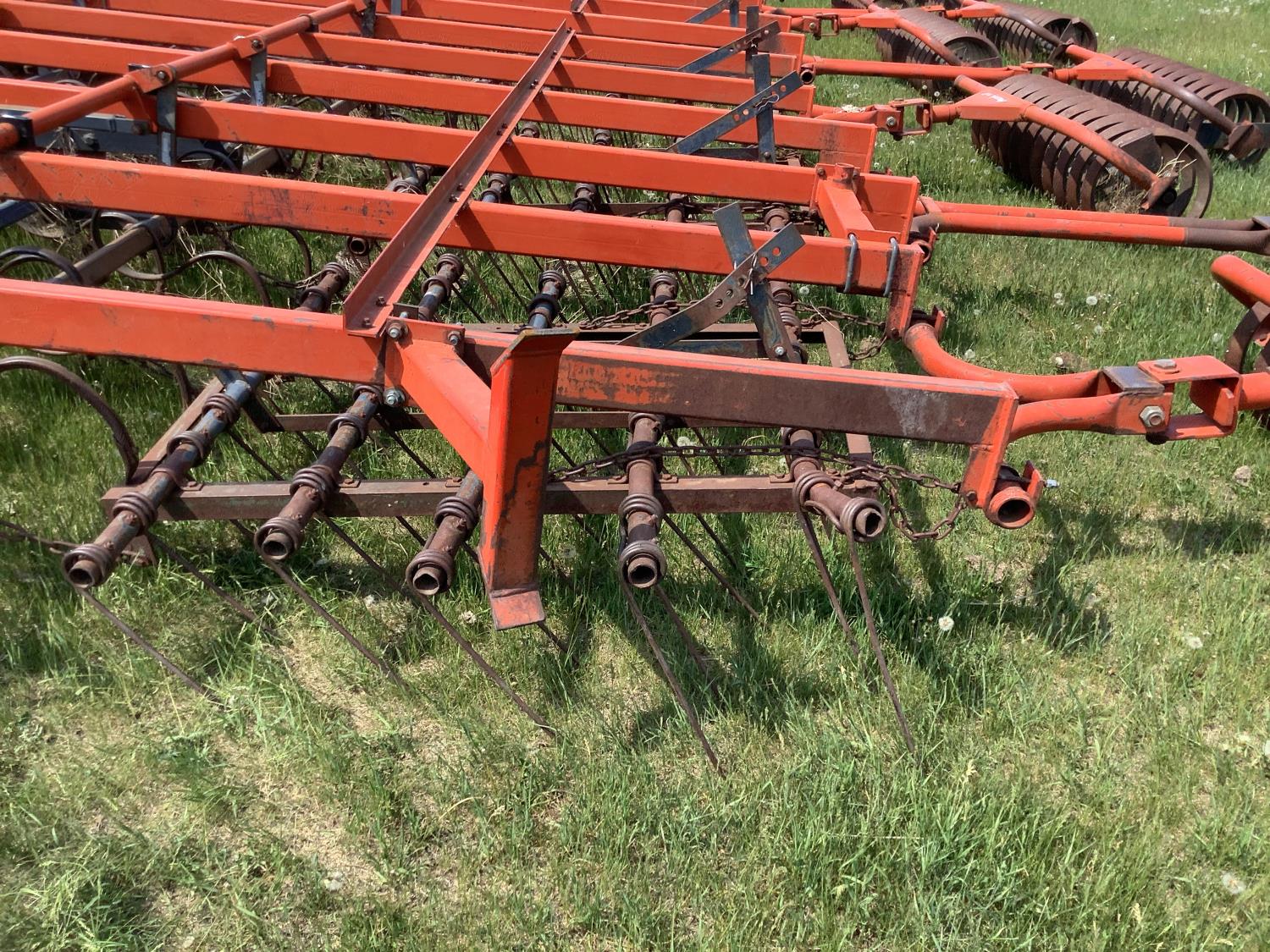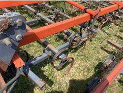 4 rows of S tine cultivator shanks, 5 bar tine harrows then coil packers