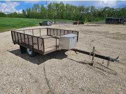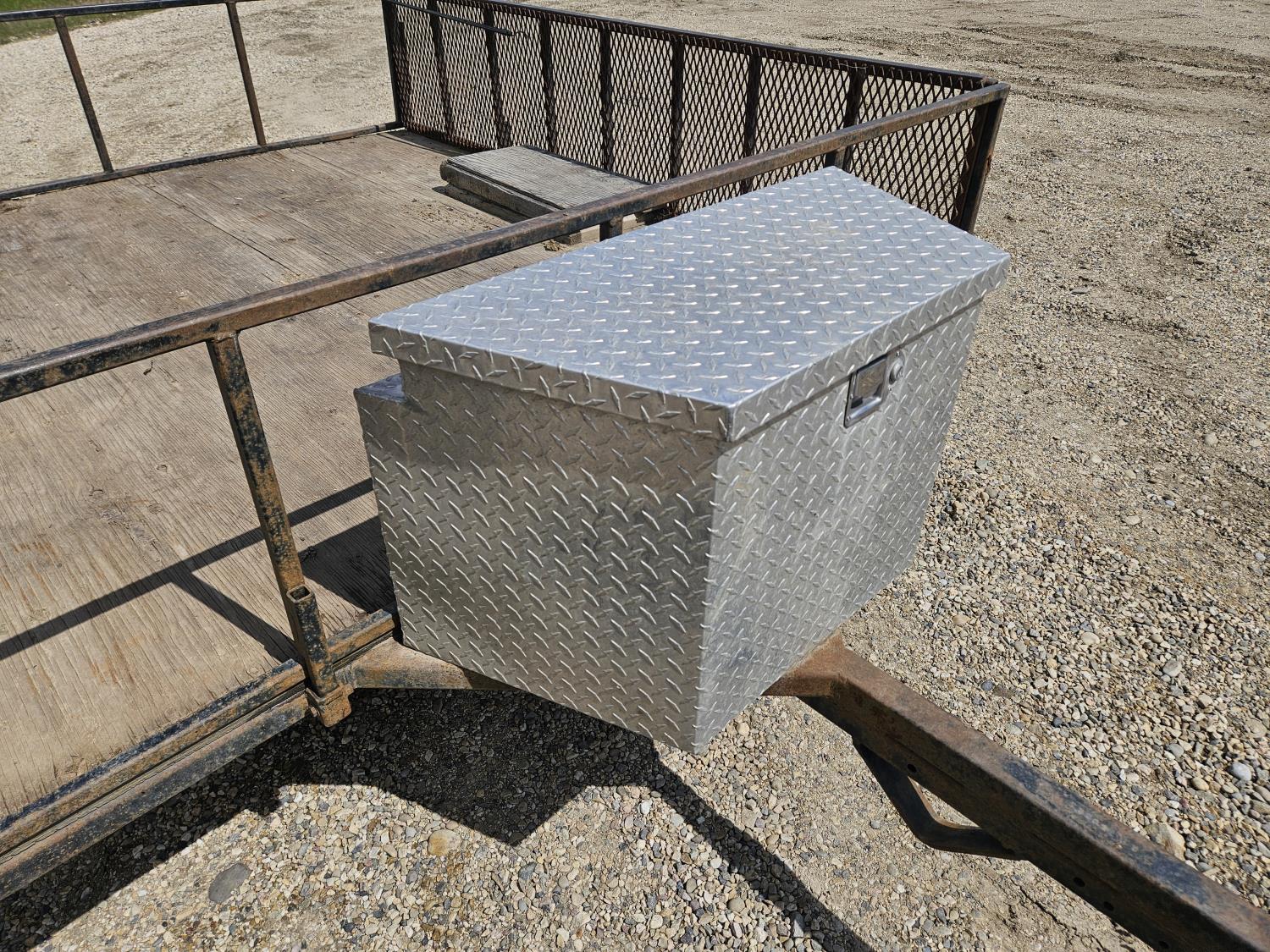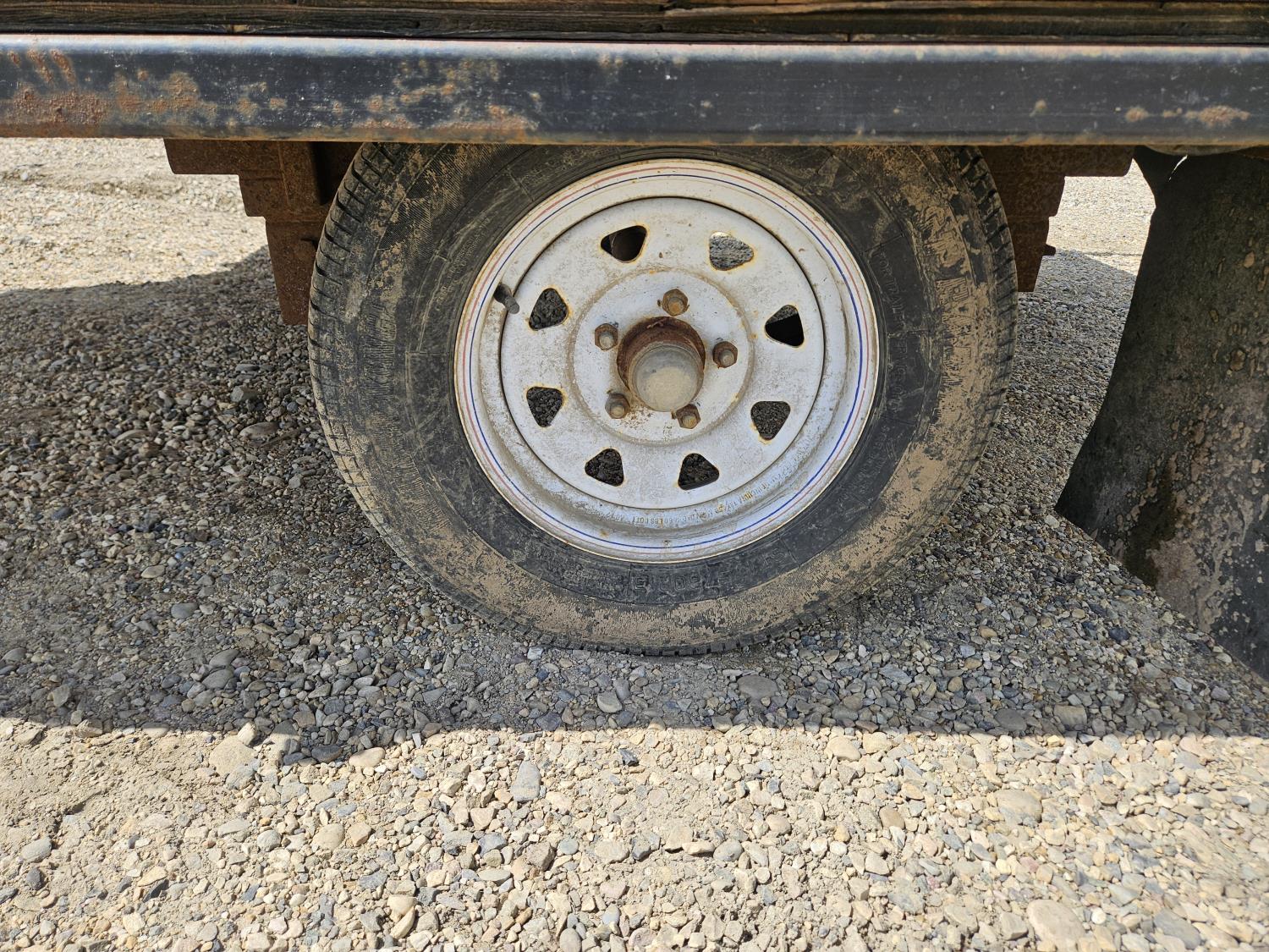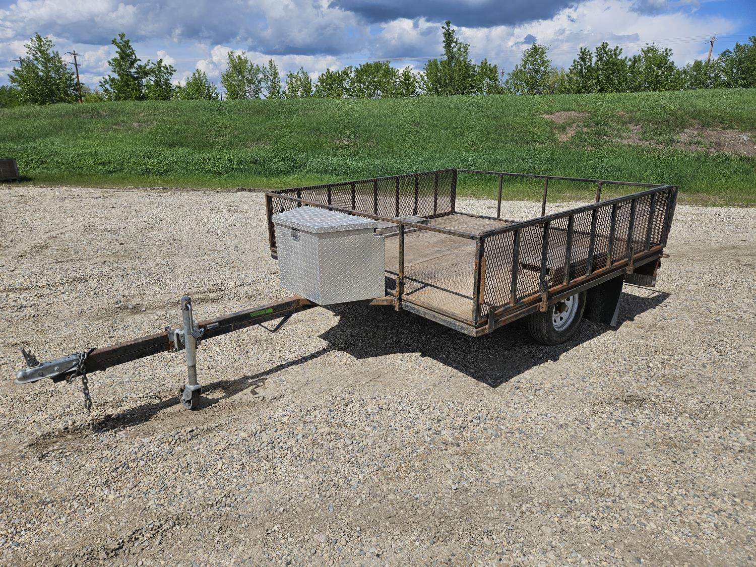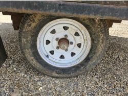 96 inch wide deck, wood deck, ball hitch, tool / storage box, 175/80R13 tires