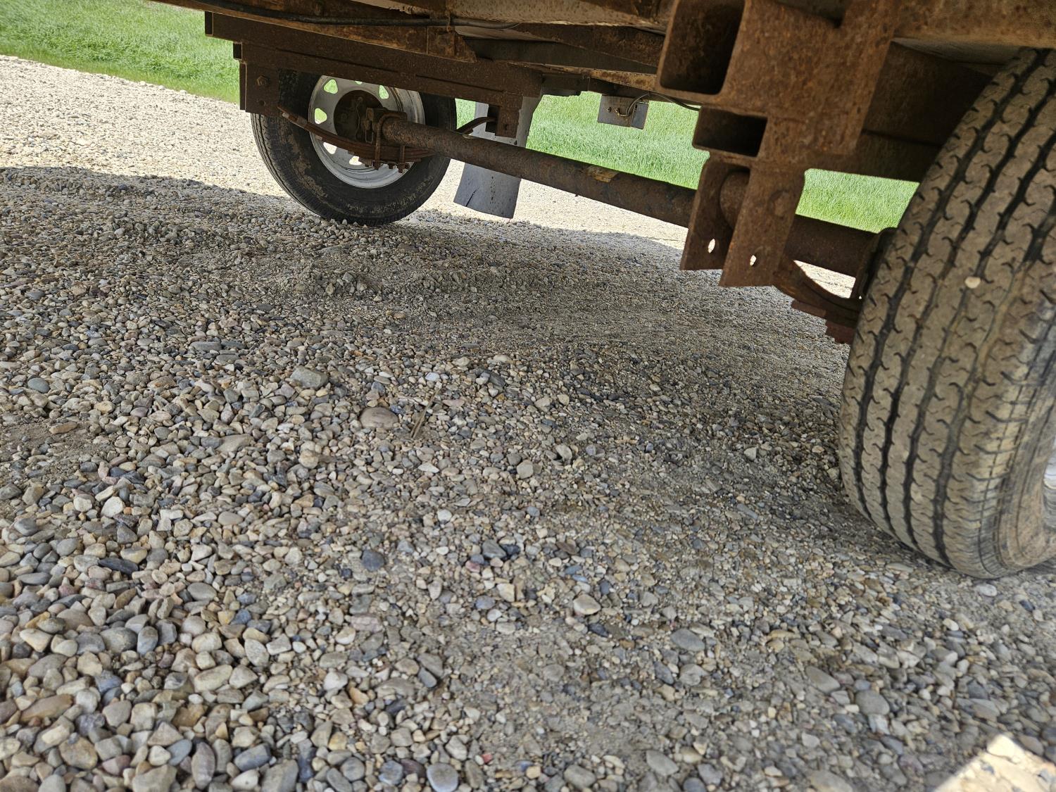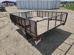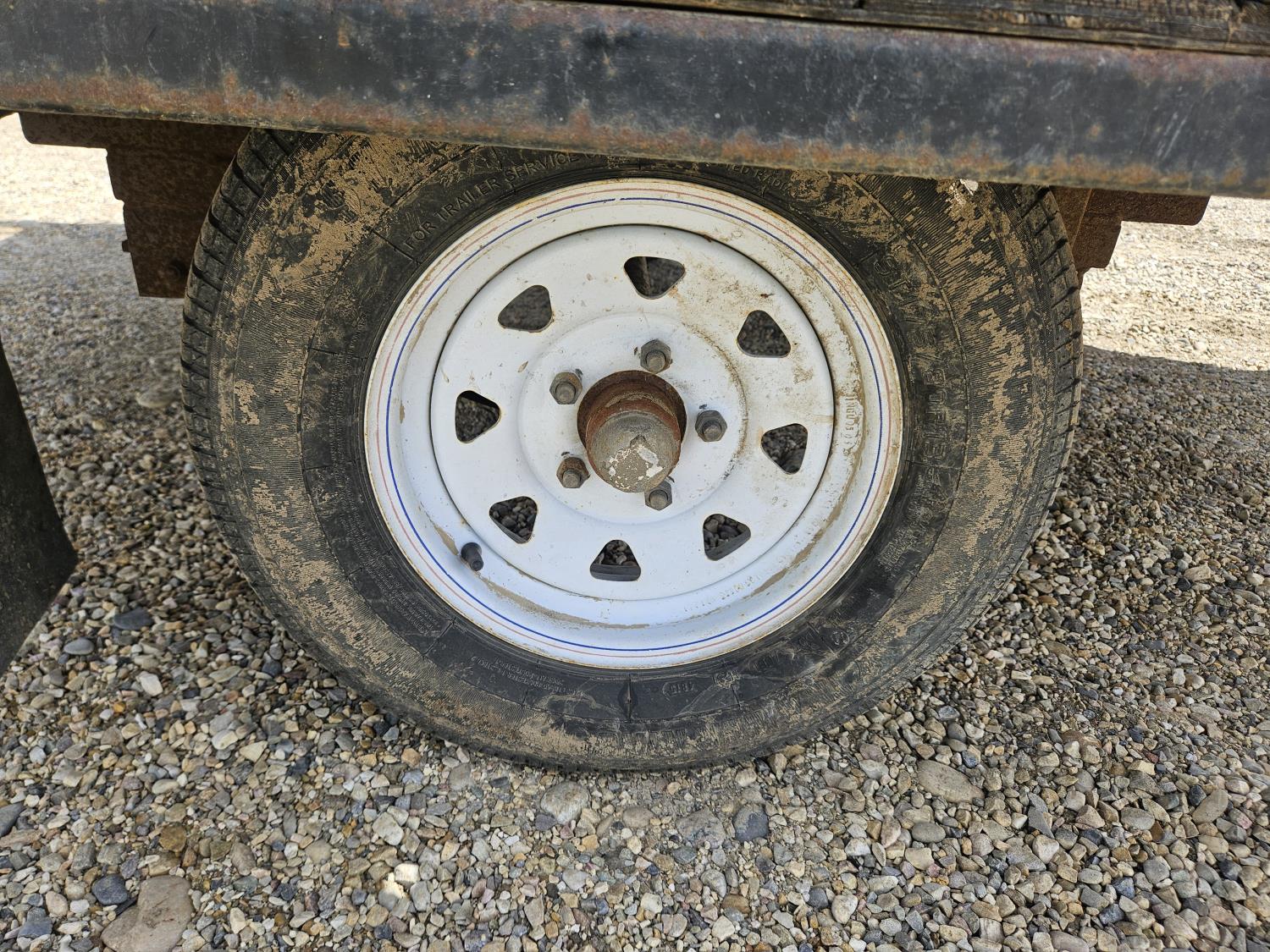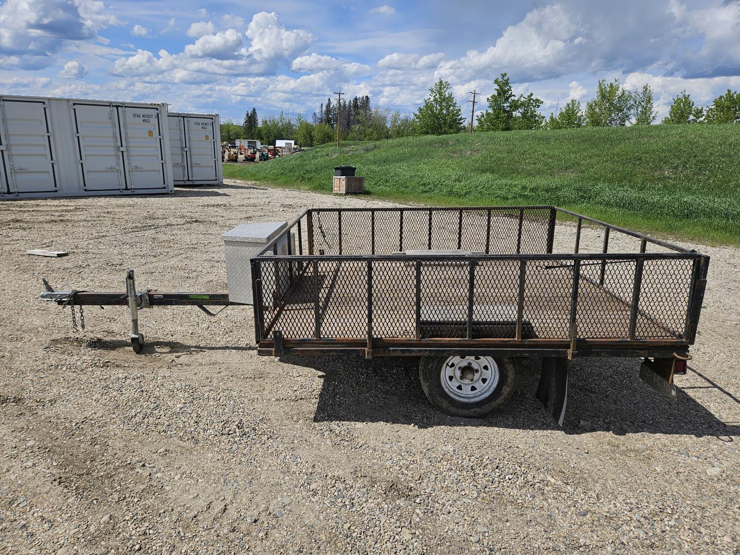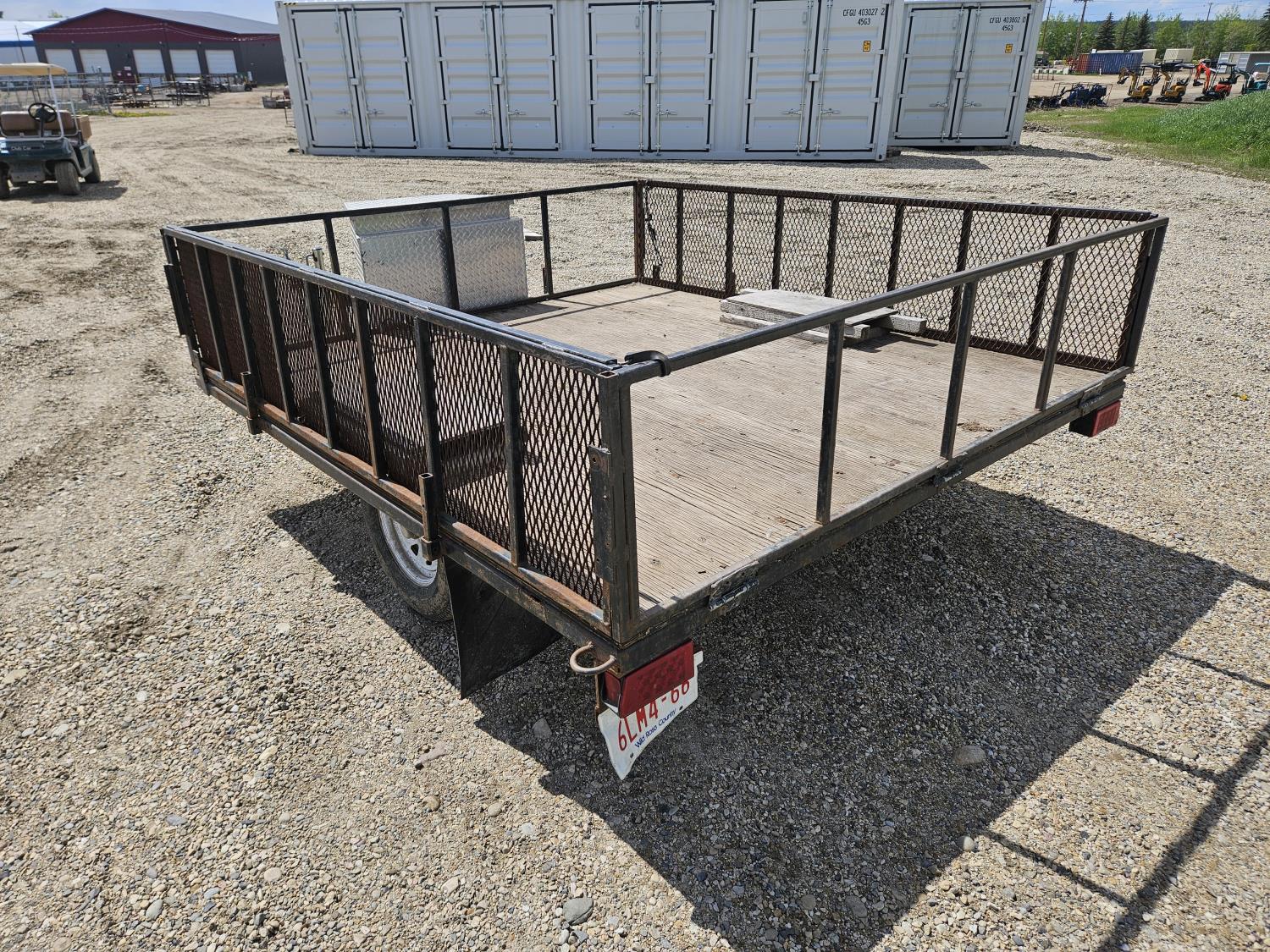 96 inch wide deck, wood deck, ball hitch, tool / storage box, 175/80R13 tires