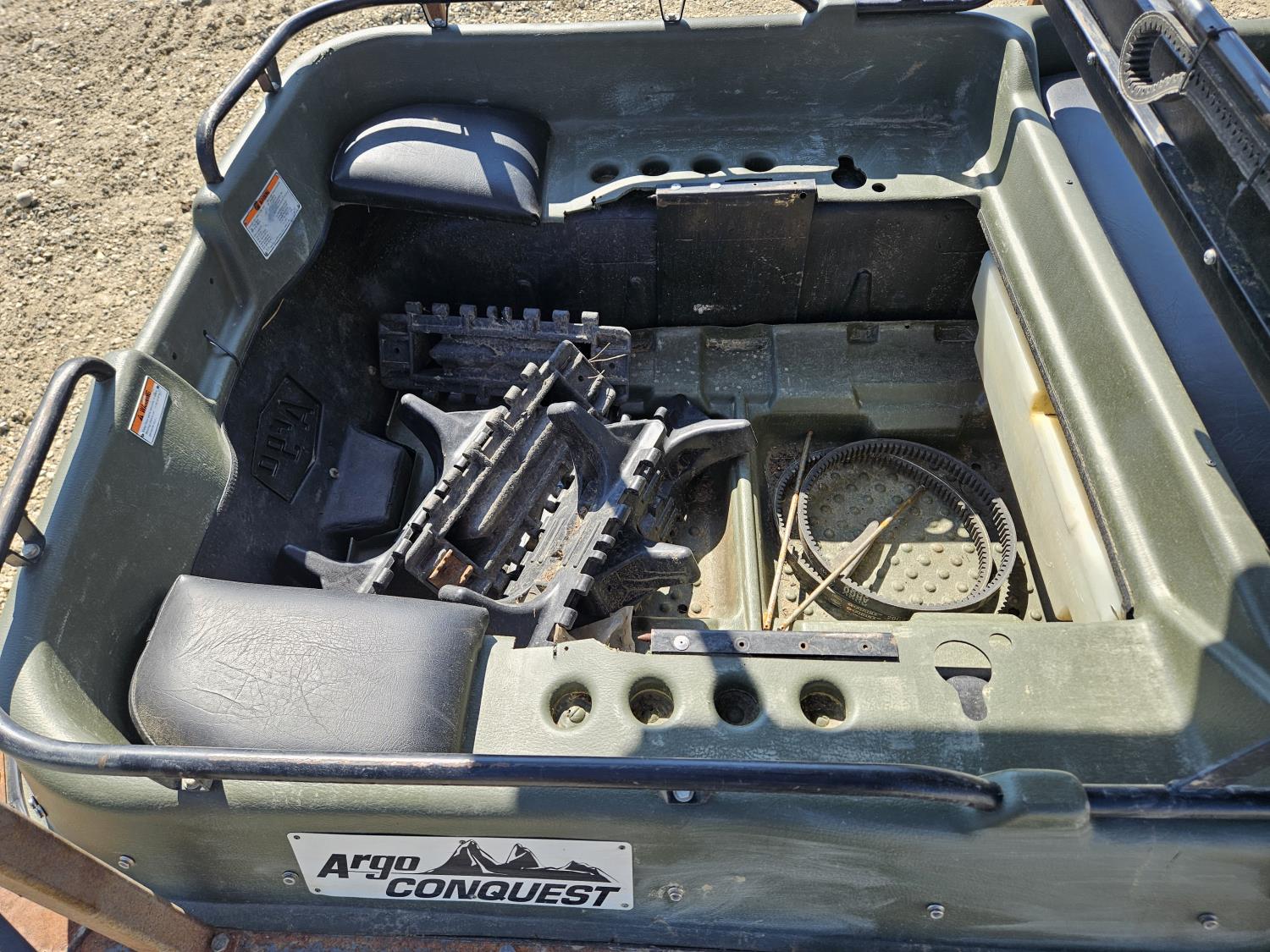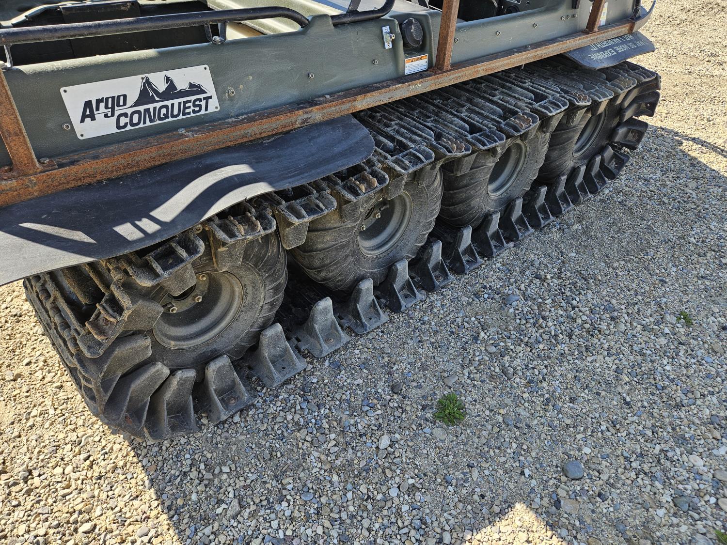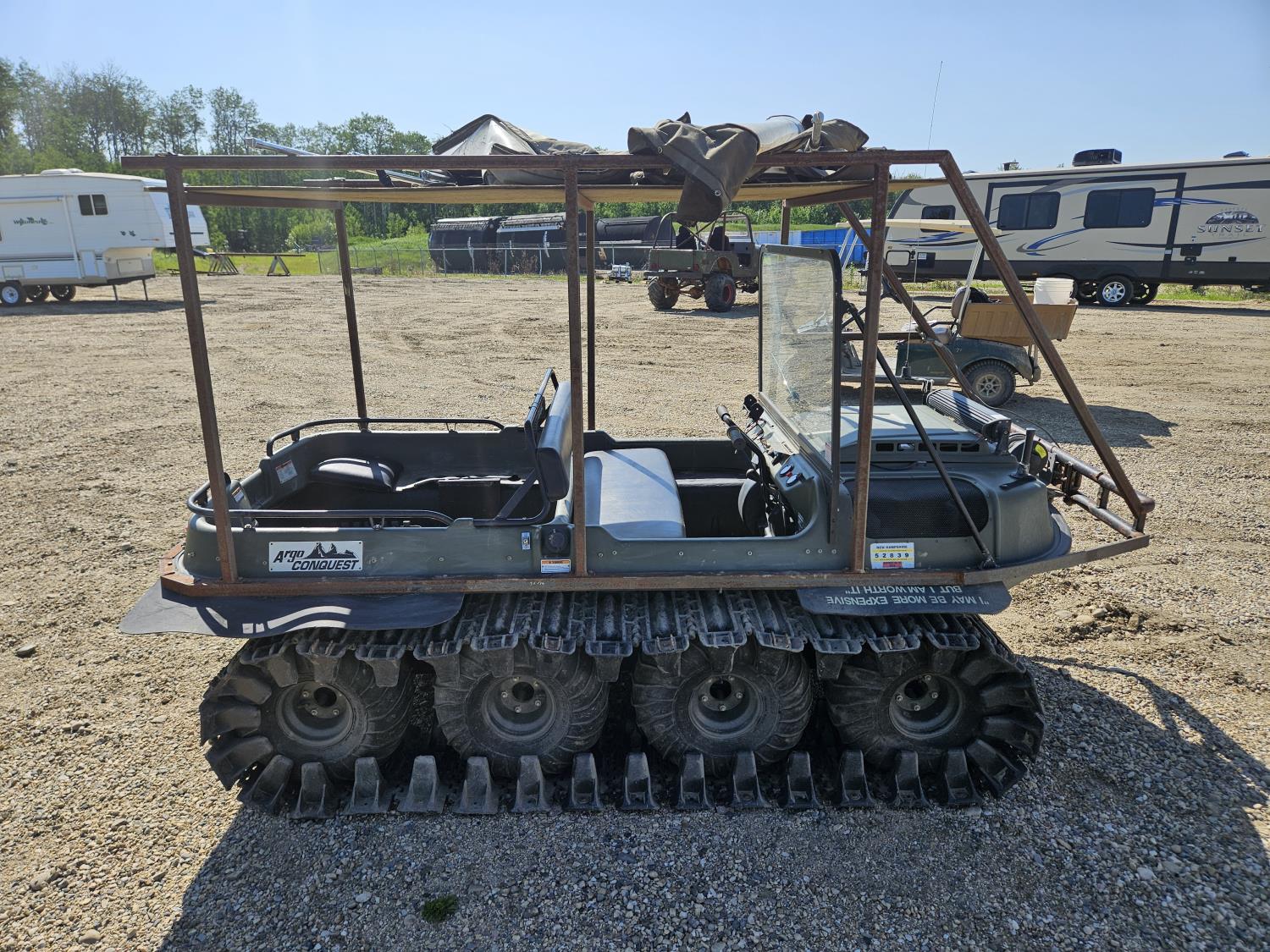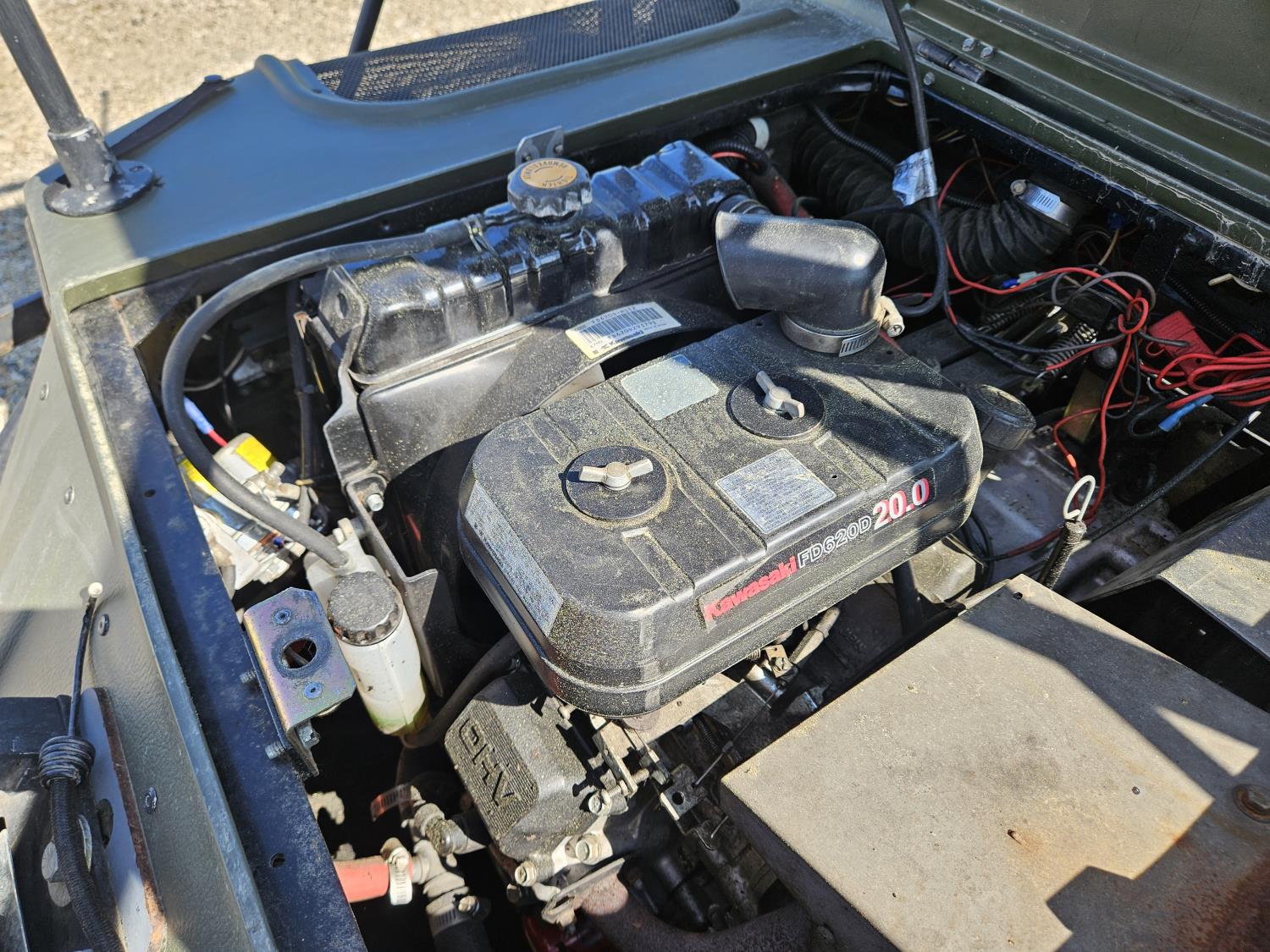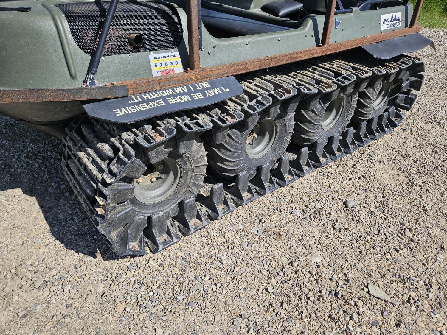 Kawasaki 20 HP gas engine, hydrostatic transmission with hi/lo reverse, front mount winch, twist throttle, enclosure canopy, tracks, spare track parts, receiver hitch, 22x10.00-8 tires