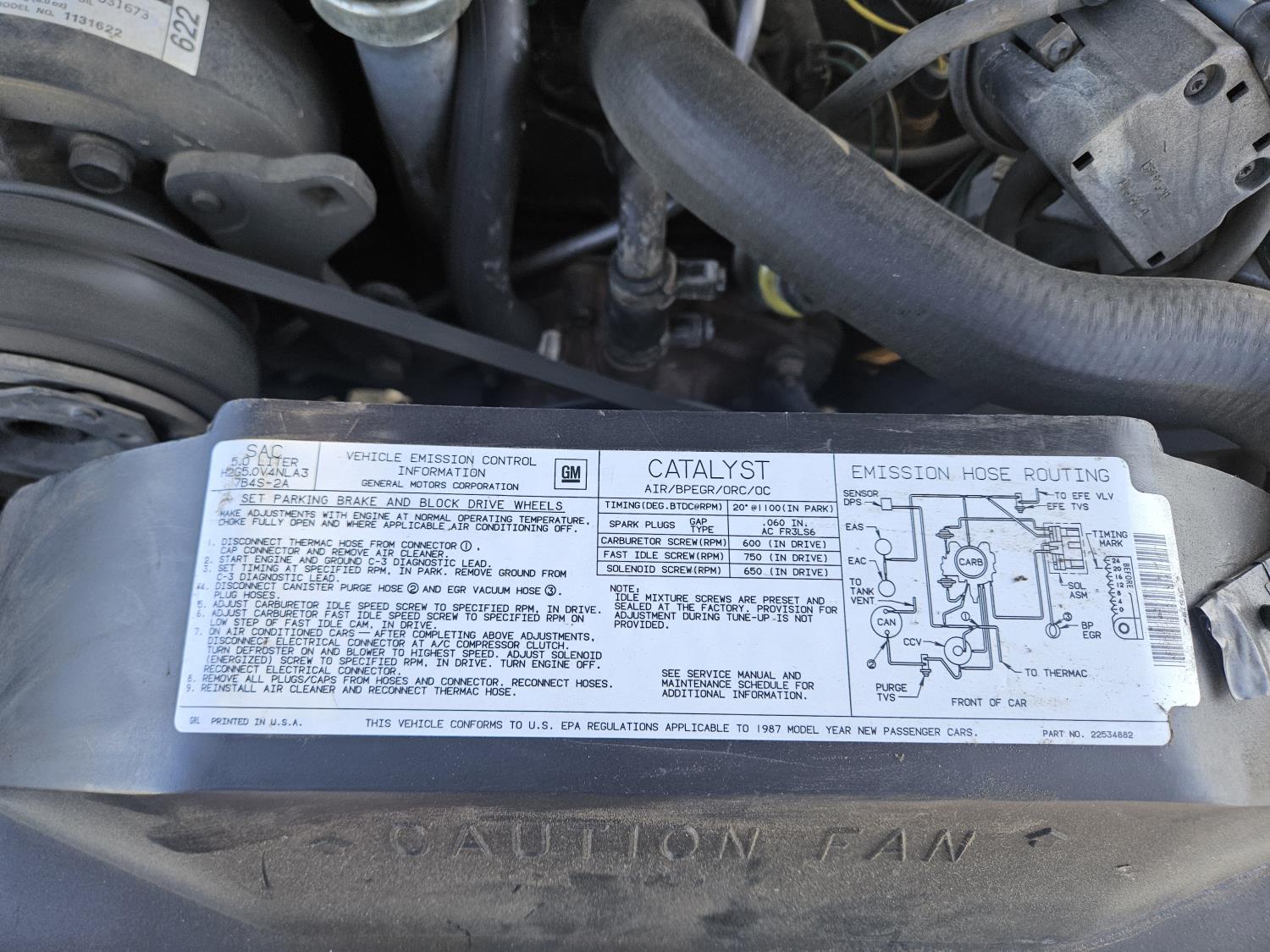 5.0 L, V8, gas, automatic transmission, P/W, P/L, A/C, T top roof, 235/60R15 tires