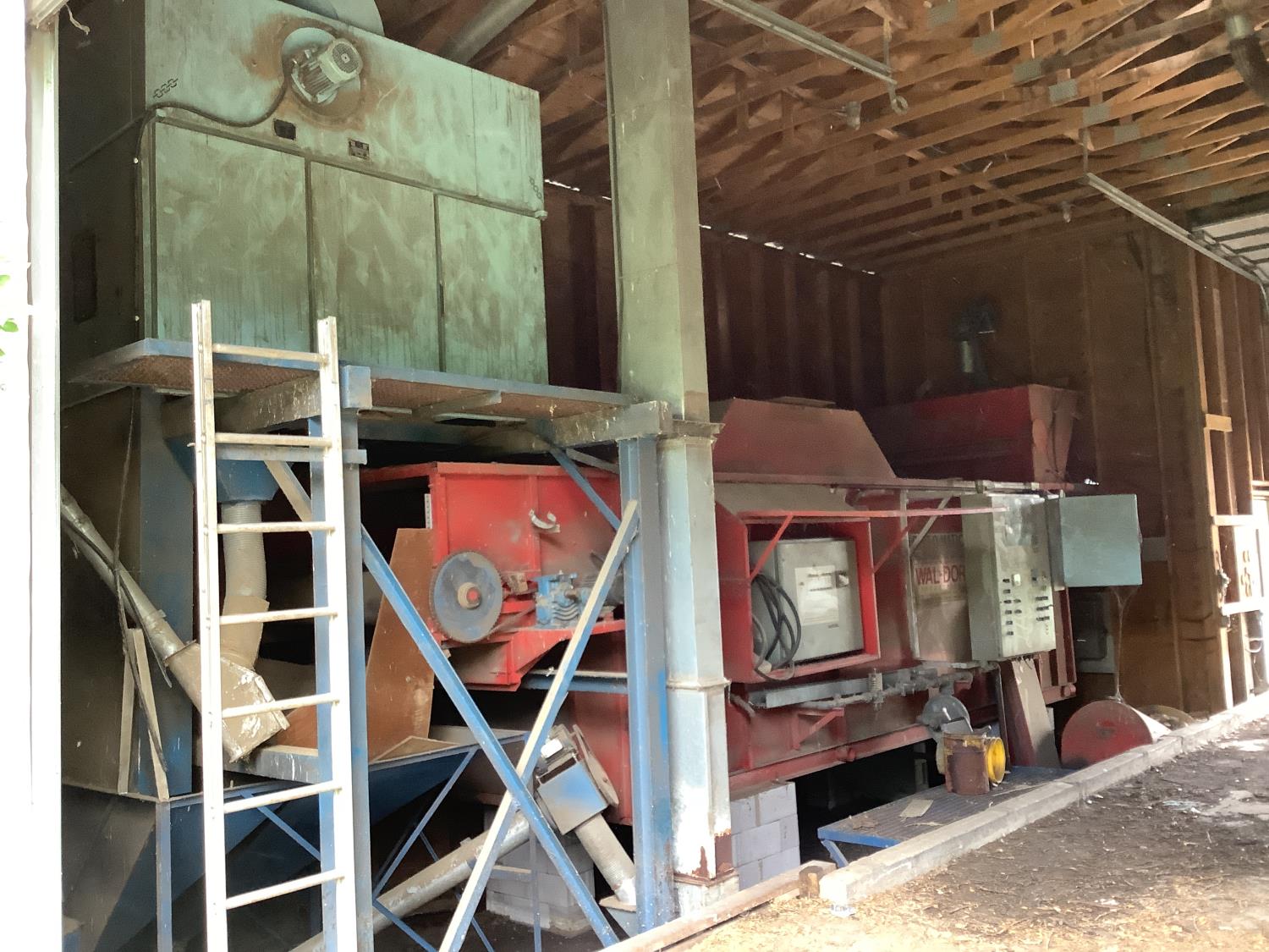 (1) Westeel Rosco bin on concrete floor approximately 5,000 bushel There is a drive through building 2 over head doors inside is a VESA - a - Belt propane grain dryer. These dryers are manufactured in New Hamburg Ontario. There is a 4 cylinder cat Diesel engine that some one stole the generator off the engine a year ago. There are panel box’s, everything in the building goes with the package and if the buyer wish to take the building apart it’s included.