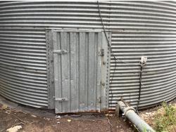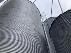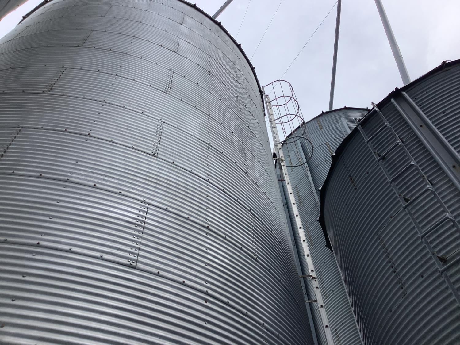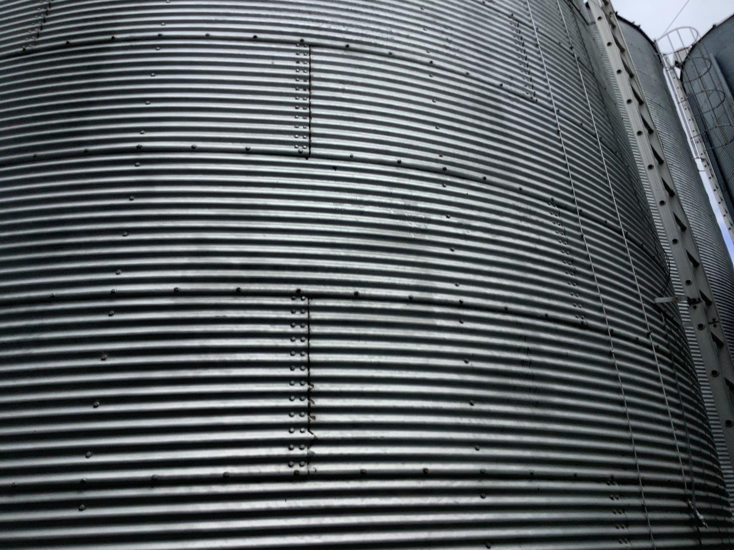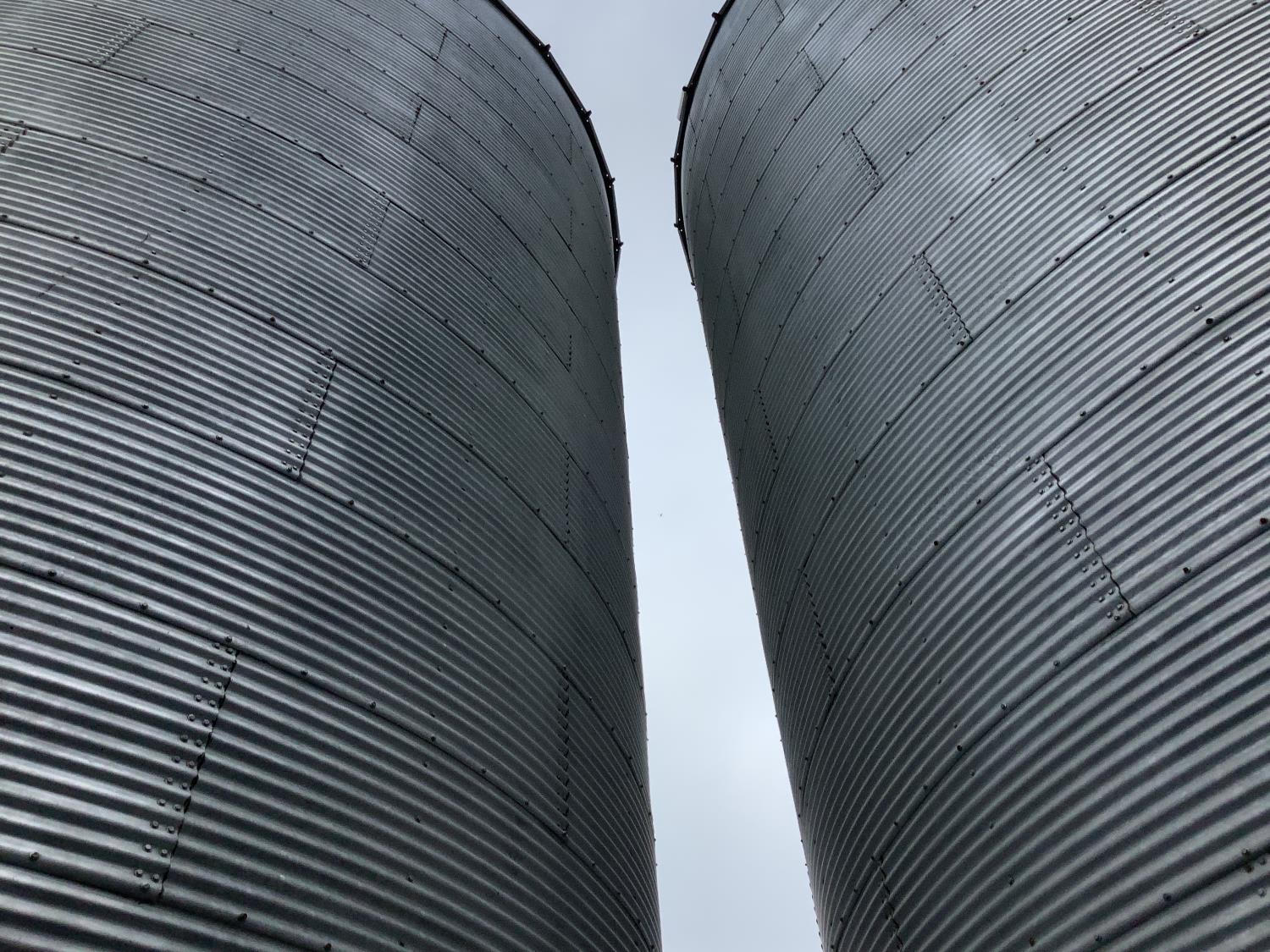 (2) very large steel bins sitting on concrete floor approximately 25,000 bushel each.