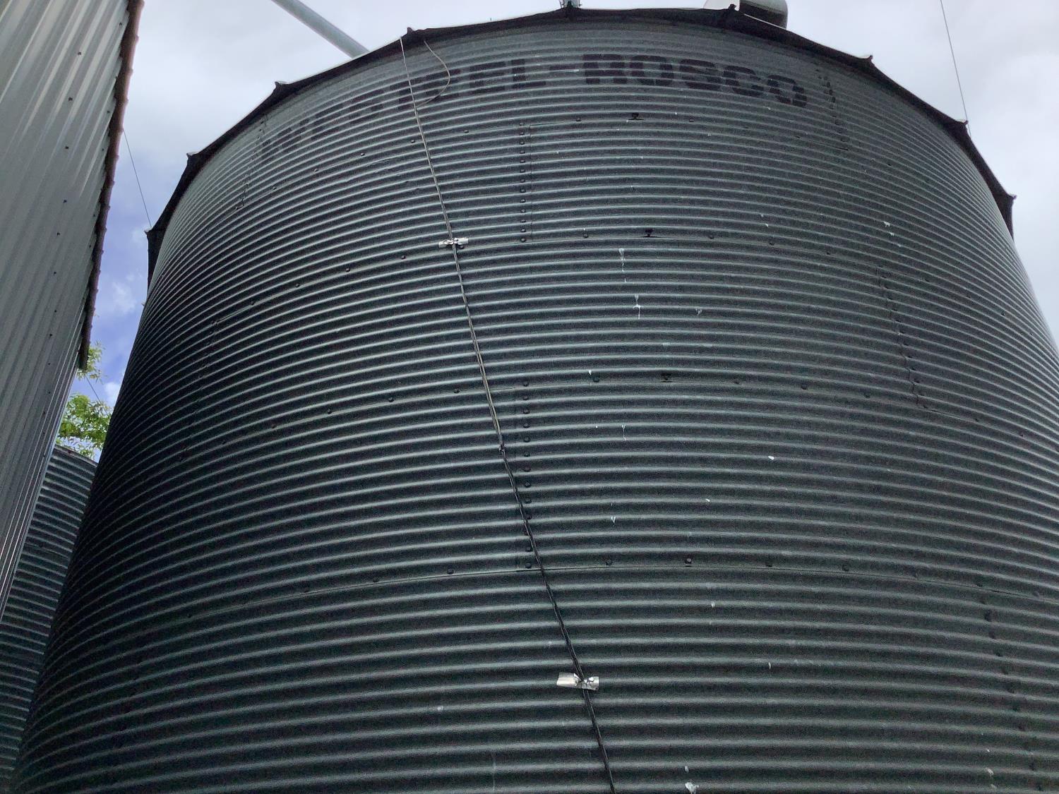 (1) tall hopper bottom bin with hopper bolted down to concrete pad approximately 15,000 bushel (1) Westeel Rosco hopper bottom bin bolted down to concrete pad approximately 5,500 bushel