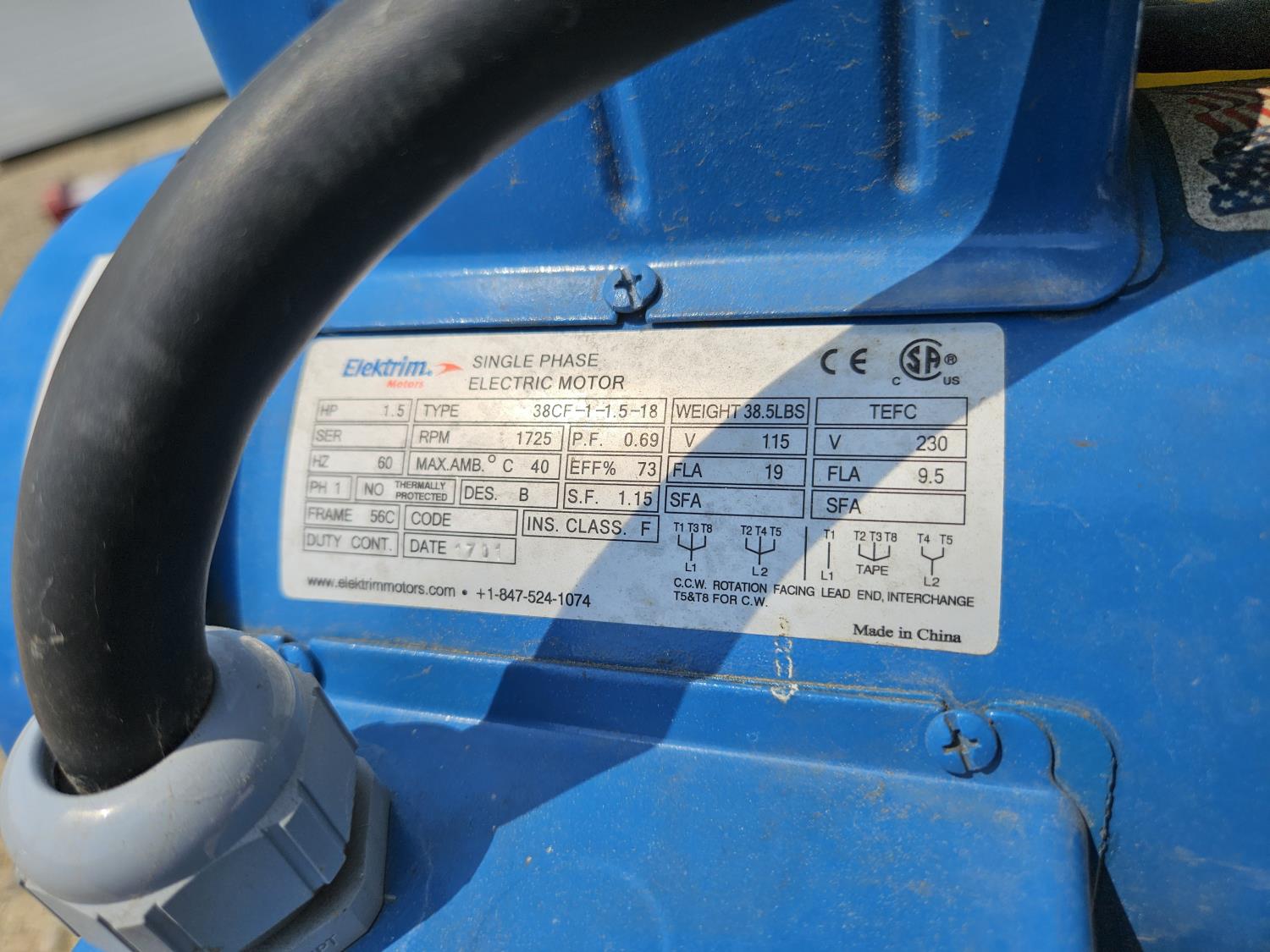 1.5 HP electric motor, single phase, 115/230 V