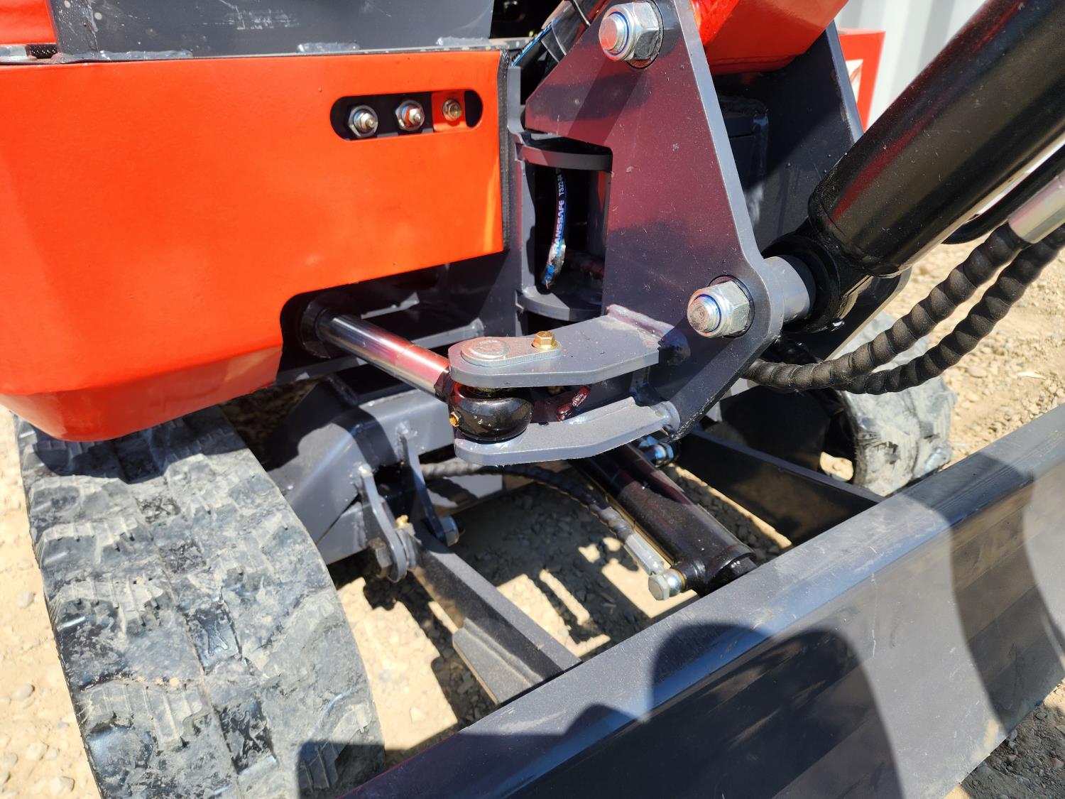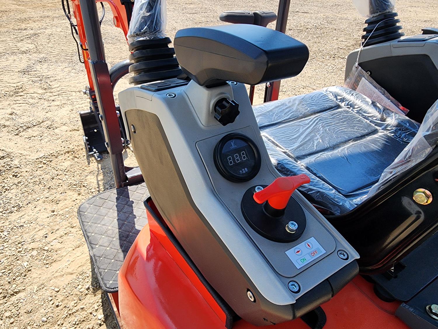 Open station, Kubota diesel engine, canopy, 15 inch dig bucket, hydraulic thumb, 31 inch stick, backfill blade, 7 inch rubber tracks
