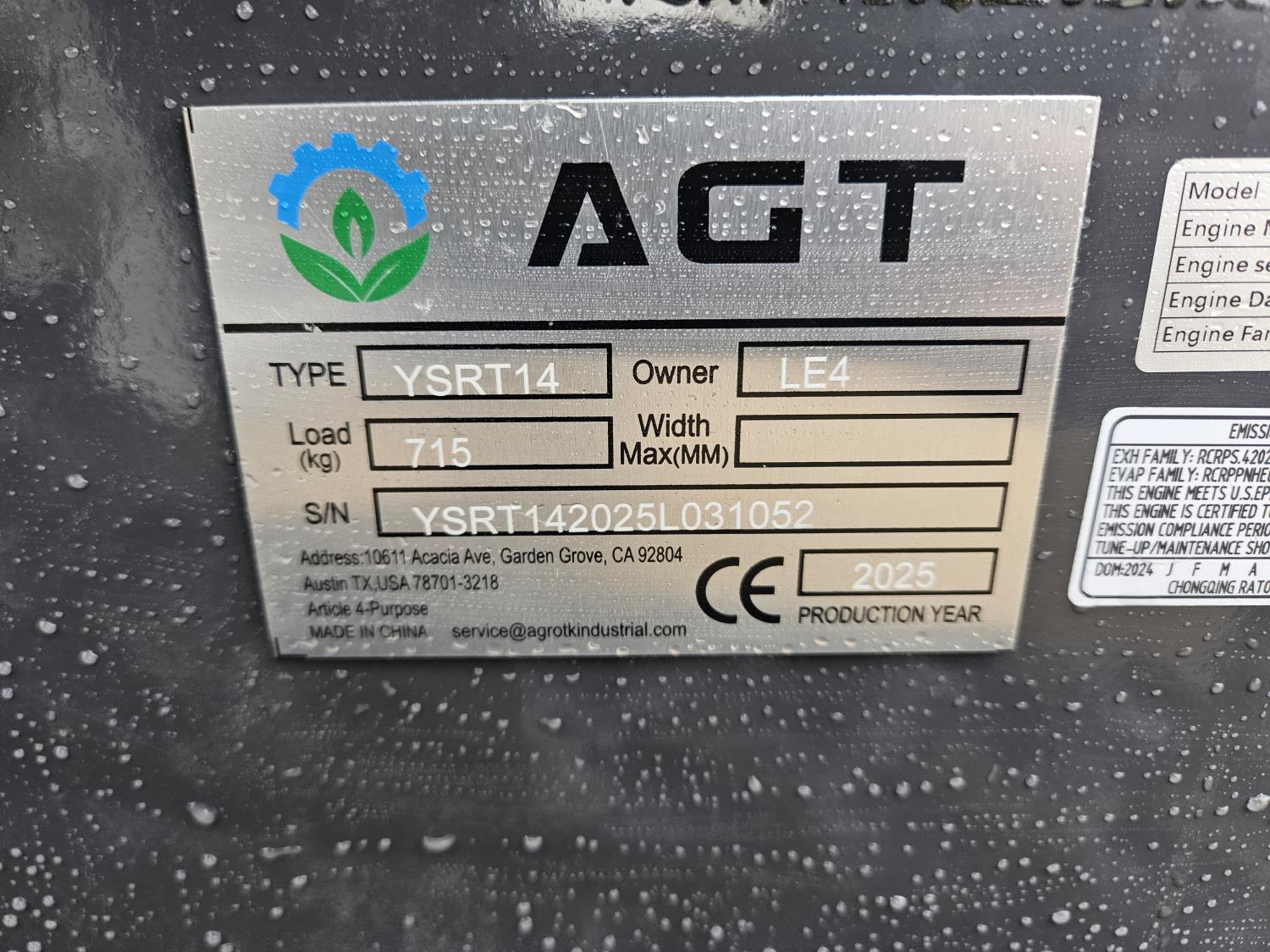 386 2025 AGT YSRT14 Mini Stand On Skid Steer (Unused)