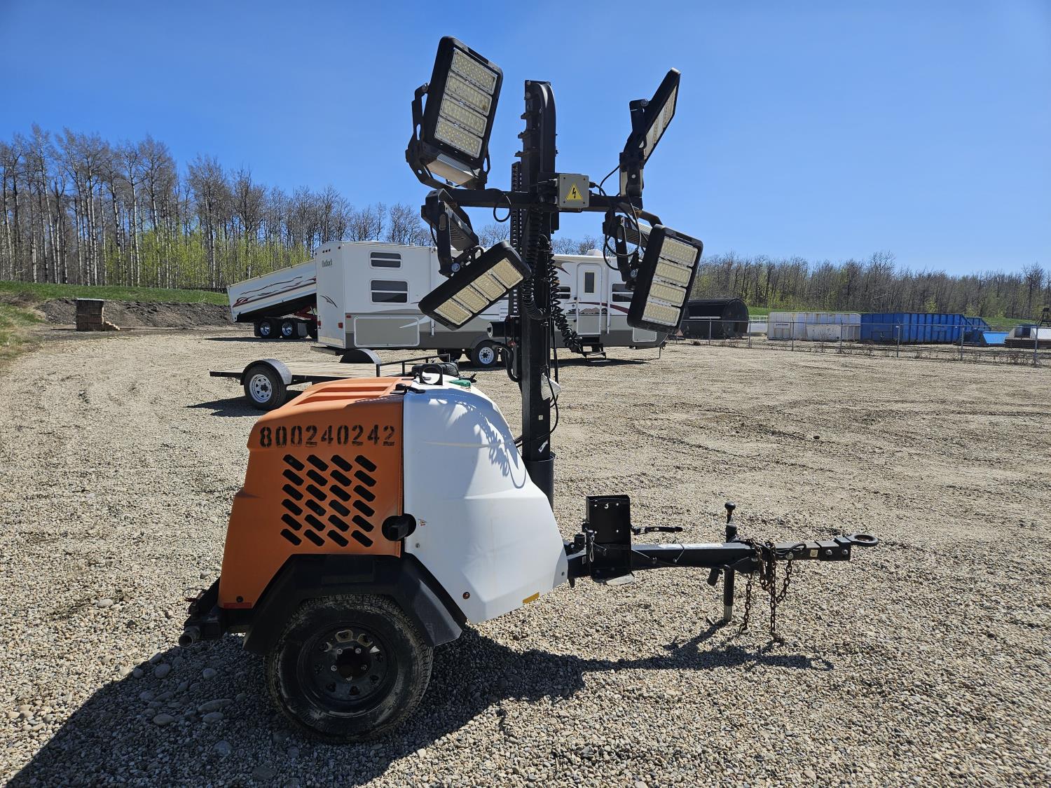 Mitsubishi 1.0L diesel engine, receptacles, telescoping light tower, LED lights, 2200 lb S/A, pintle hitch, 175/80R13 tires