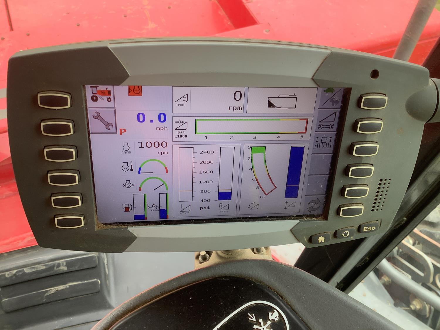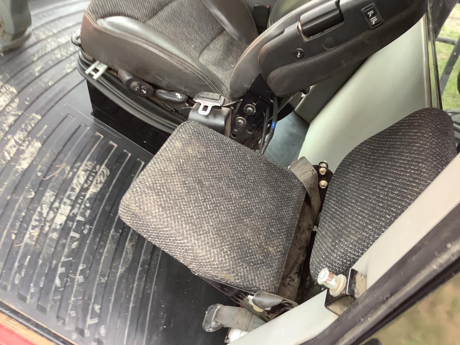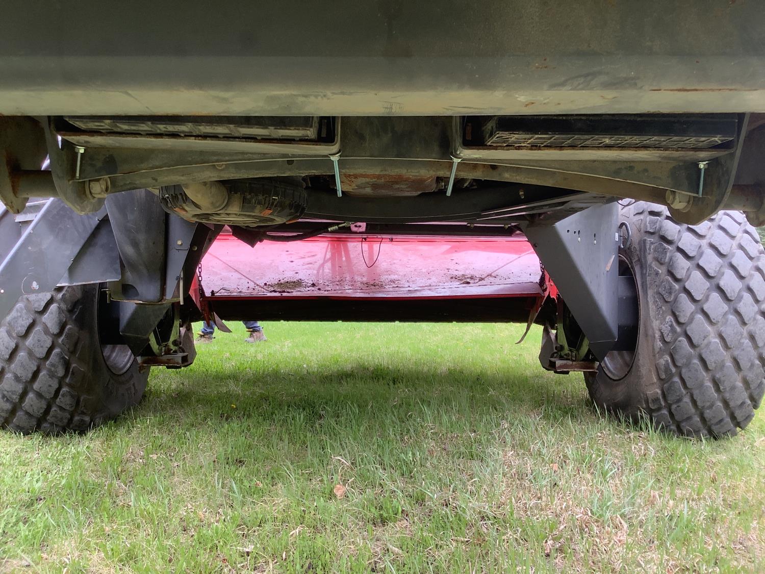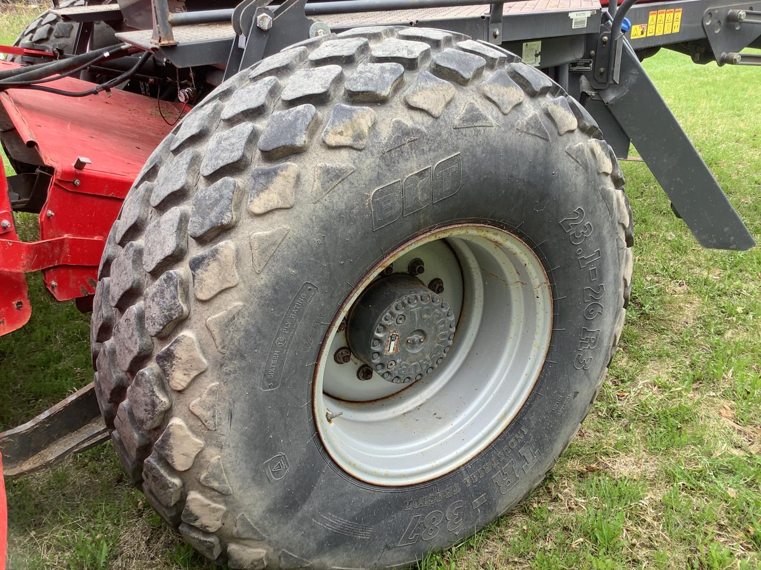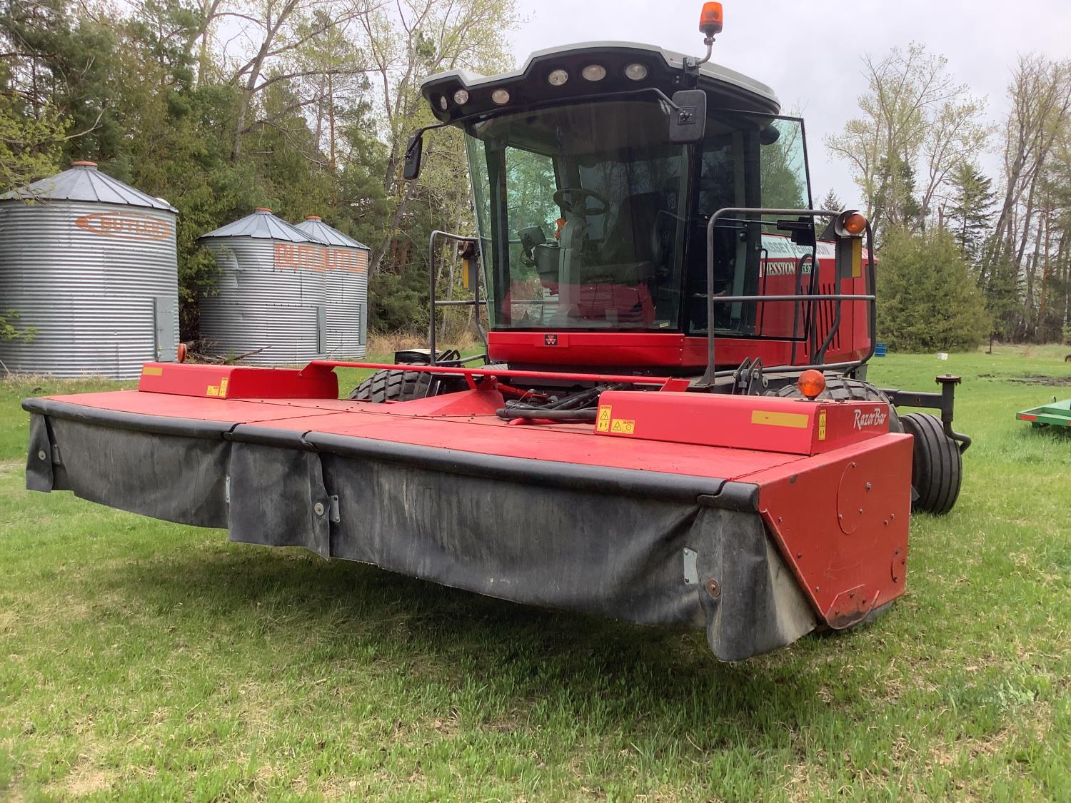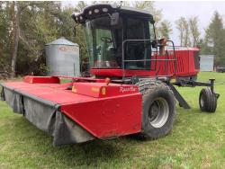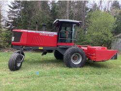 6.6 Liter engine, hydro drive, cab, AC, heat, radio, buddy seat, 23.1X26 drive tires, Agco 1950 Razor Bar 16 ft disc mower conditioner, steel on steel rolls, skid shoes
