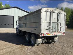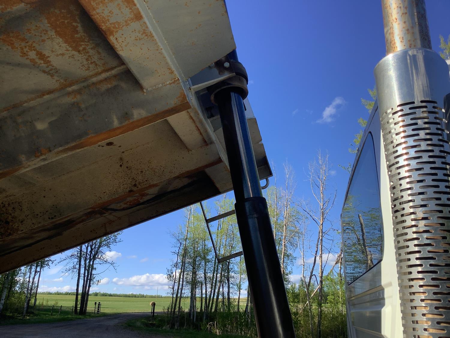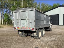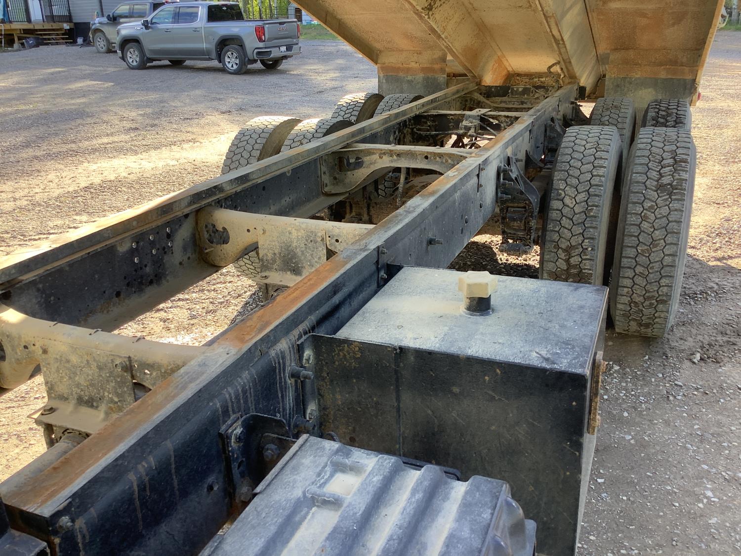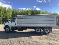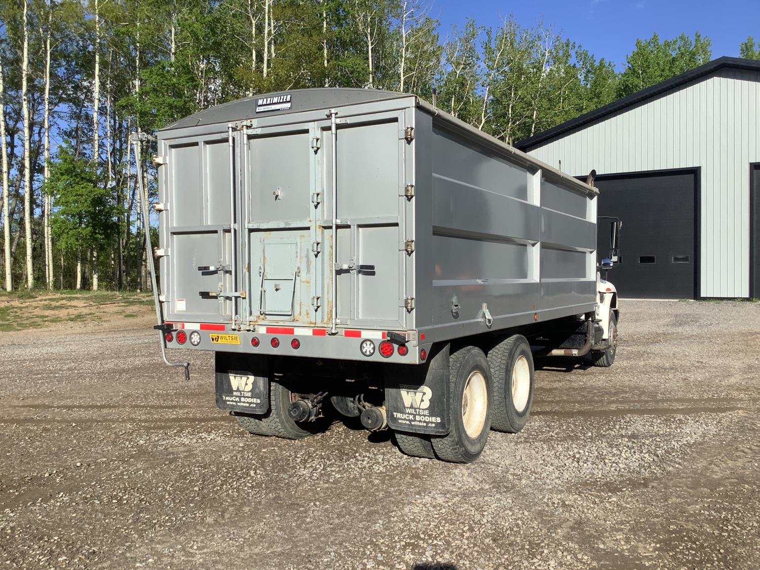 International 9 L 6 310 HP diesel engine, DEF deleted, engine brake, Fuller 10 speed manual transmission, A/C, air ride driver seat, P/W, P/L, 4 year old 20' Wiltsie grain box, 3 piece tailgate, hoist, PTO, roll tarp, single frame rail that has no rust, spring suspension, 14,000 lb front axle, 40,000 lb rear axles, full lockers, 11R22.5 tires