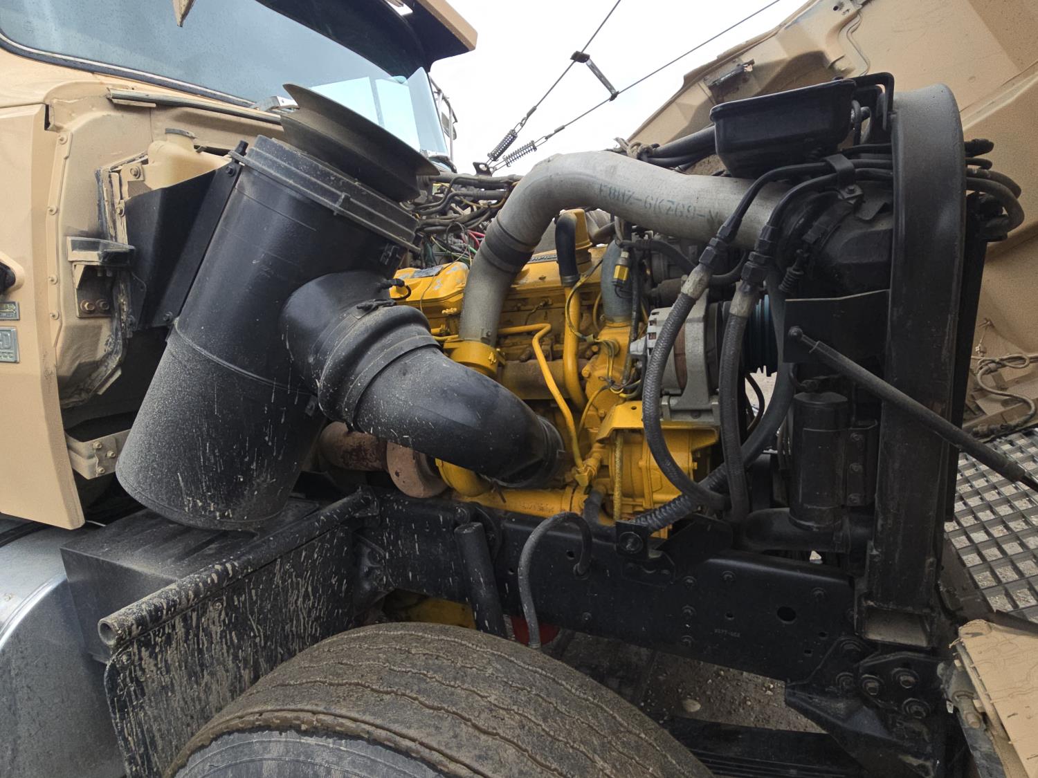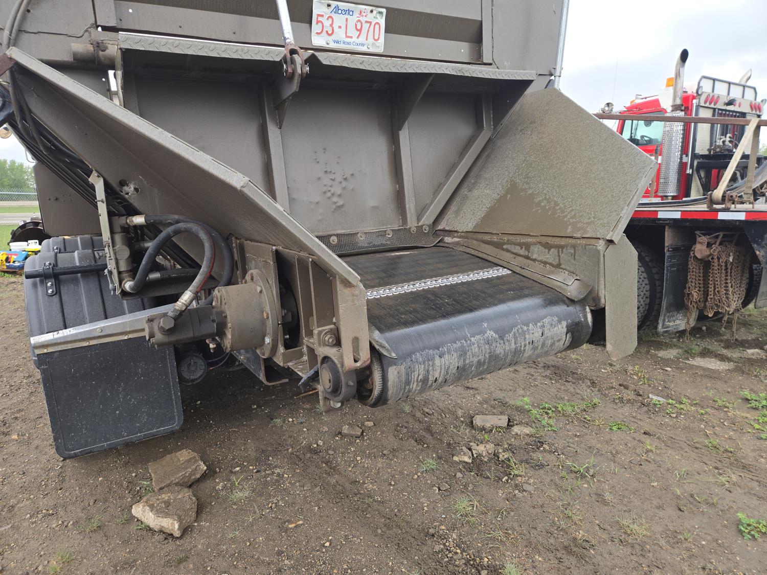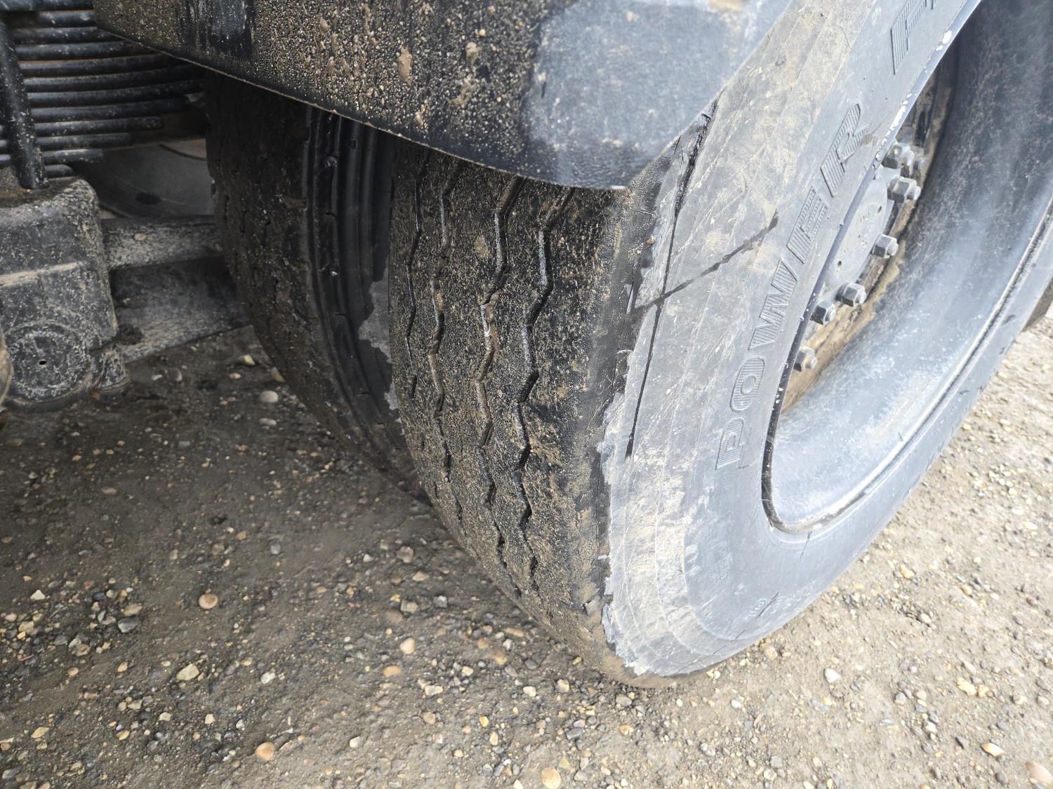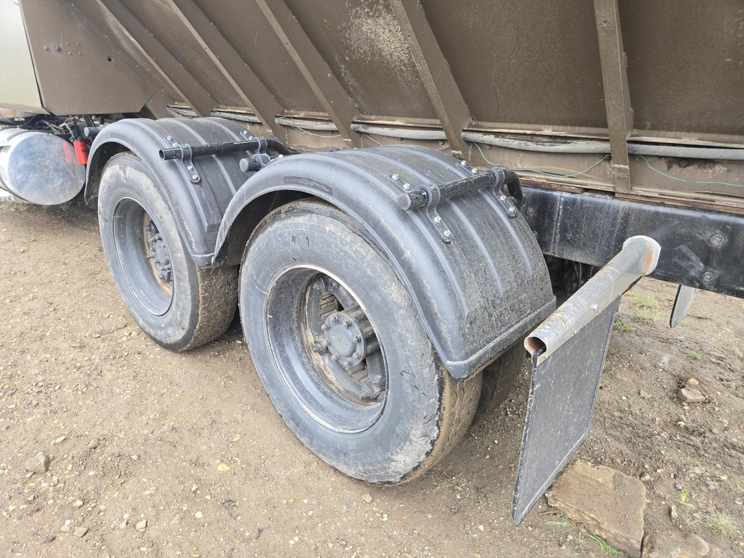 Caterpillar 3046B diesel engine, 8 speed manual transmission, air ride seat, 20 ft potato box, roll tarp, differential lock, 12,000 lb front axle, 44,000 rears, 11R24.5 tires