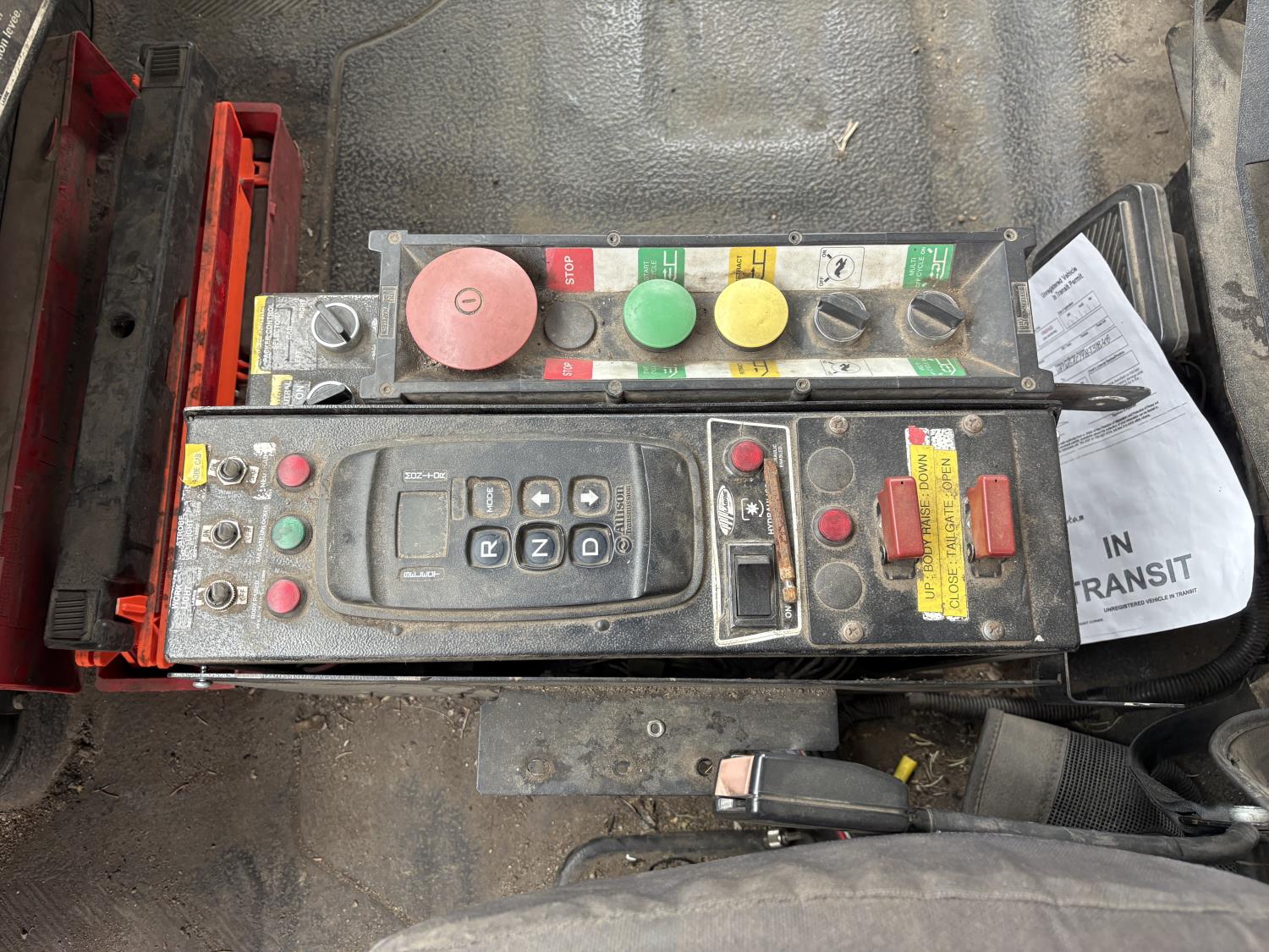 International Maxxforce 9, 9.3L, Allison automatic transmission, side load refuse compactor, aluminum wheels, 16,000 lb front axle, 40,000 rears, 385/65R22.5 front tires, 11R22.5 rear tires
