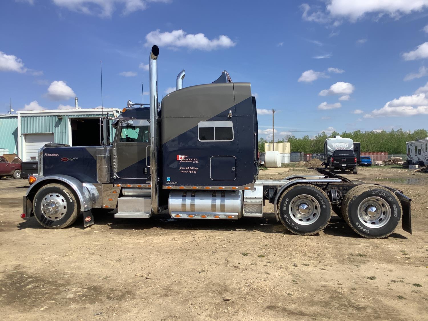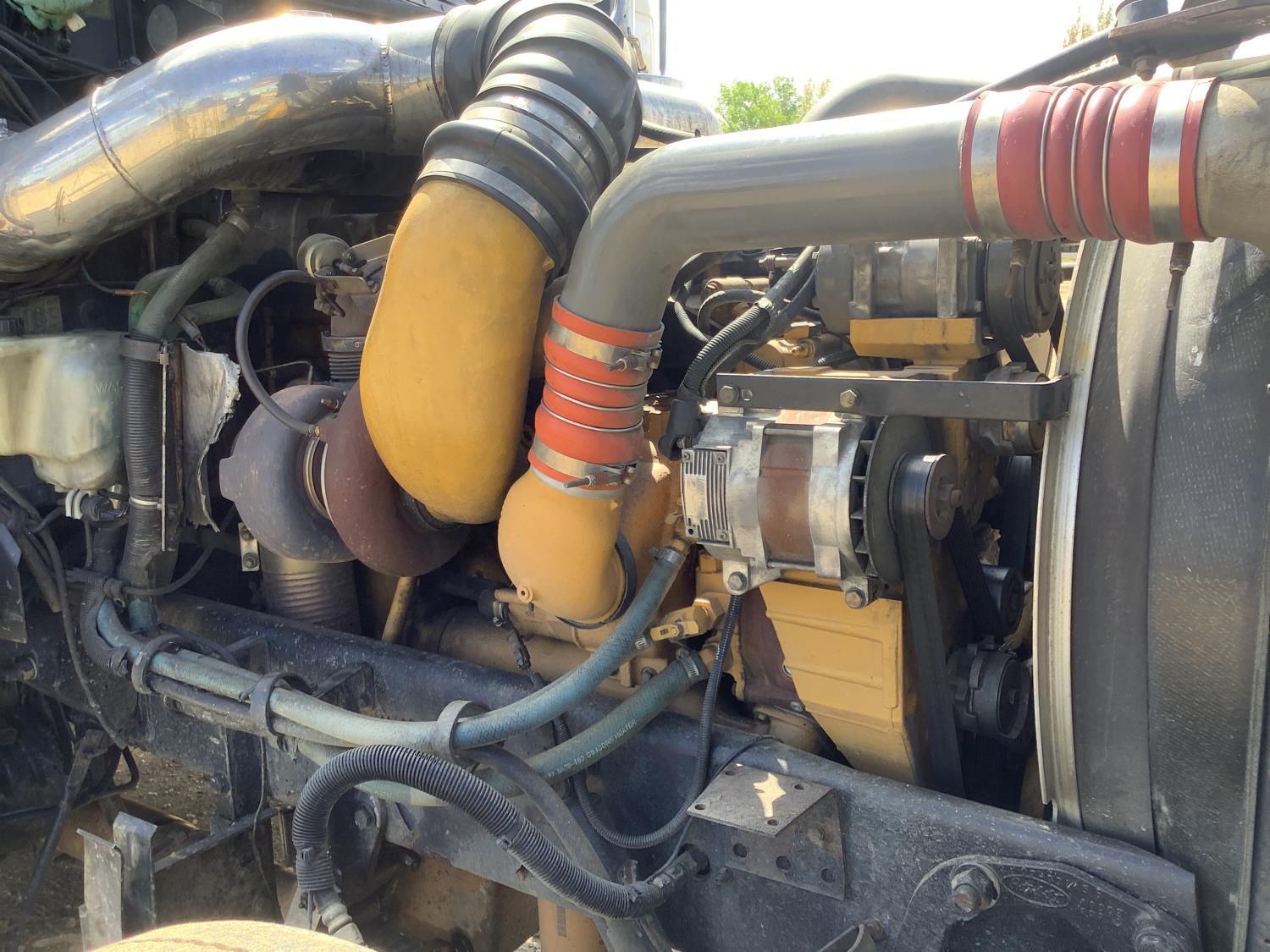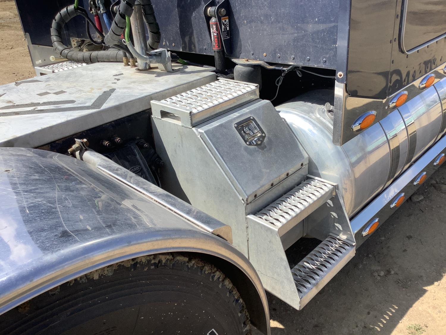 Caterpillar C15 6 cylinder 500 HP engine, Cab Pro engine heater, engine brake, 18 speed manual transmission, A/C, air ride seats, air ride cab, (2) aluminum step tool box's, air slide 5th wheel, air ride suspension, 12,000 lb front axle, 46,000 lb rear axles, full lockers, all aluminum wheels, 11R24.5 tires
