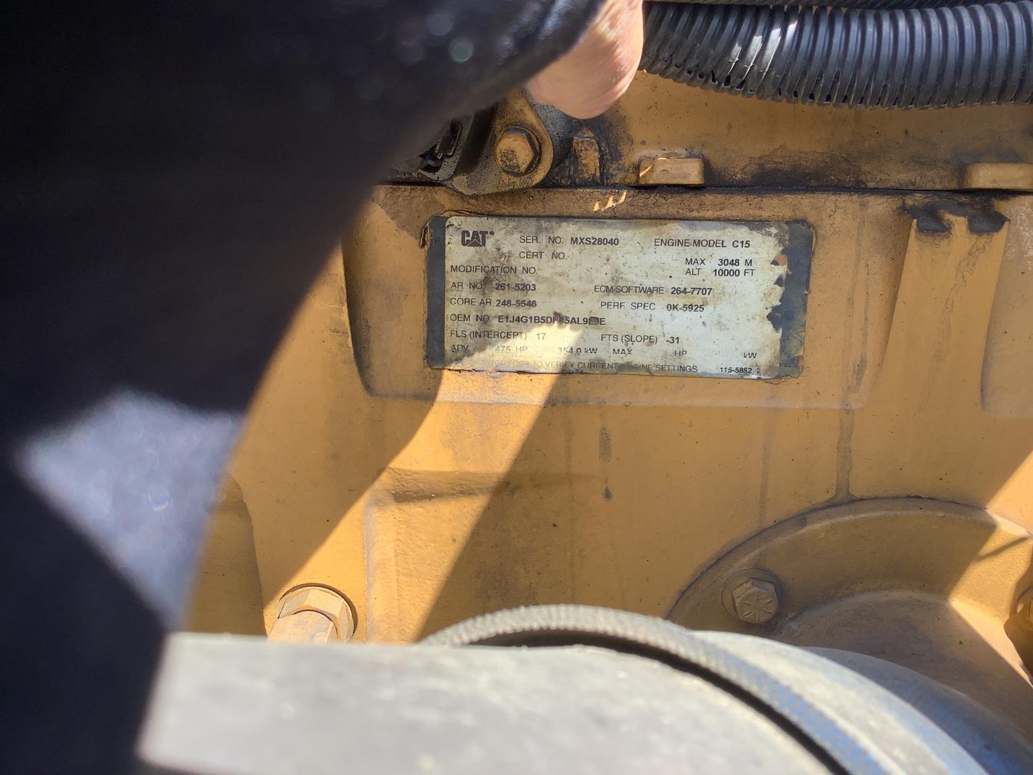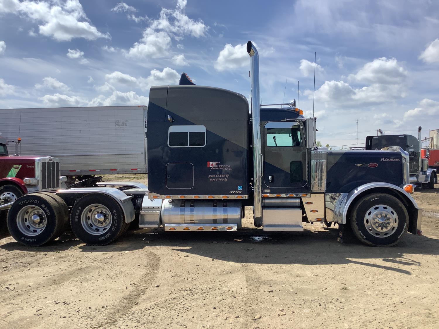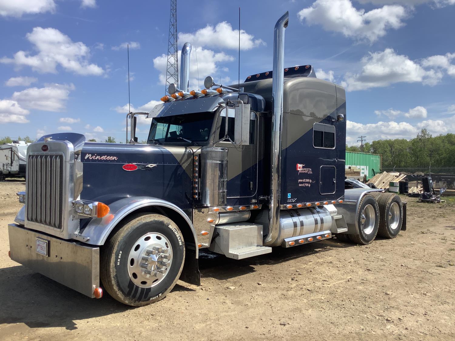 Caterpillar C15 6 cylinder 500 HP engine, Cab Pro engine heater, engine brake, 18 speed manual transmission, A/C, air ride seats, air ride cab, (2) aluminum step tool box's, air slide 5th wheel, air ride suspension, 12,000 lb front axle, 46,000 lb rear axles, full lockers, all aluminum wheels, 11R24.5 tires