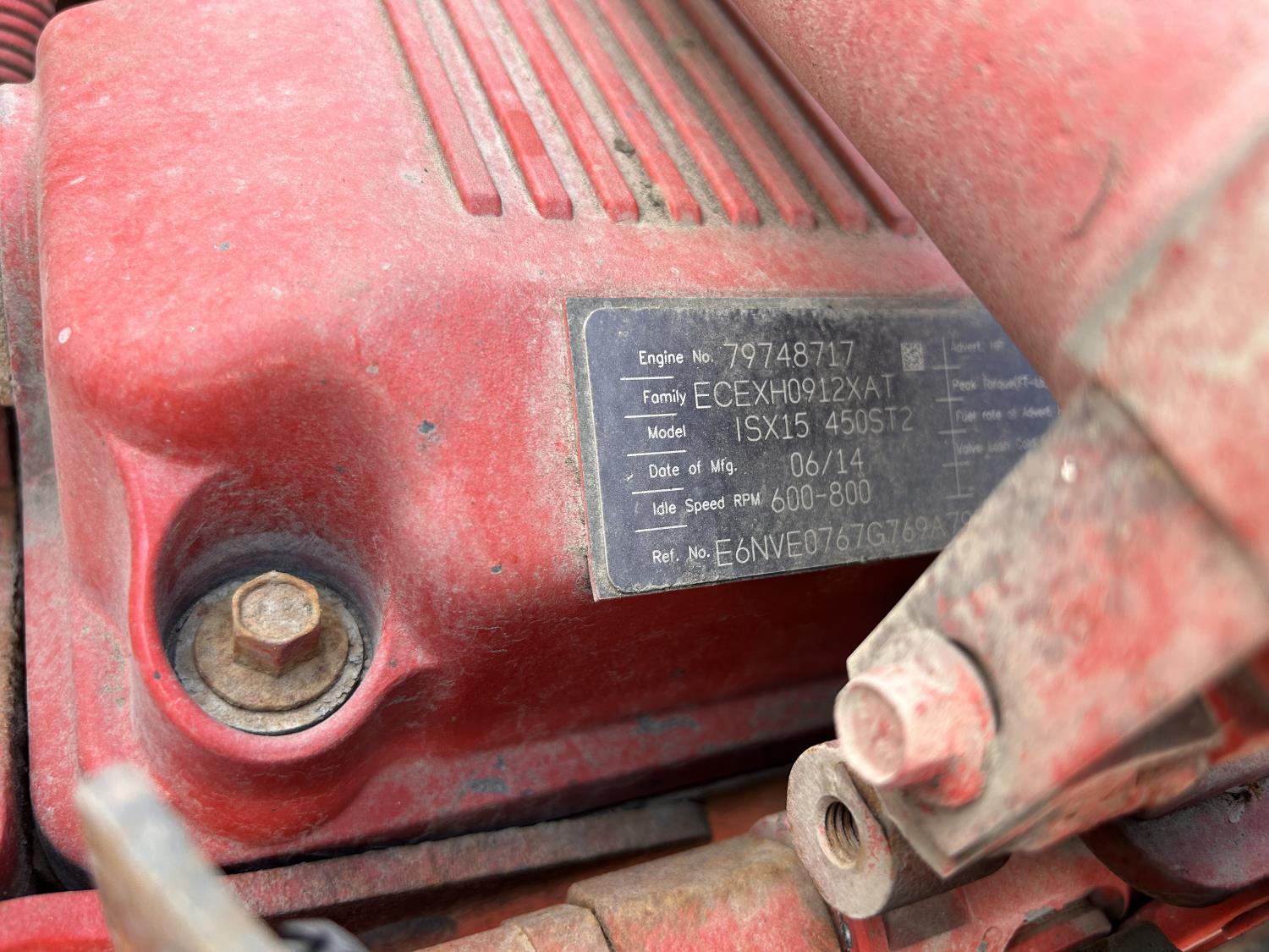 Cummins ISX15 15 L 6 cylinder 450 HP engine, DEF required, automatic transmission, integral sleeper, A/C, cruise control, air ride driver seat, CB radio, stereo, air ride cab, air ride suspension, 13,000 lb front axle, 40,000 lb rear axles, diff lock, all aluminum wheels, 11R22.5 tires